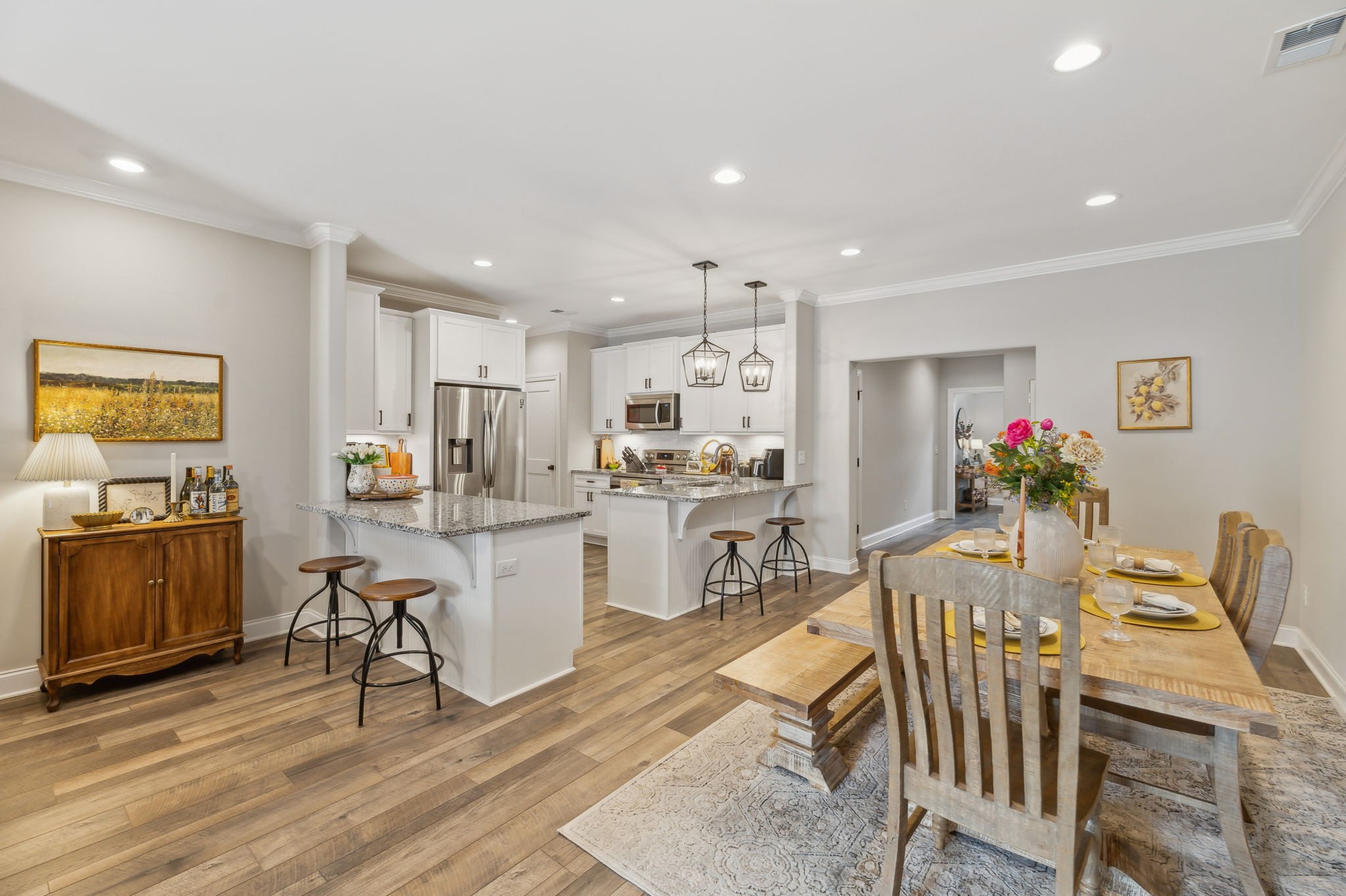 Welcome to this like-new Roosevelt, offering modern living designed for comfort, style, and flexibility! A perfect location, zoned for all Siegel schools, and close to everything you need. Step into a show-stopping 2-story foyer with a dramatic overlook and experience an open-concept floorplan that flows effortlessly for both everyday life and entertaining. The chef-inspired kitchen dazzles with granite countertops, stainless steel appliances, sleek cabinetry, and recessed lighting - all designed for those who love to cook and connect. The first-floor primary suite is spacious and spa-like, with double vanities, a large tub for relaxing soaks, separate shower, and a large walk-in closet. The main floor also includes a cozy fireplace for winter nights, and a convenient laundry room just steps from the heart of the home. Upstairs, you’ll find two spacious bedrooms with walk-in closets, a dedicated office for focused work-from-home days (currently being used as a 4th bedroom), and even a generous walk-in attic for all your storage needs. Outside, unwind on your private patio - ideal for summer BBQs or sunset drinks. Additional perks include a 2-car attached front-entry garage and low-maintenance living thanks to an HOA that covers insurance, exterior maintenance, trash, landscaping, and irrigation! With its modern lighting, high-end finishes, and versatile layout, this move-in-ready home checks all the boxes. Don’t miss your chance to live large - schedule your private showing and fall in love!