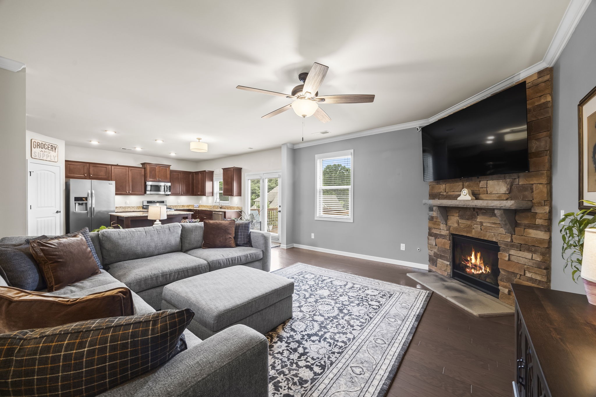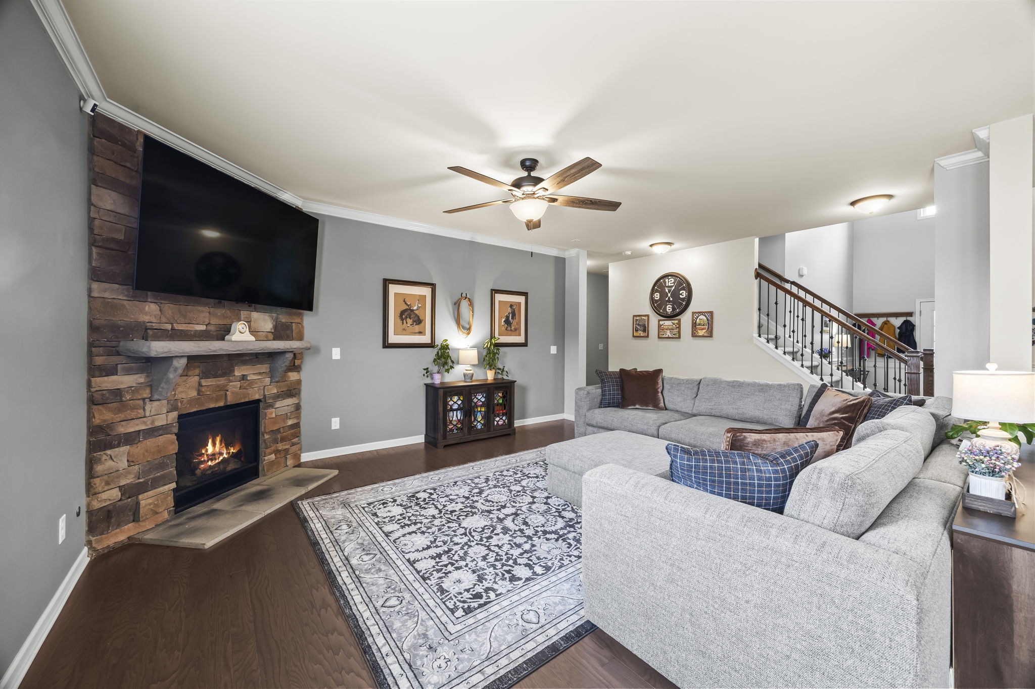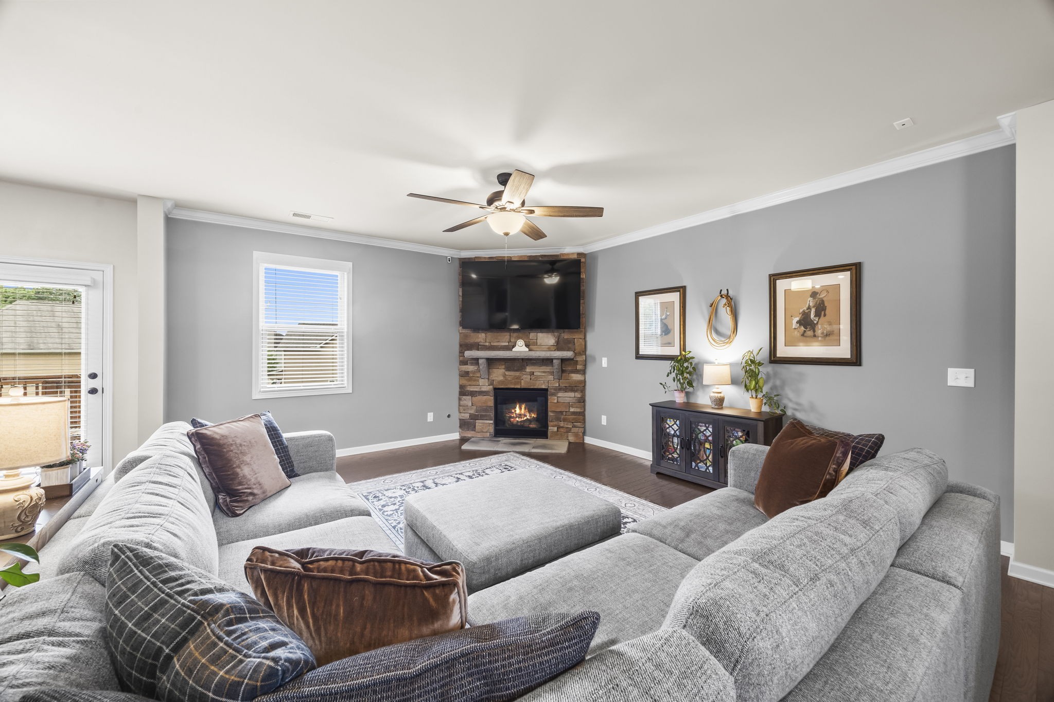 Looking for Space and a Basement home in a great Location- This is it! 5 Bedrooms, 4 Baths, Stone and hardyboard exterior, front porch, back deck, patio and spacious lot on a quiet street! Open layout- the minute you walk in the door you will feel it! Main Floor- formal dining, generous kitchen with huge island and gas range. Open living space w/ fireplace. Secondary bedroom on main level w/ new carpet and full bath access. Crown molding, wood floors, details, dedicated laundry w/ cabinets. Upper level- sizable rec room, two spacious BRs, hall bath and amazing Primary suite. Finished daylight (windows) and walkout Basement has a large bedroom, 3 Flex rooms, storage closet, living area, and bathroom. Walkout to a patio and backyard! Great in-law living, guest or teen quarters! Newer HVAC 2022 and 2020 Roof. Neighborhood Pool, Park, and sidewalks! Easy Access to Saturn Pkwy, shops, dining and more retail to come!