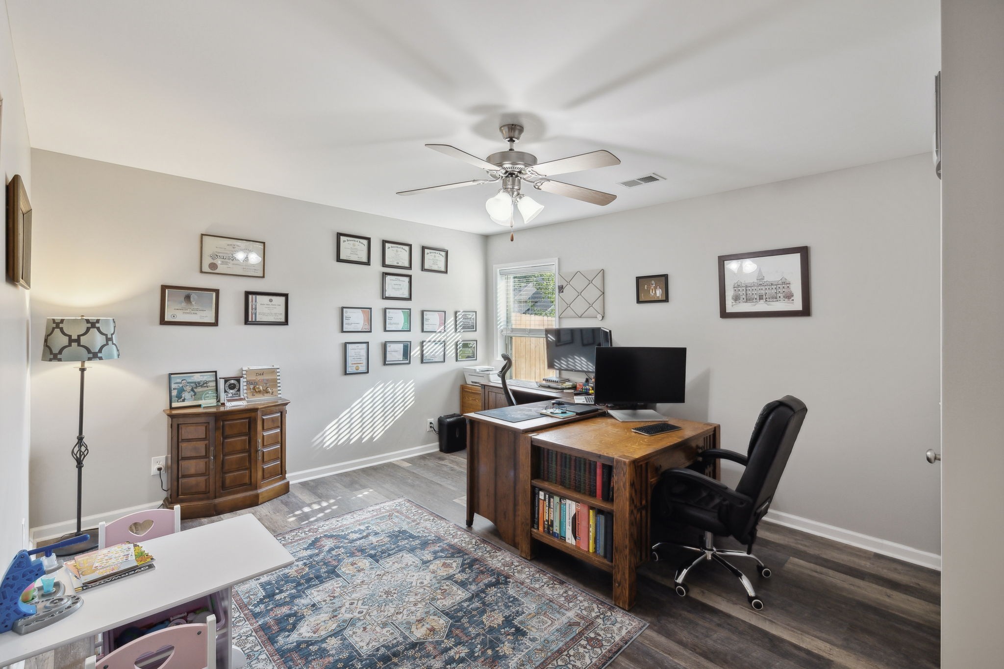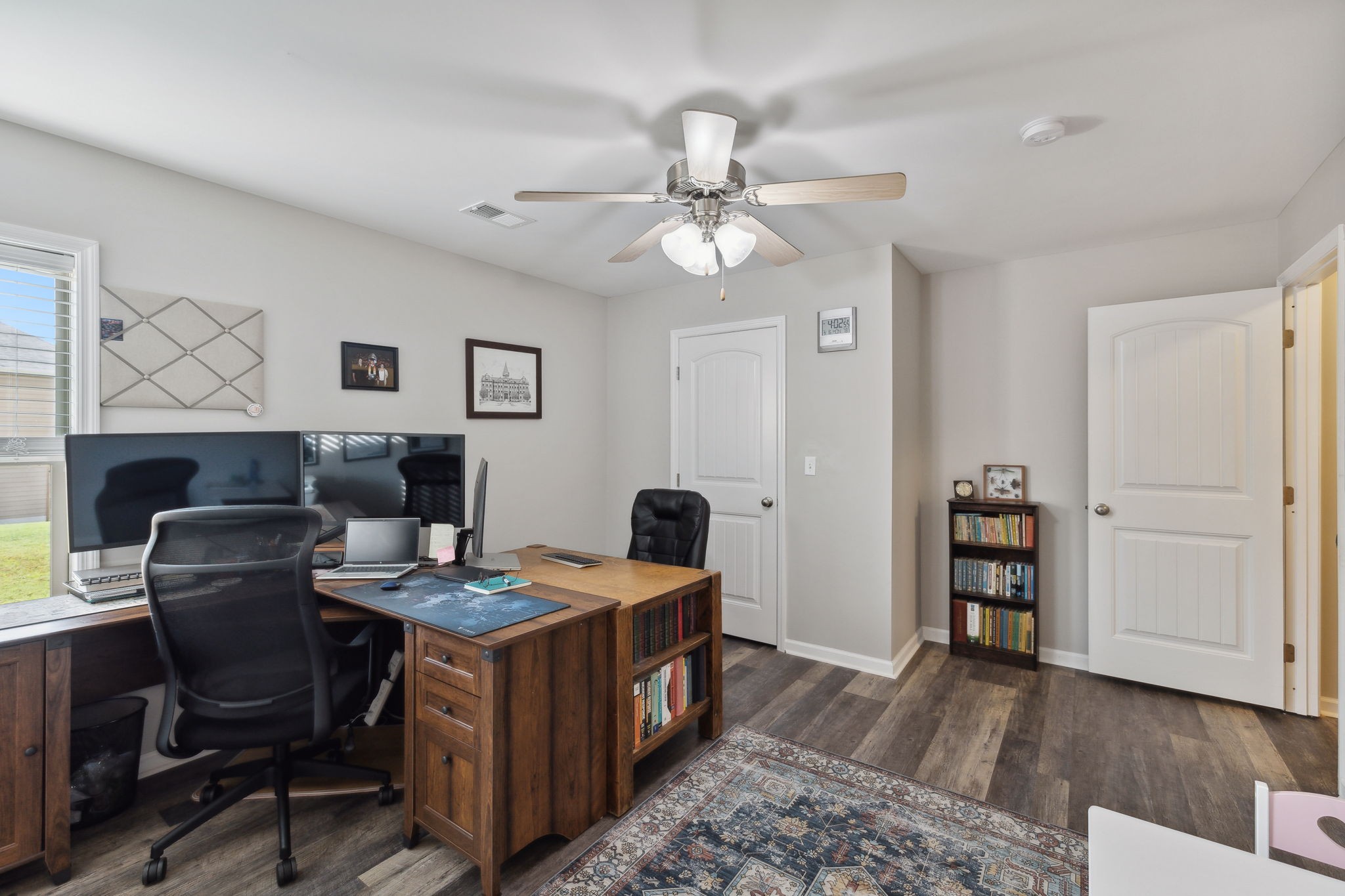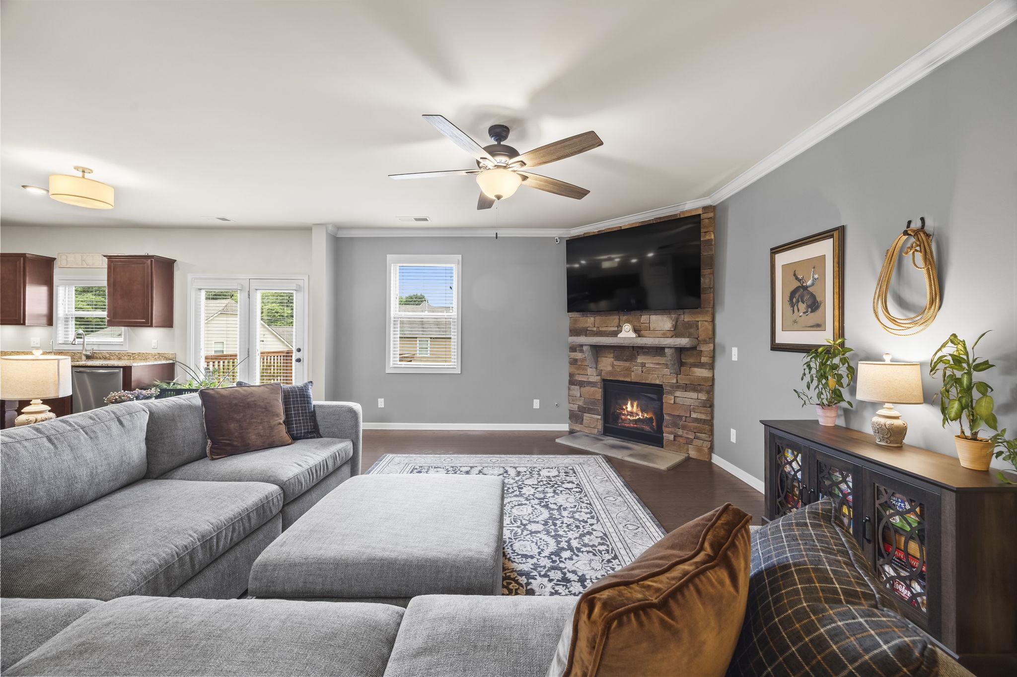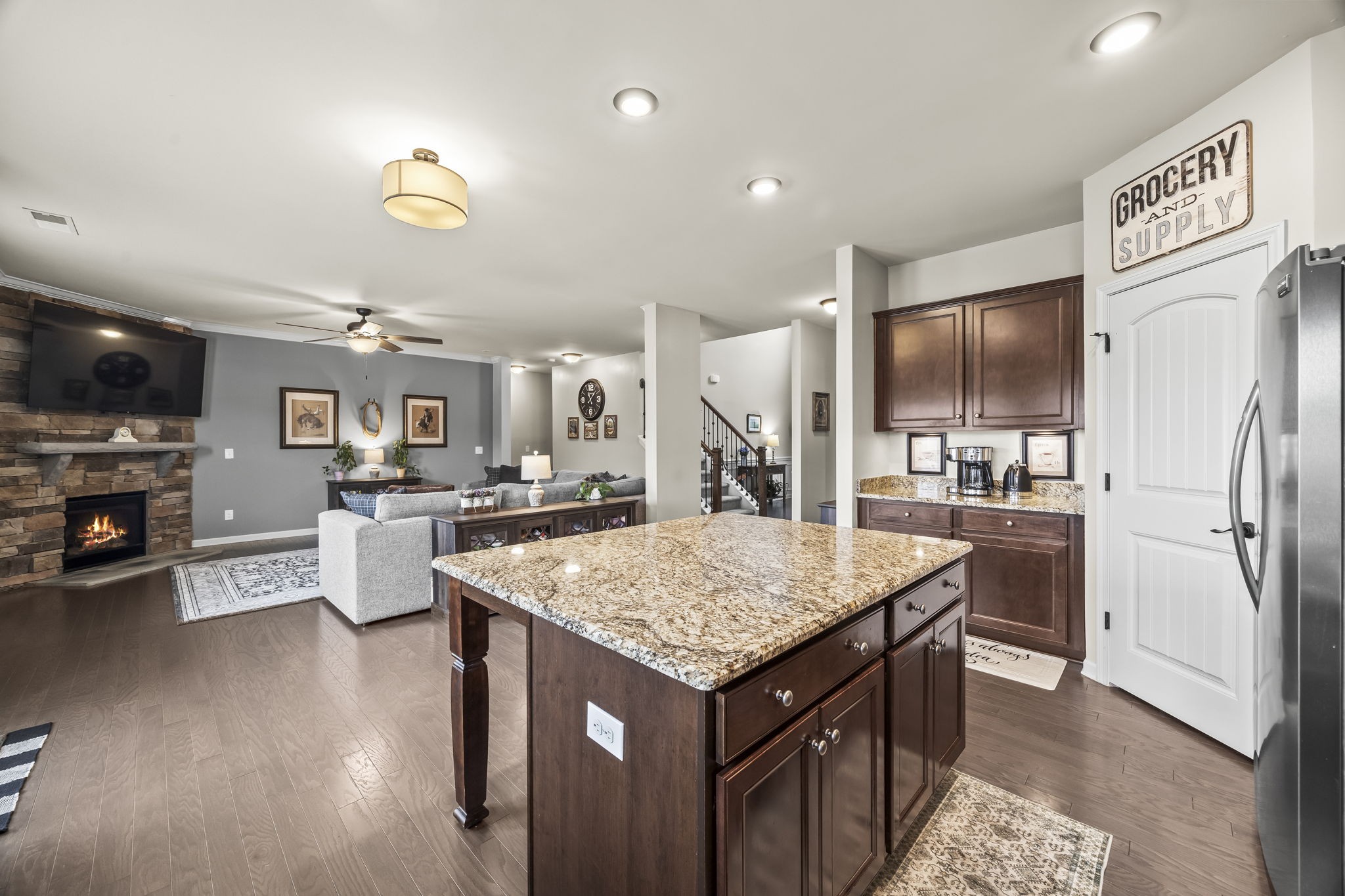 Looking for Space and a Basement home in a great Location- This is it! 5 Bedrooms, 4 Baths, Stone and hardyboard exterior, front porch, back deck, patio and spacious lot on a quiet street! Open layout- the minute you walk in the door you will feel it! Main Floor- formal dining, generous kitchen with huge island and gas range. Open living space w/ fireplace. Secondary bedroom on main level w/ new carpet and full bath access. Crown molding, wood floors, details, dedicated laundry w/ cabinets. Upper level- sizable rec room, two spacious BRs, hall bath and amazing Primary suite. Finished daylight (windows) and walkout Basement has a large bedroom, 3 Flex rooms, storage closet, living area, and bathroom. Walkout to a patio and backyard! Great in-law living, guest or teen quarters! Newer HVAC 2022 and 2020 Roof. Neighborhood Pool, Park, and sidewalks! Easy Access to Saturn Pkwy, shops, dining and more retail to come!