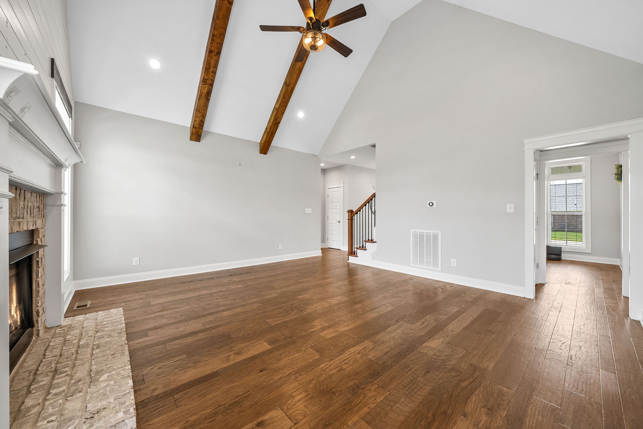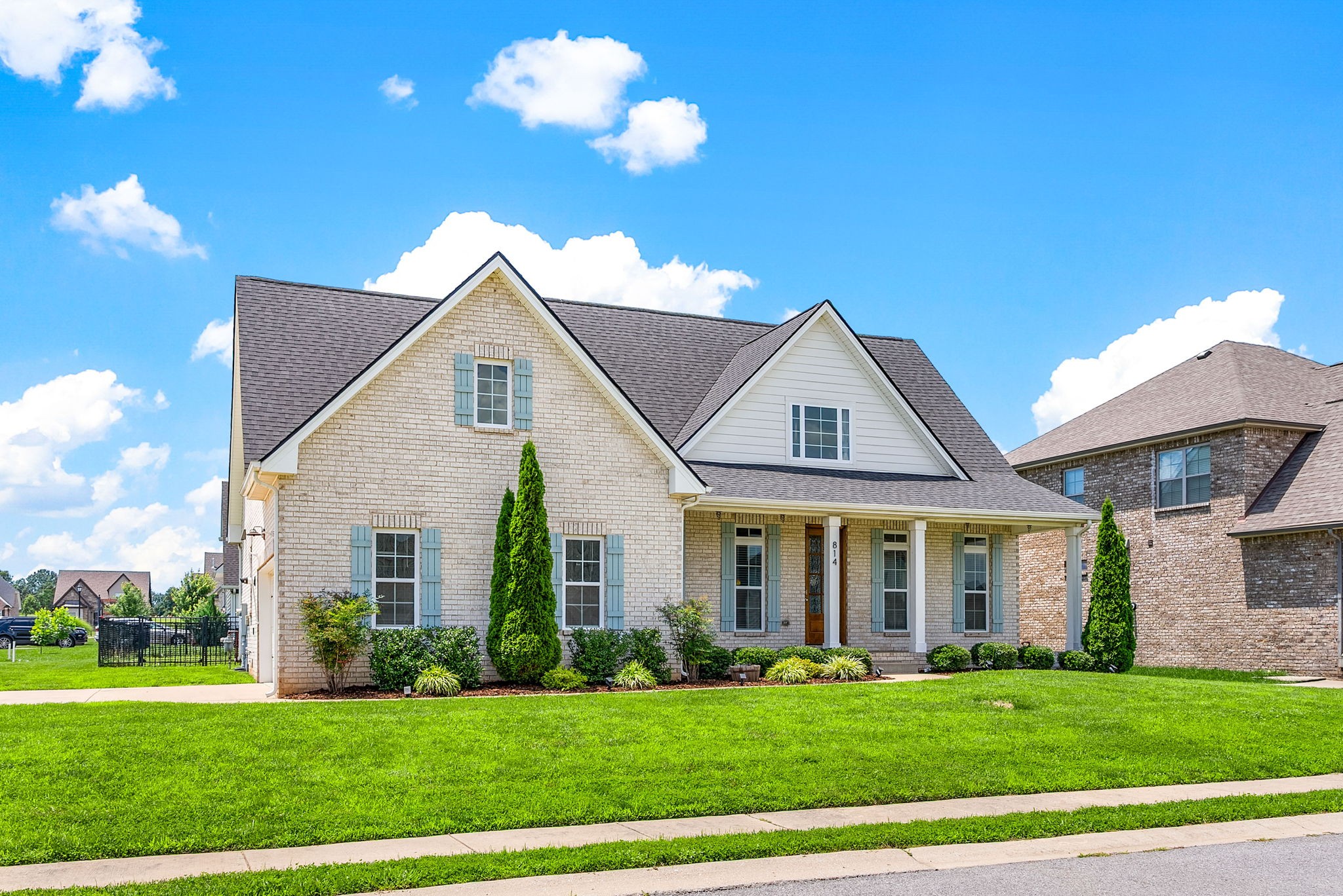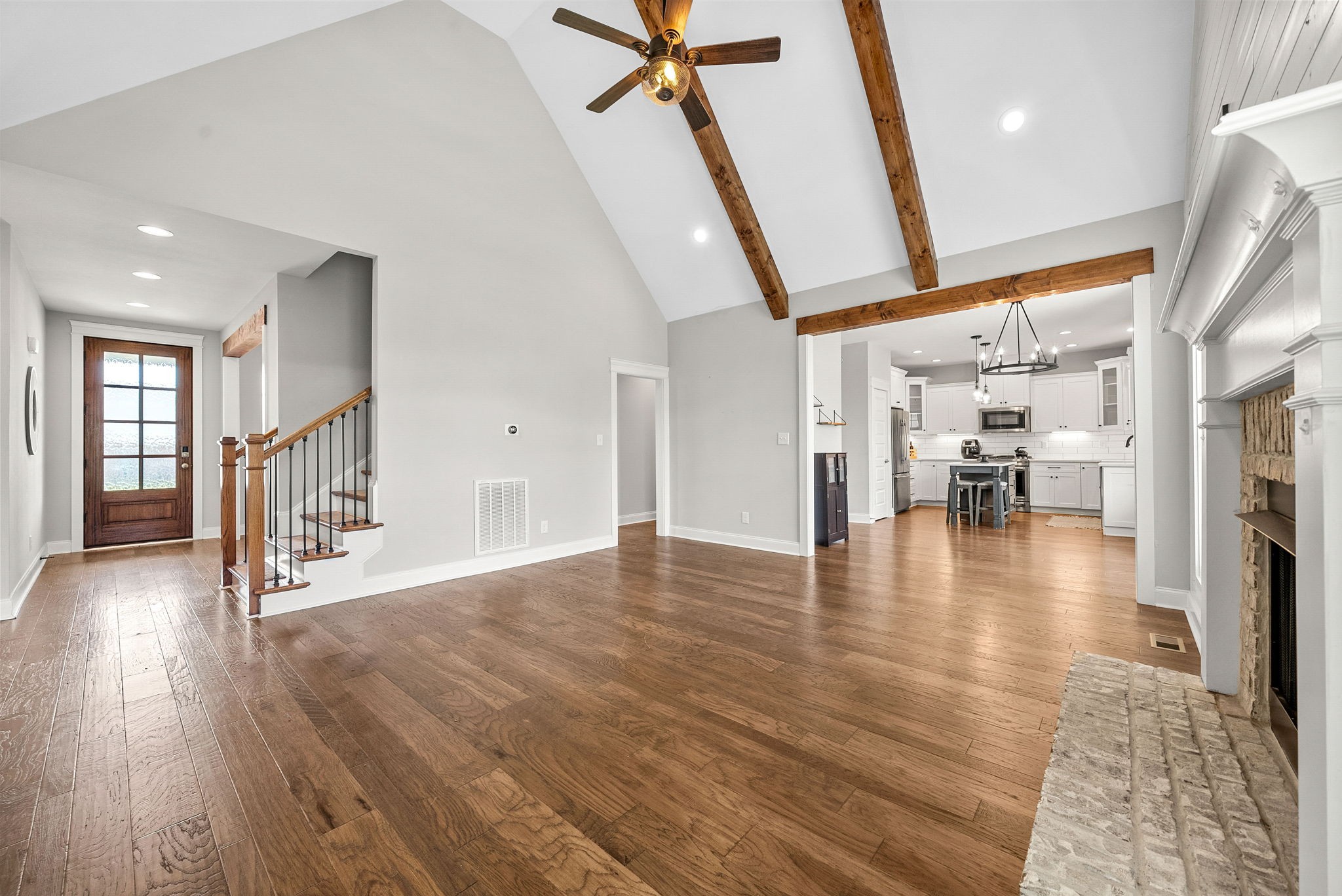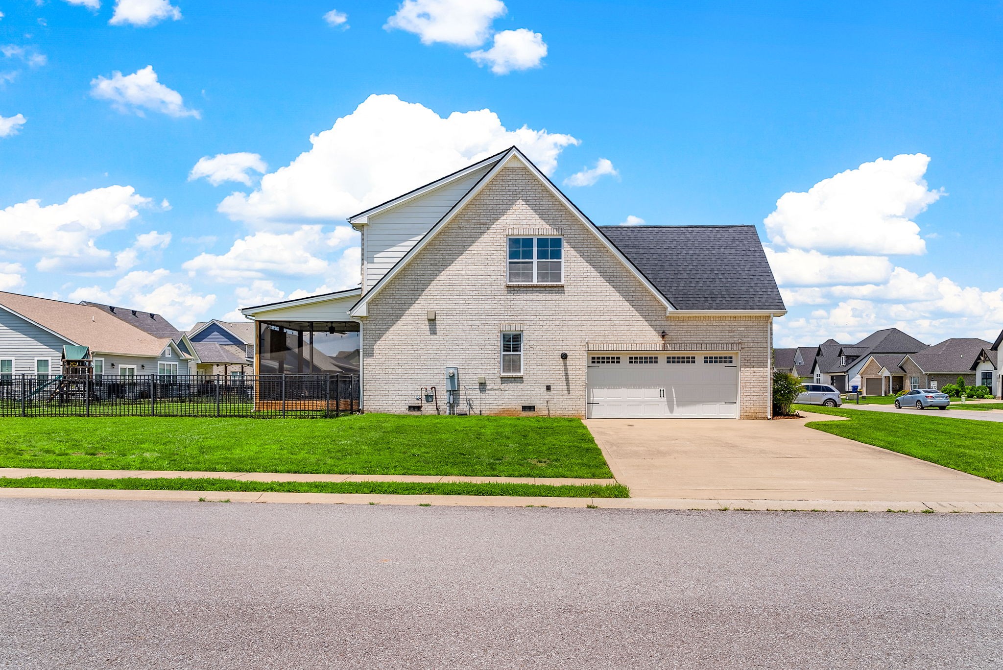 *Rec room w/ closet can make 4th bedroom!* Gorgeous all brick home on corner lot in Sango! This charming home offers an open concept floor plan, great for entertaining with exposed wood beams, gas fireplace, and gas range in kitchen! All bedrooms have walk-in closets. Large covered front porch and screened in back porch with fenced in back yard. Primary bedroom on main floor with large bathroom and free standing tub.