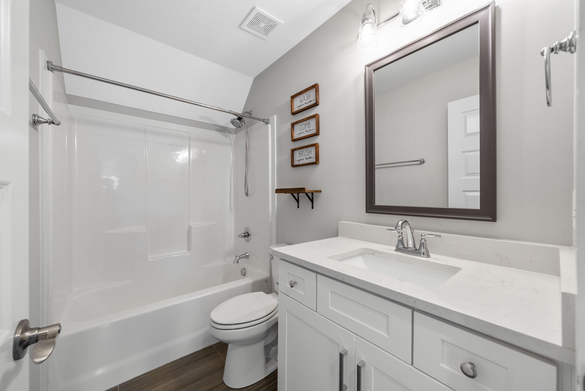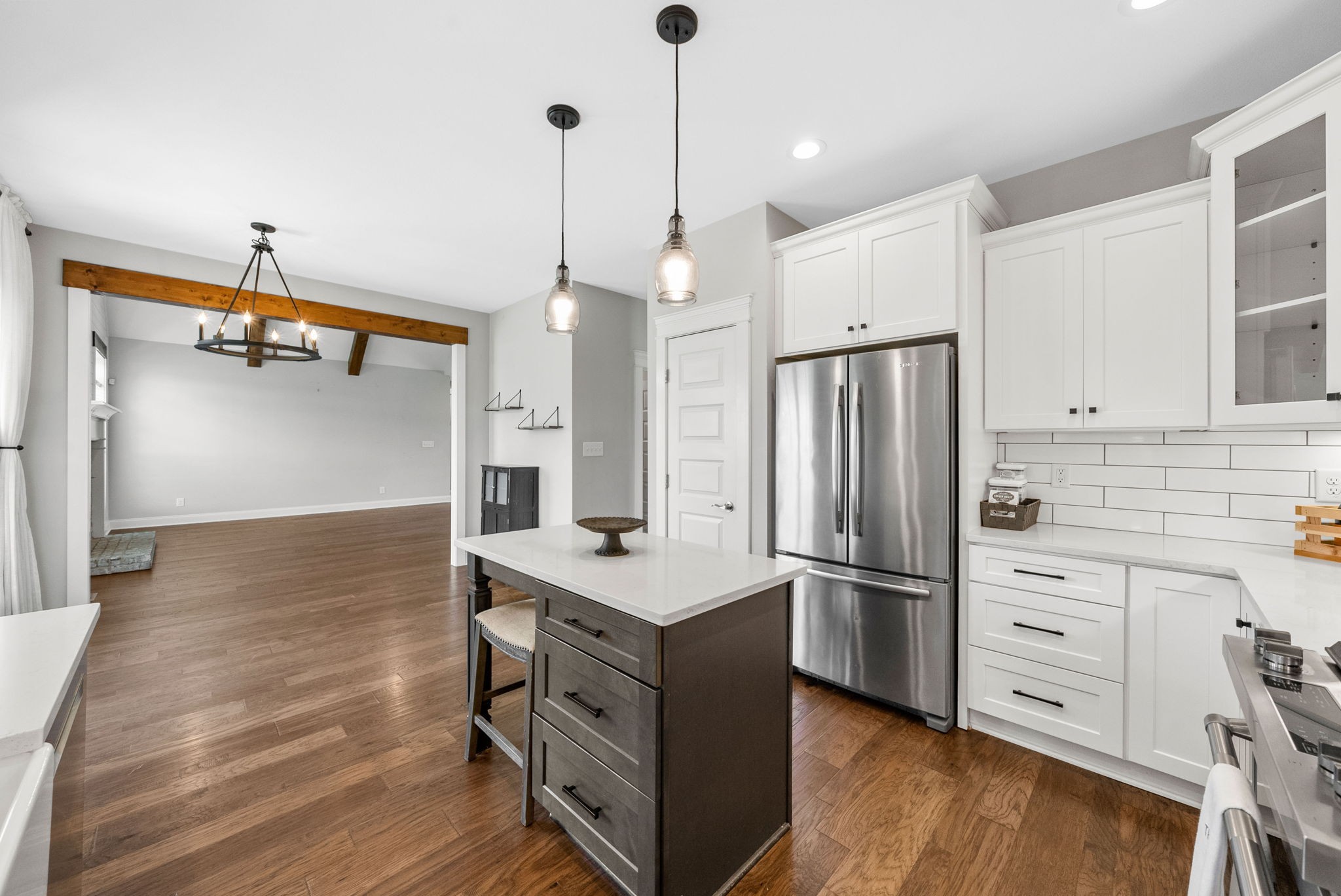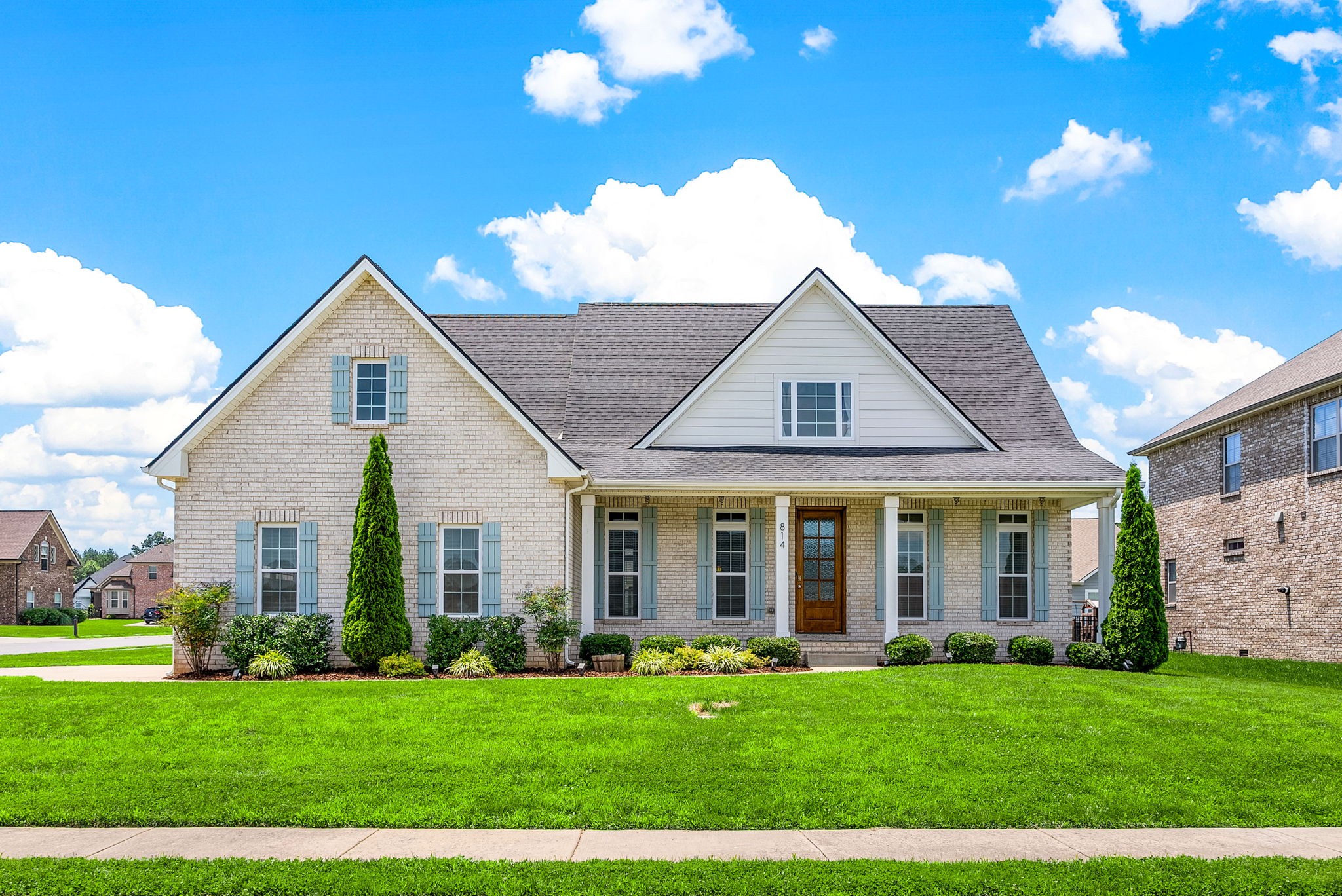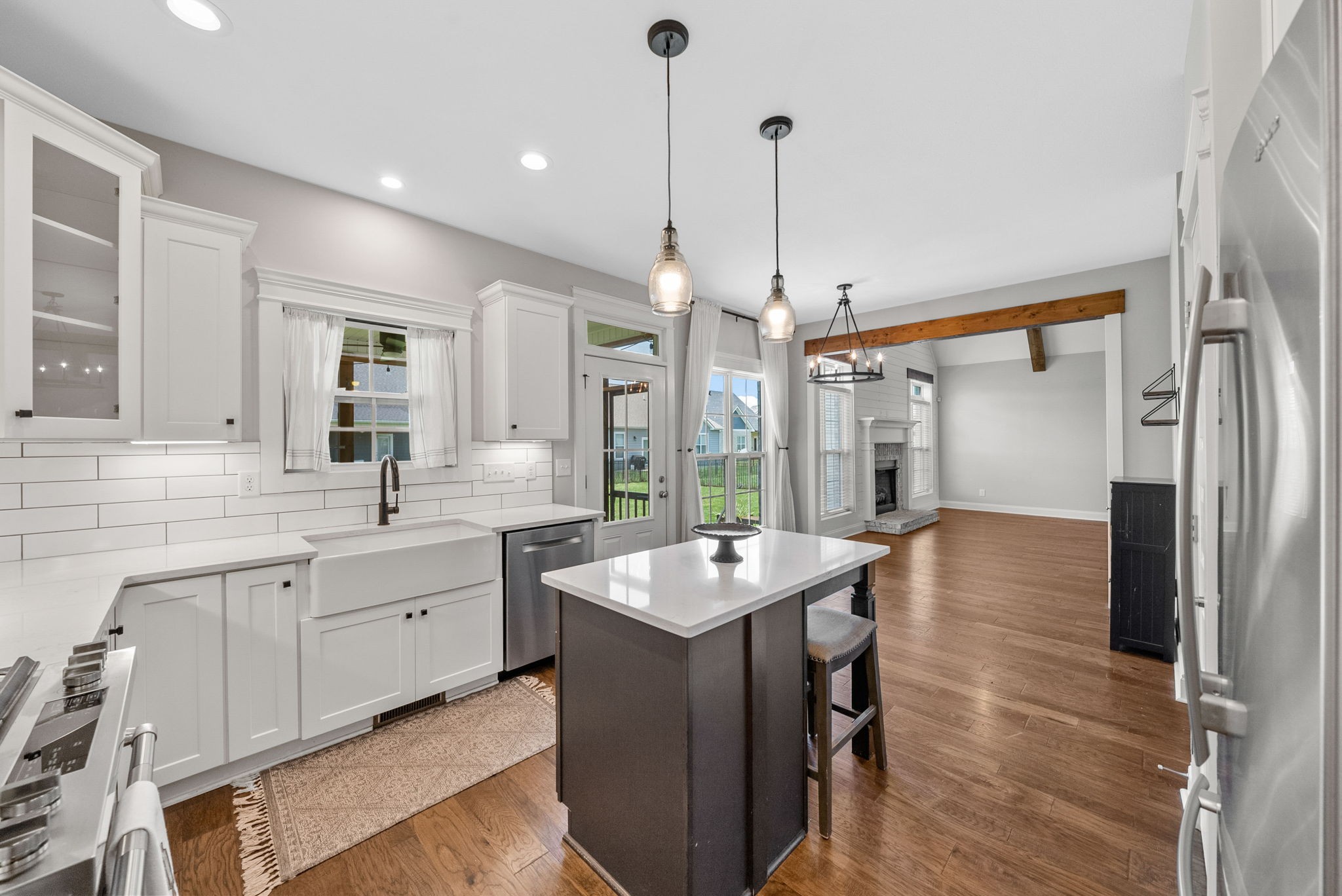 *Rec room w/ closet can make 4th bedroom!* Gorgeous all brick home on corner lot in Sango! This charming home offers an open concept floor plan, great for entertaining with exposed wood beams, gas fireplace, and gas range in kitchen! All bedrooms have walk-in closets. Large covered front porch and screened in back porch with fenced in back yard. Primary bedroom on main floor with large bathroom and free standing tub.