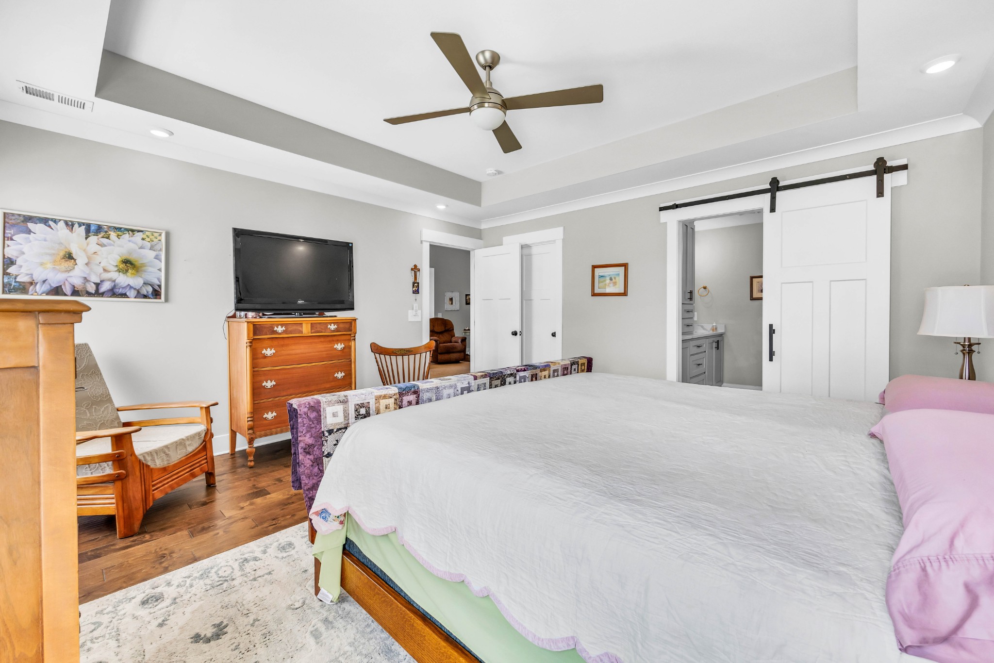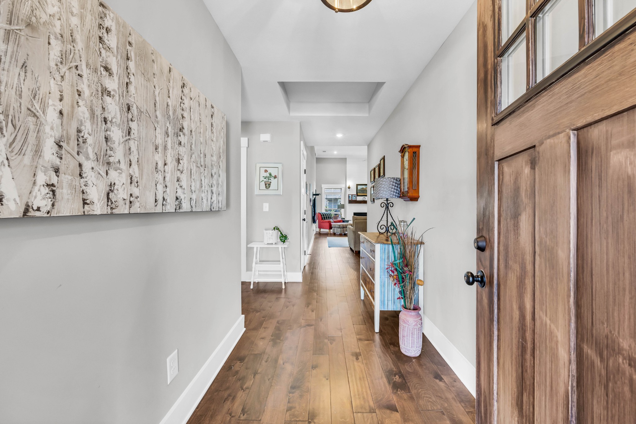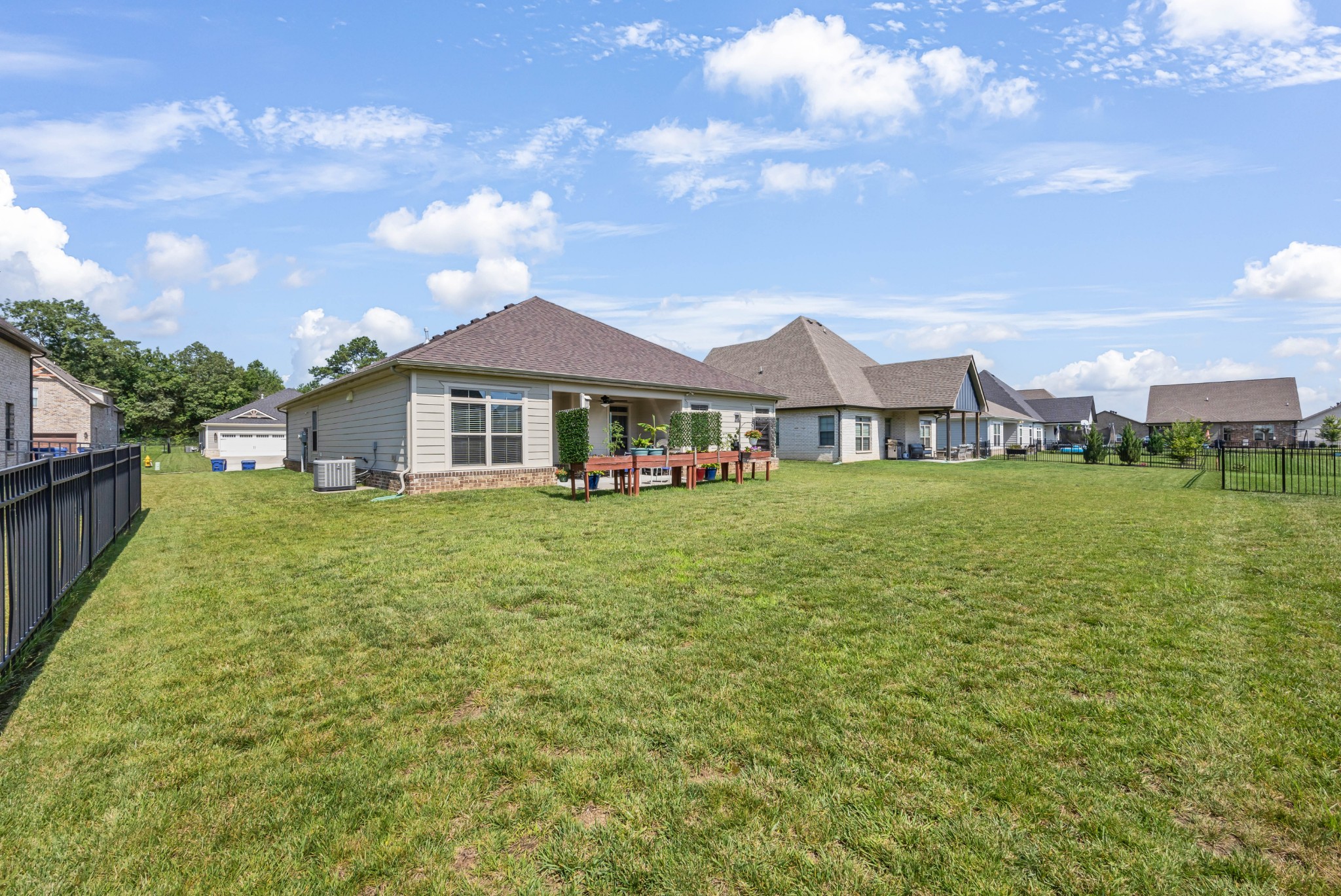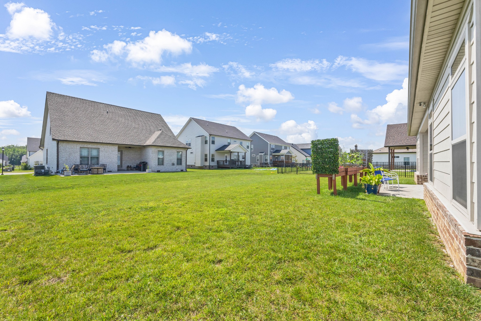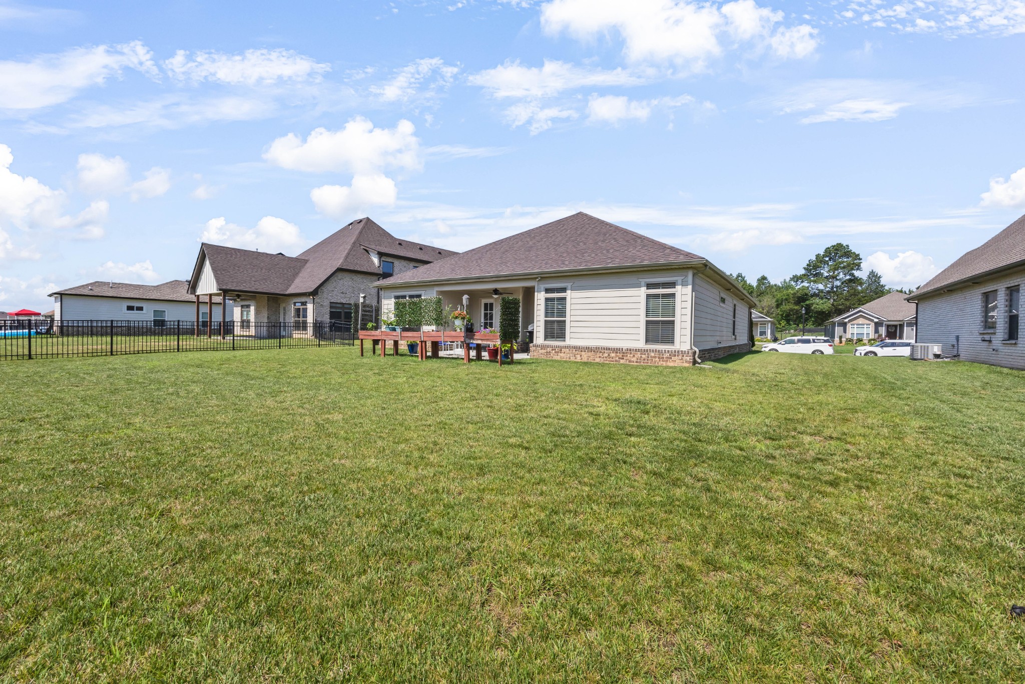 Your Perfect One-Level Dream Home! Here’s your chance to own a stylish and comfortable one-level home with low-entry access and timeless curb appeal! The exterior showcases a striking blend of board and batten siding, brick accents, and beautiful natural cedar details that add warmth and character. Gardeners will fall in love with the lush landscaping and well-maintained lawn, perfect for enjoying the outdoors. Inside, luxury vinyl plank flooring gives the look of hand-scraped hardwood with durability and ease of maintenance. The open-concept floorplan seamlessly connects the kitchen, living room, and breakfast nook—ideal for entertaining or relaxed daily living. The kitchen boasts abundant cabinetry, quartz countertops, and a modern design sure to impress.