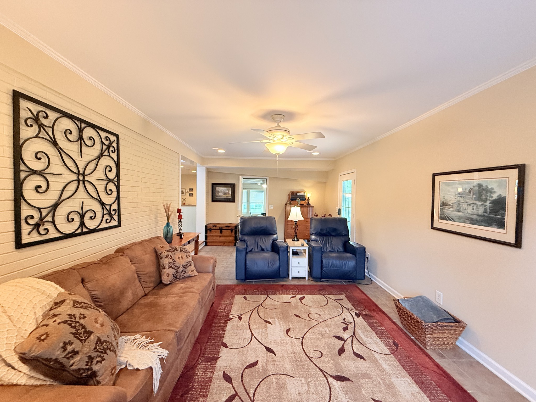NEW PRICE! NO HOA! MUST SEE! Beautifully remodeled and updated by a licensed contractor, this all-brick, one-level ranch offers 3 bedrooms, 2 full baths, and a spacious open floor plan. A charming, attached brick carport and storage building enhance curb appeal and convenience. The partially fenced backyard features an irrigation system on a separate meter and ample space to enjoy the outdoors. Inside, you’ll find Pella windows with plantation shutters throughout, plus a whole-house fan that circulates air efficiently for energy savings. The Florida Room—an all-season screened/glass space—flows seamlessly into the kitchen and living room, creating an ideal layout for everyday living and entertaining. The living room features a wood-burning fireplace with a nearby gas line for easy installation of gas logs. The remodeled kitchen boasts granite countertops, tile backsplash, custom cabinets with crown molding, recessed lighting, new appliances, and an eat-in dining area. The guest bath includes a tub/shower combo with subway tile surround, granite vanity, tile flooring, and plantation shutters. The spacious primary suite highlights a stomped ceiling, hardwood flooring, and a large walk-in closet. Its updated bath showcases a granite-topped custom vanity, oversized tiled shower, and built-in linen tower. Additional features include a current termite contract, a laundry room with extra storage, and a converted garage now serving as a versatile study or flex room. This move-in-ready home is a MUST SEE—ideally located just minutes from I-40, I-840, Hwy 109, and Nashville International Airport (BNA), with quick access to schools, shopping, restaurants, and historic downtown Lebanon.