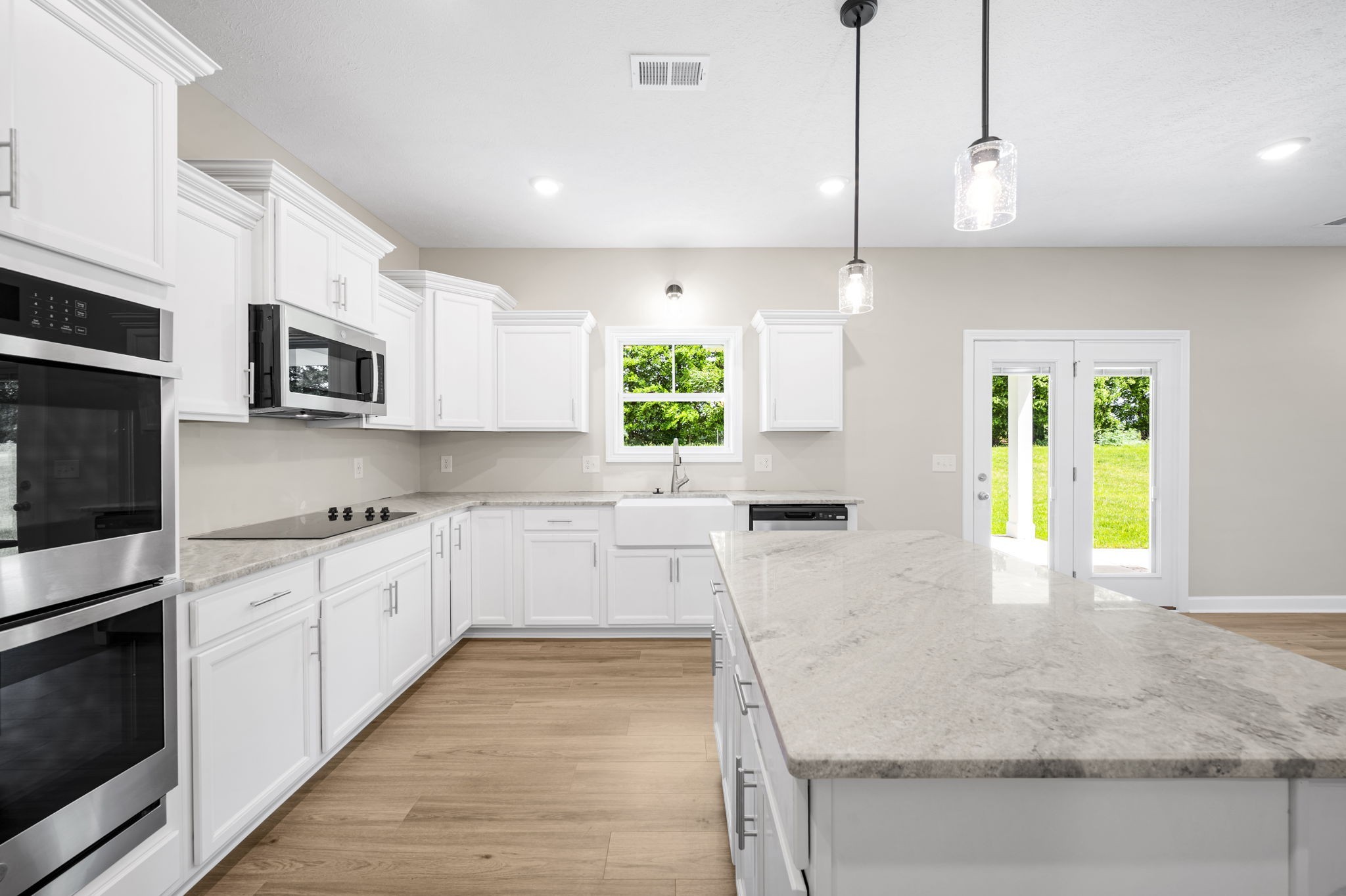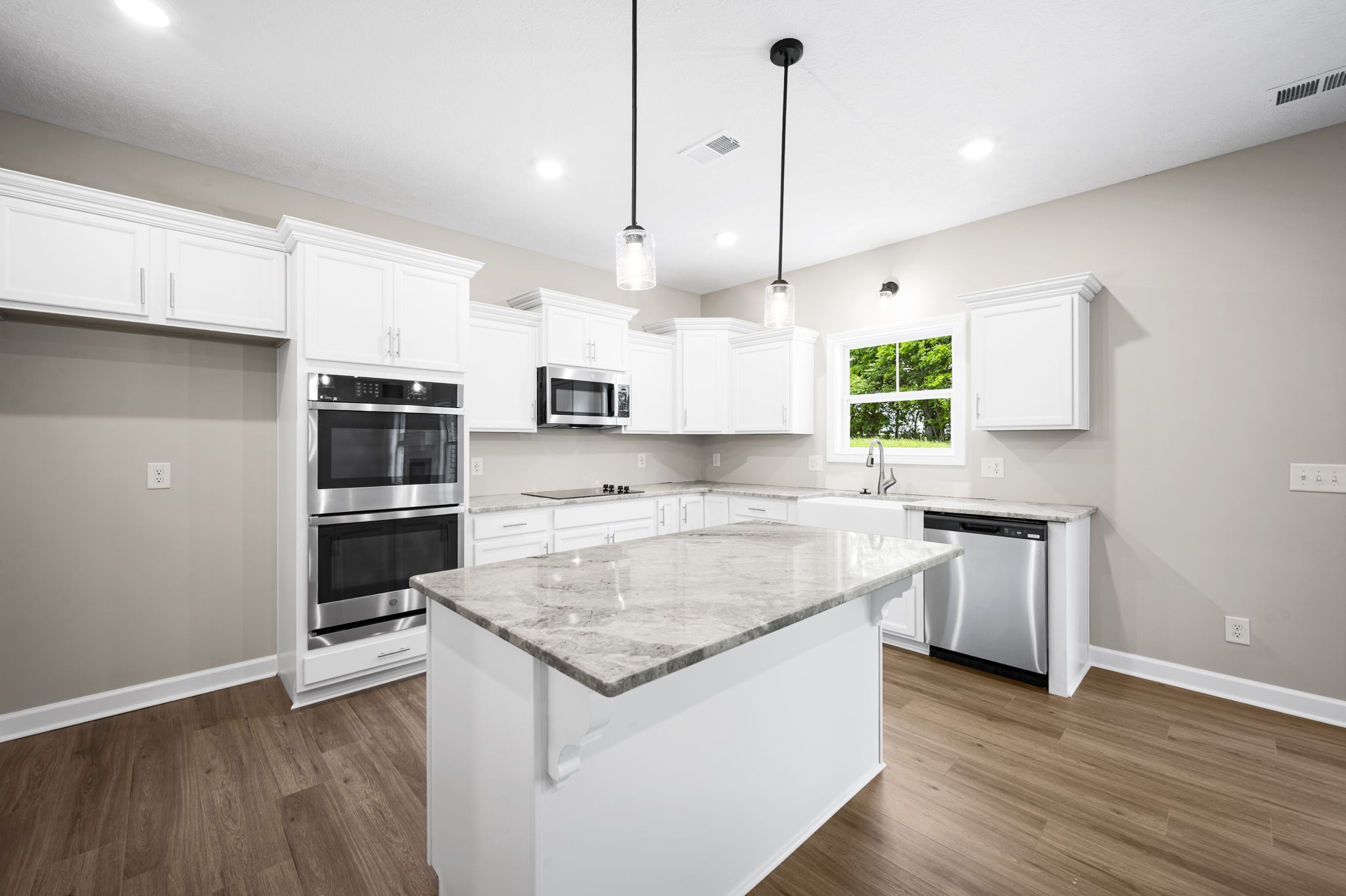 - AppliancesDishwasher, Disposal, Microwave, Double Oven, Electric Oven, Cooktop