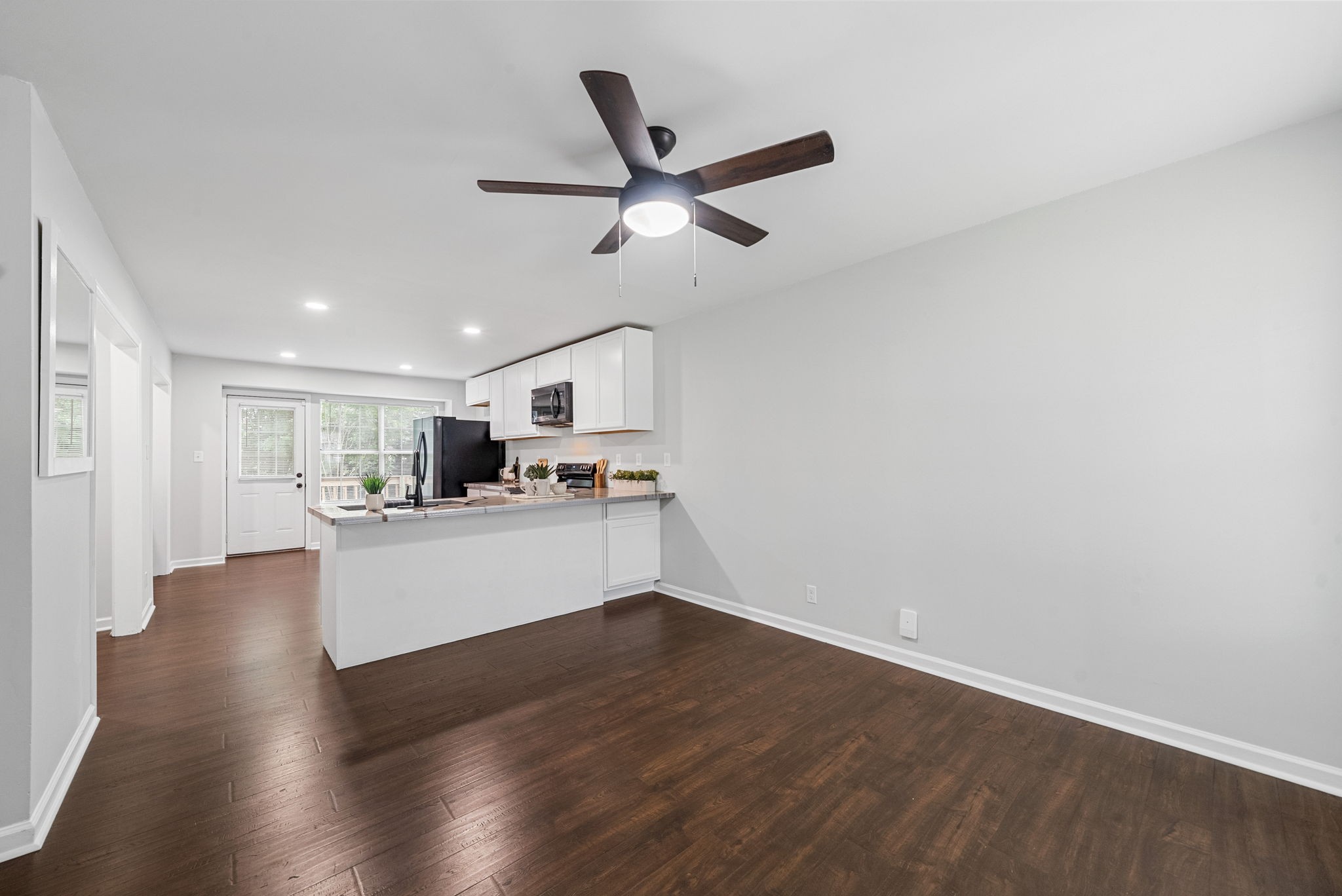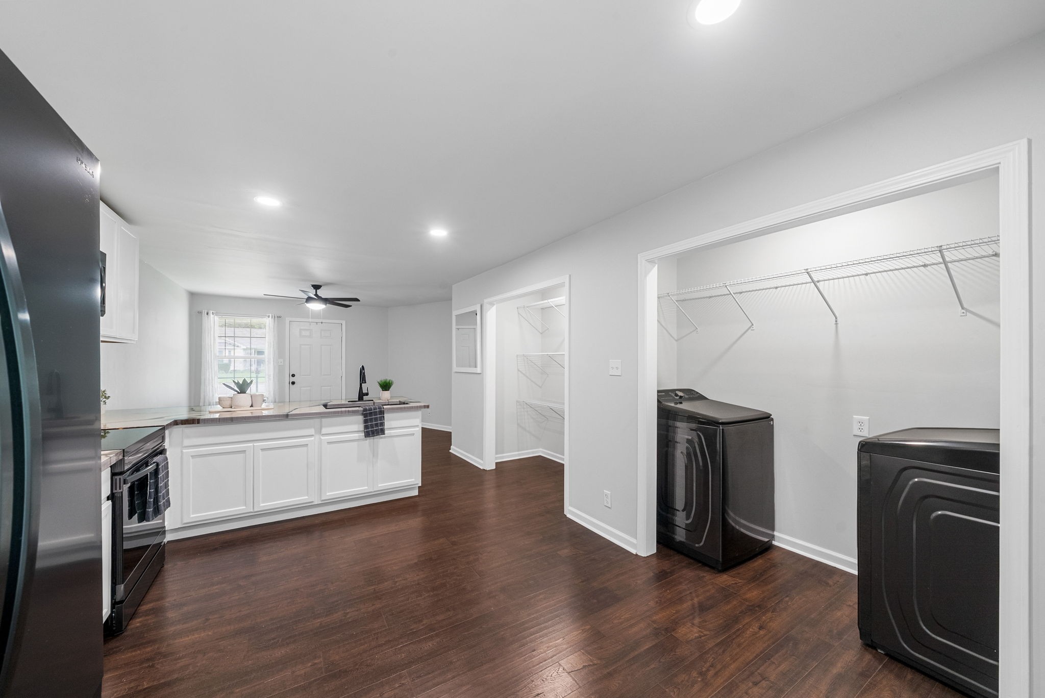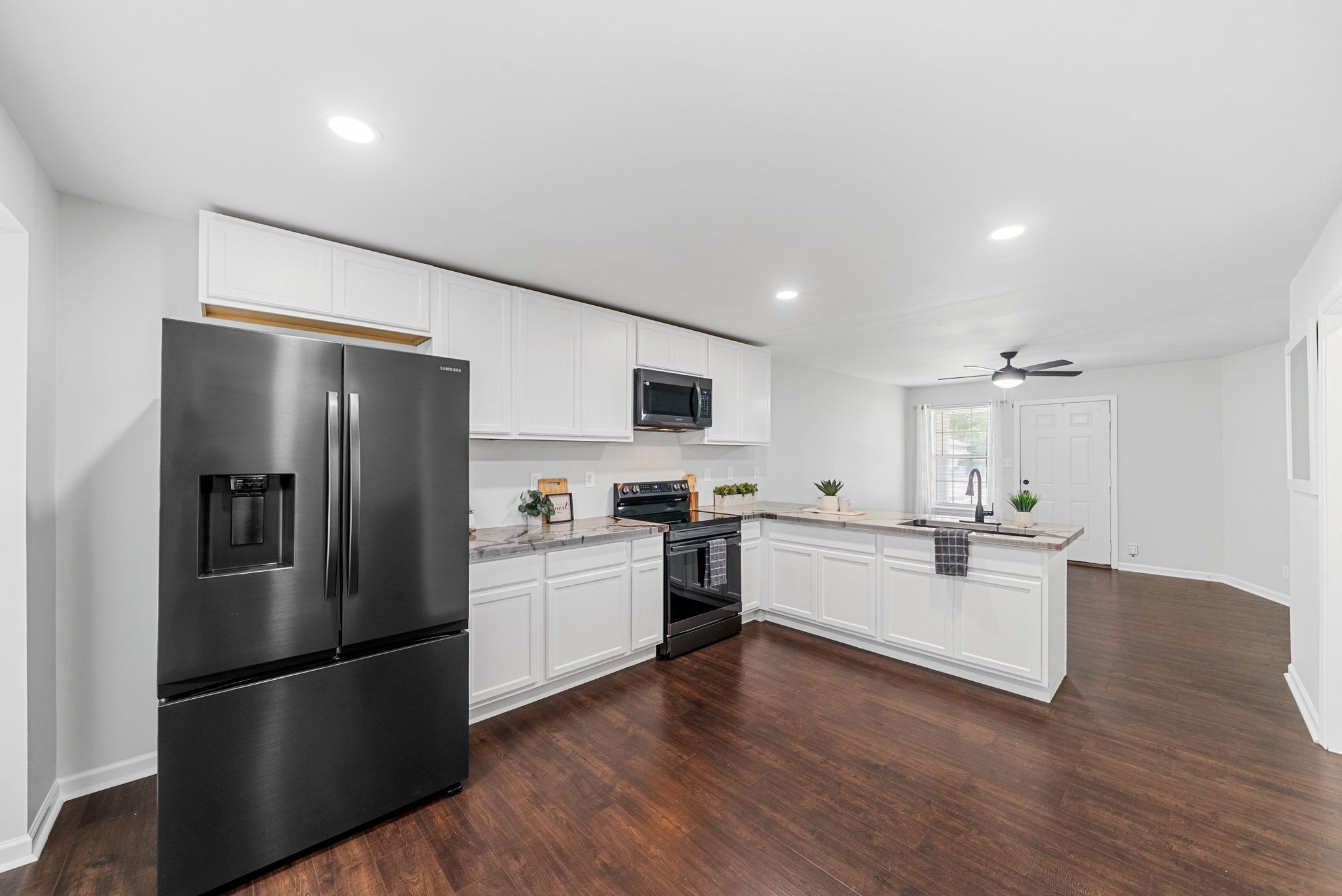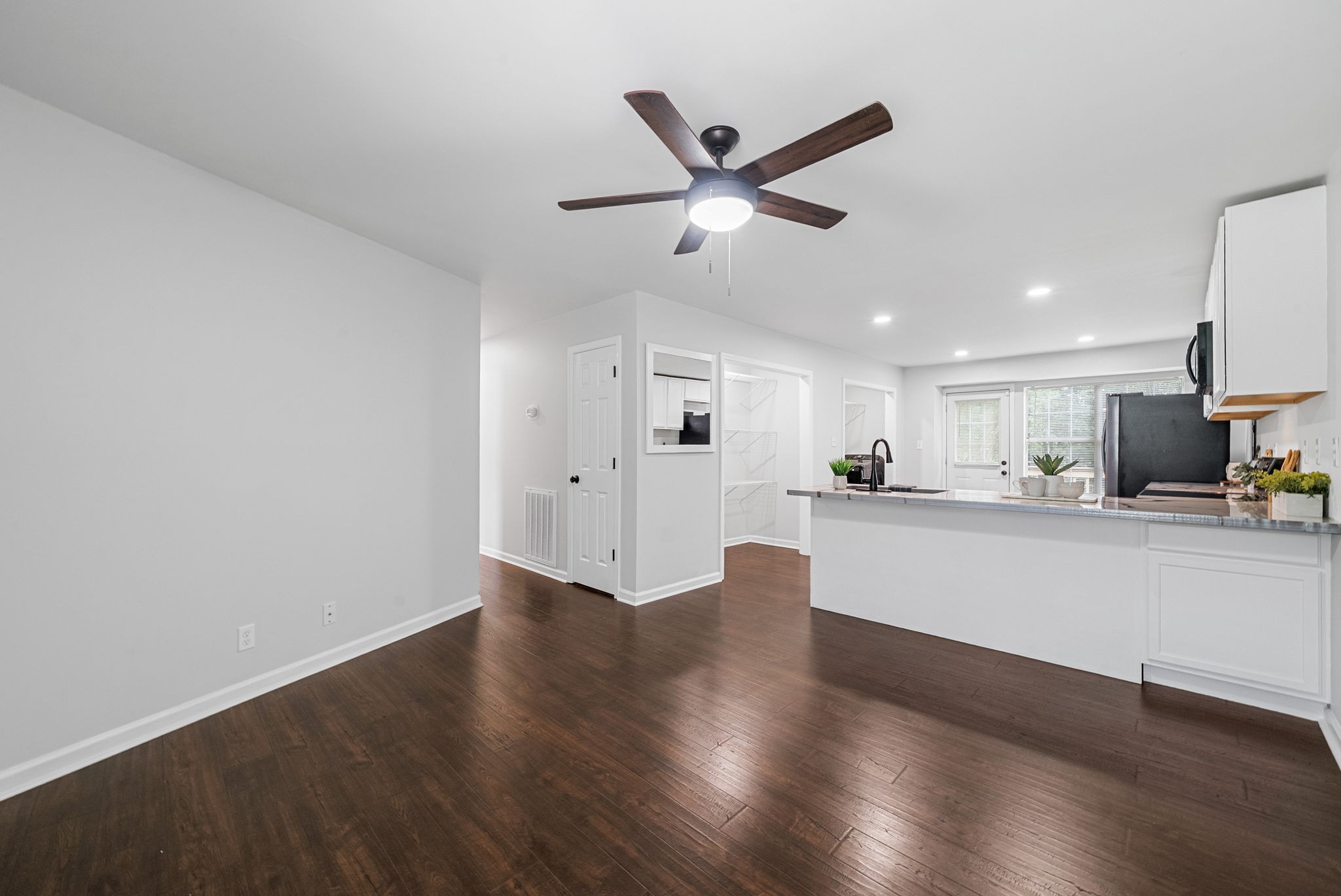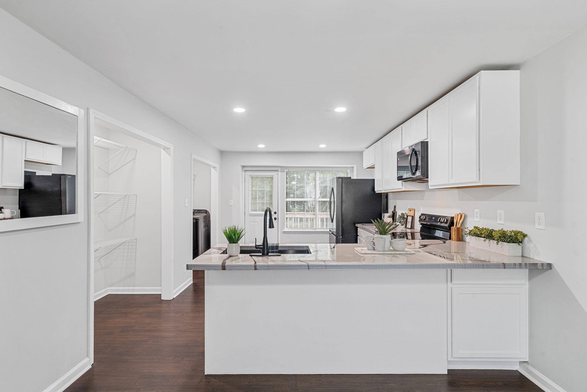 Step into this BEAUTIFULLY RENOVATED one level home that feels brand new from the moment you walk in. Walls have been opened to create an inviting, light filled layout with waterproof engineered Pergo hardwood flooring throughout. The SPACIOUS kitchen is a dream, featuring new cabinets, SMART appliances including a conventional oven, an oversized sink, and a large walk in pantry ready for all your storage needs.