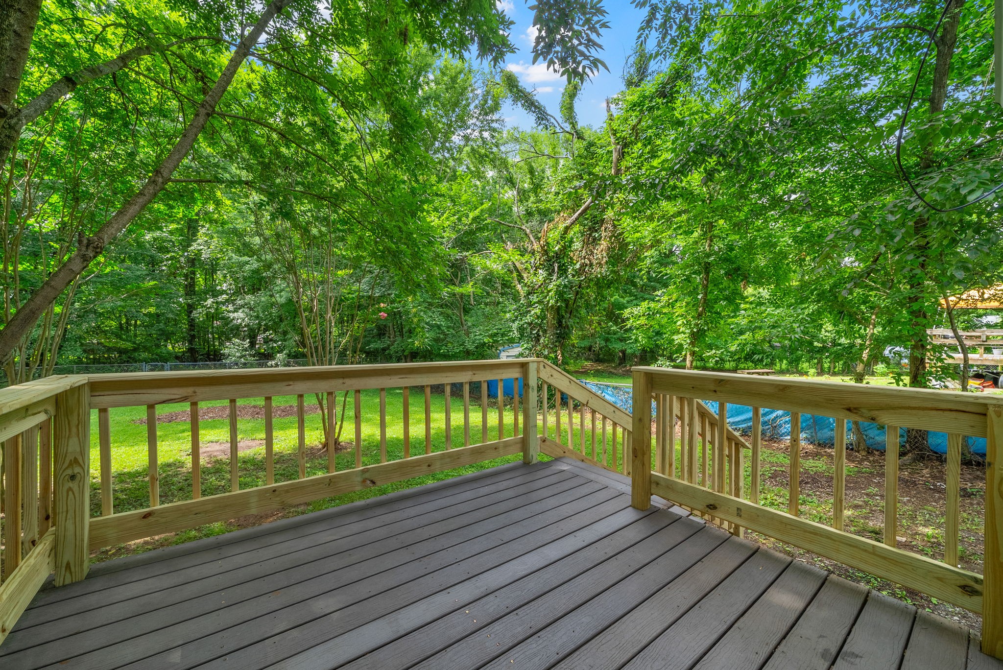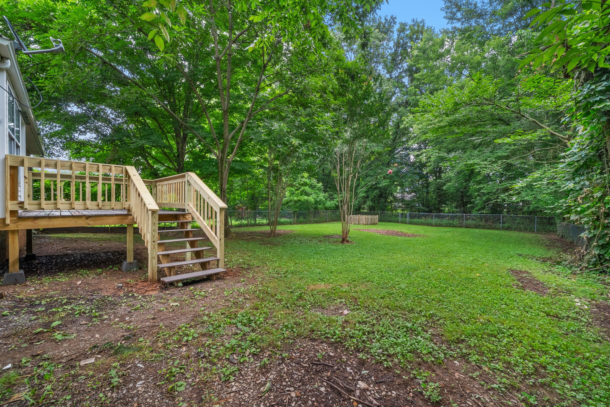Step out onto your BRAND NEW composite deck overlooking a FENCED backyard shaded by mature trees, perfect for relaxing or entertaining.