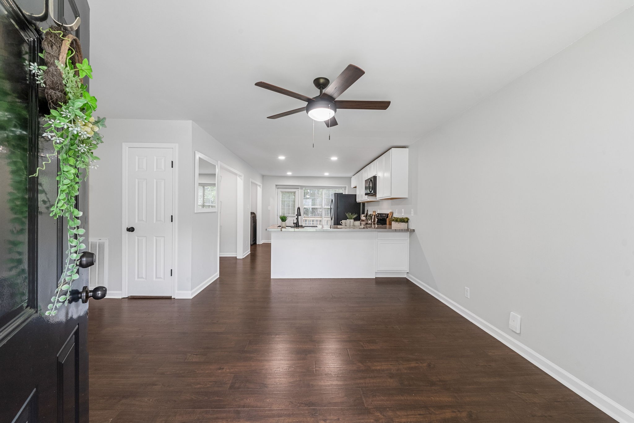 Both bathrooms have been TASTEFULLY updated with modern vanities and fixtures. The PRIMARY suite offers a generous walk in closet for easy organization. Every detail has been thoughtfully updated with NEW plumbing, baseboards, bedroom doors, recessed lighting, ceiling fans, and a NEW HVAC return to keep things comfortable year round.