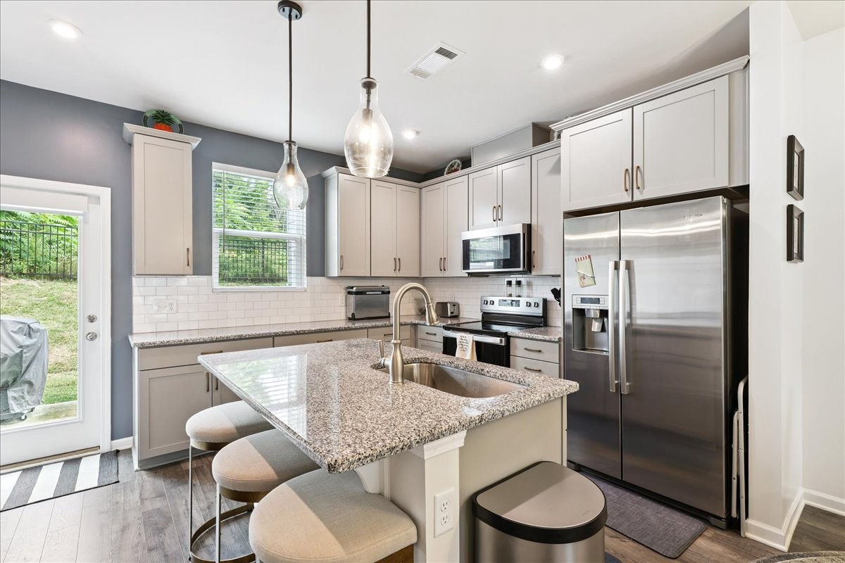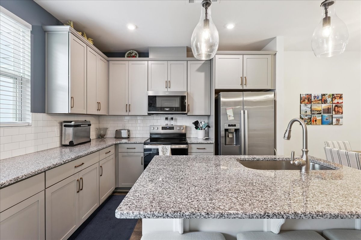 - AppliancesElectric Oven, Electric Range, Dishwasher, Disposal, Ice Maker, Microwave, Refrigerator, Stainless Steel Appliance(s)