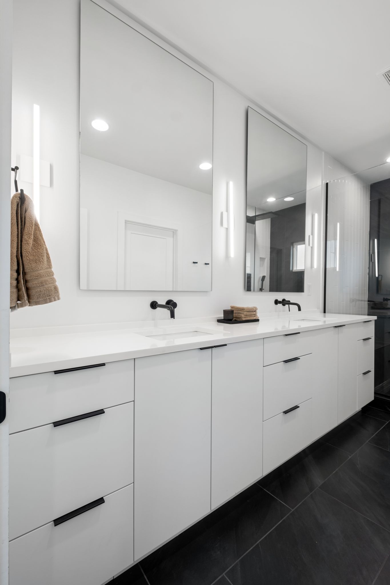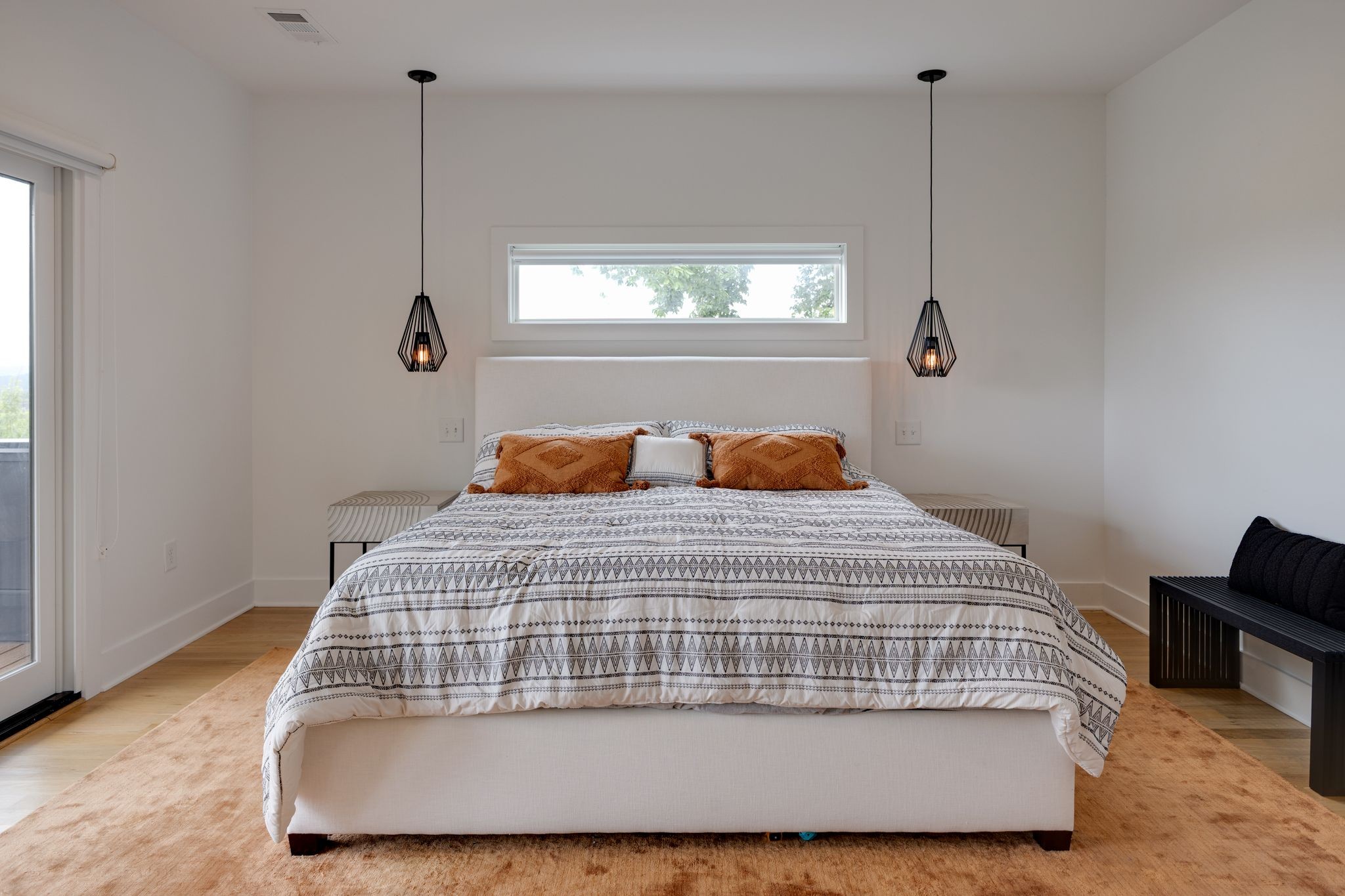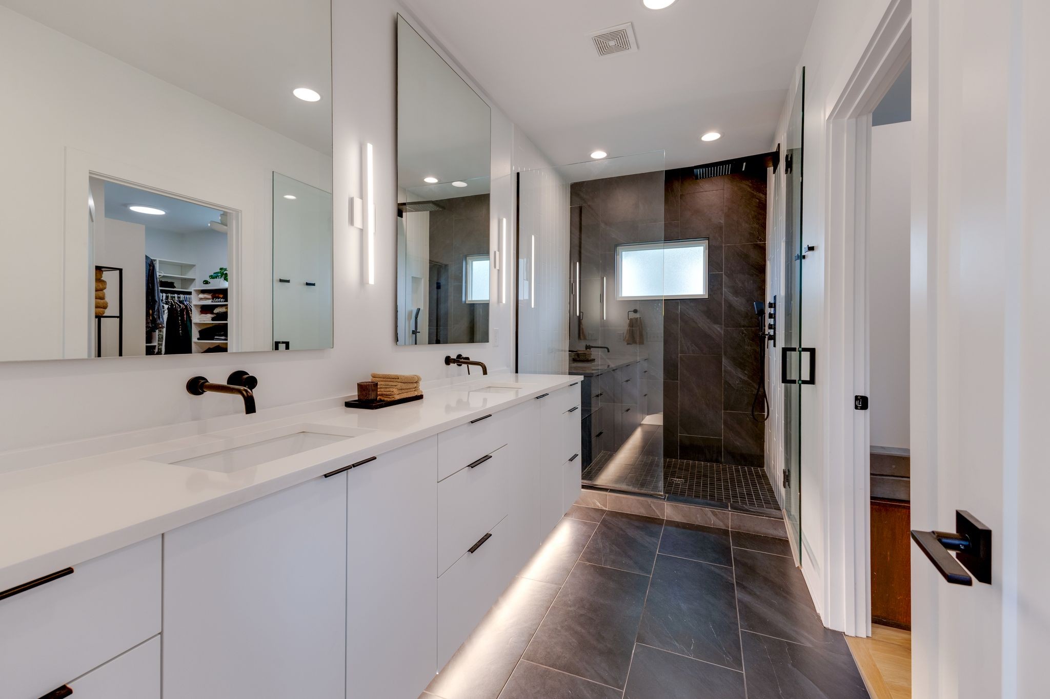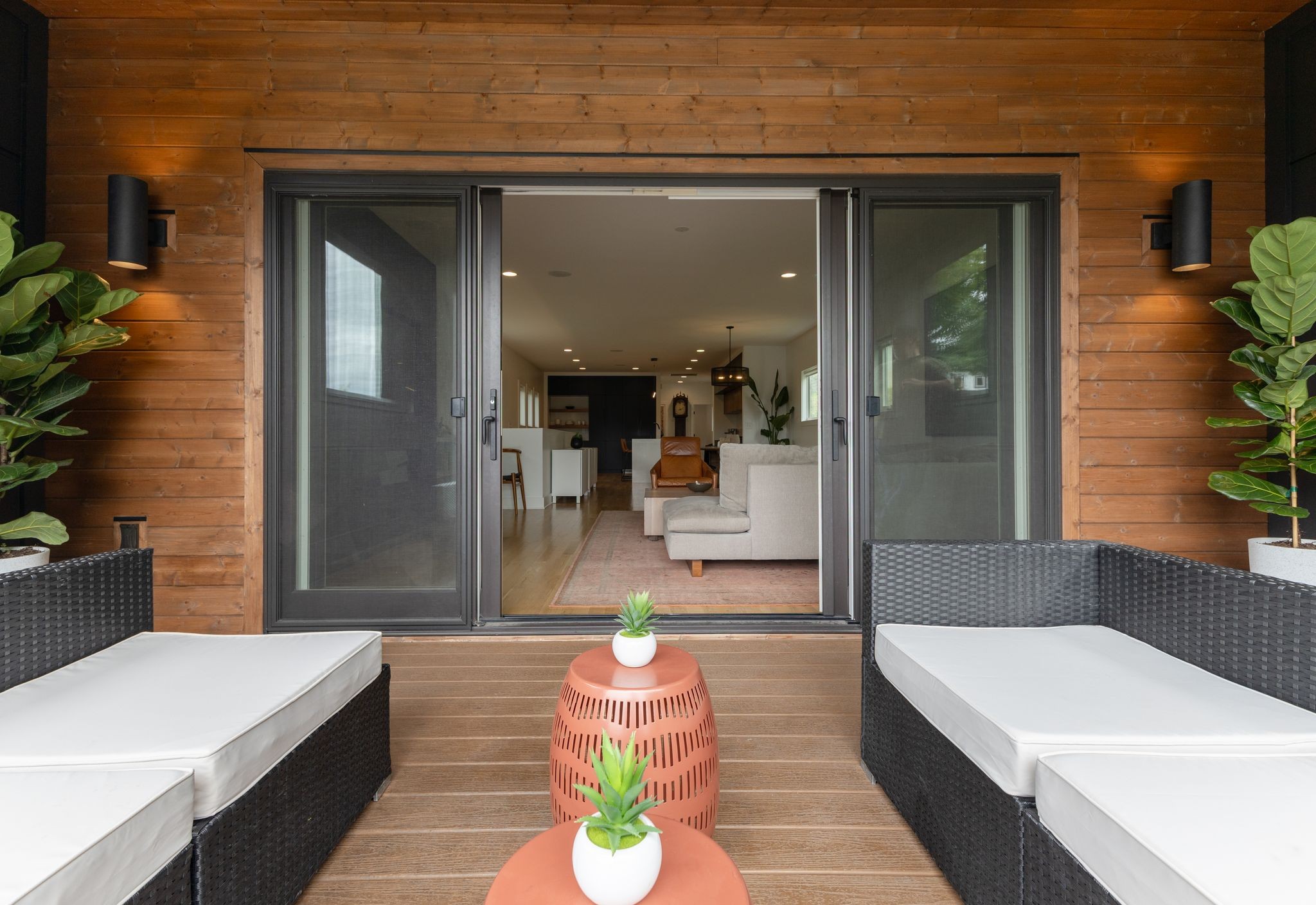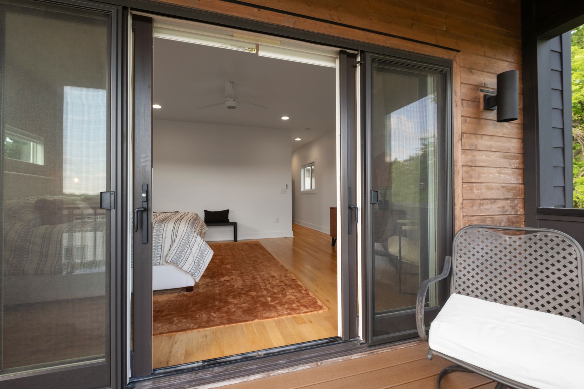 Step inside to a thoughtfully designed interior featuring real hardwood floors throughout, a sleek electric fireplace, and a designer-curated lighting package. Oversized windows flood every room with light, highlighting the home’s clean lines and modern aesthetic.