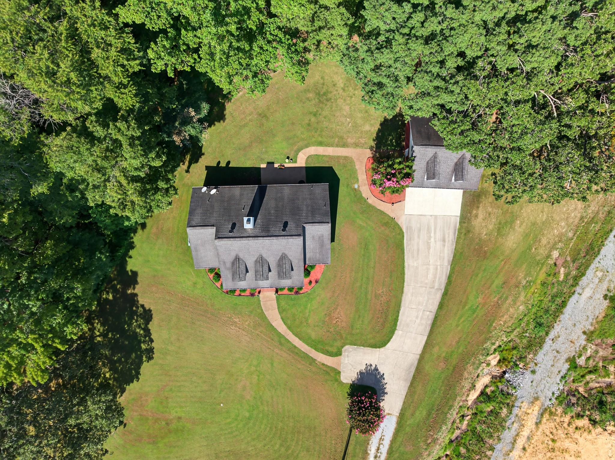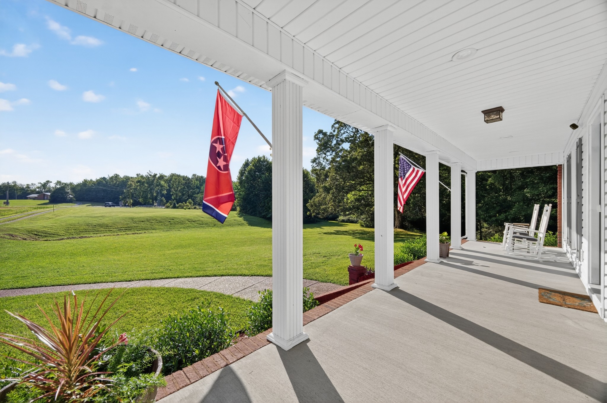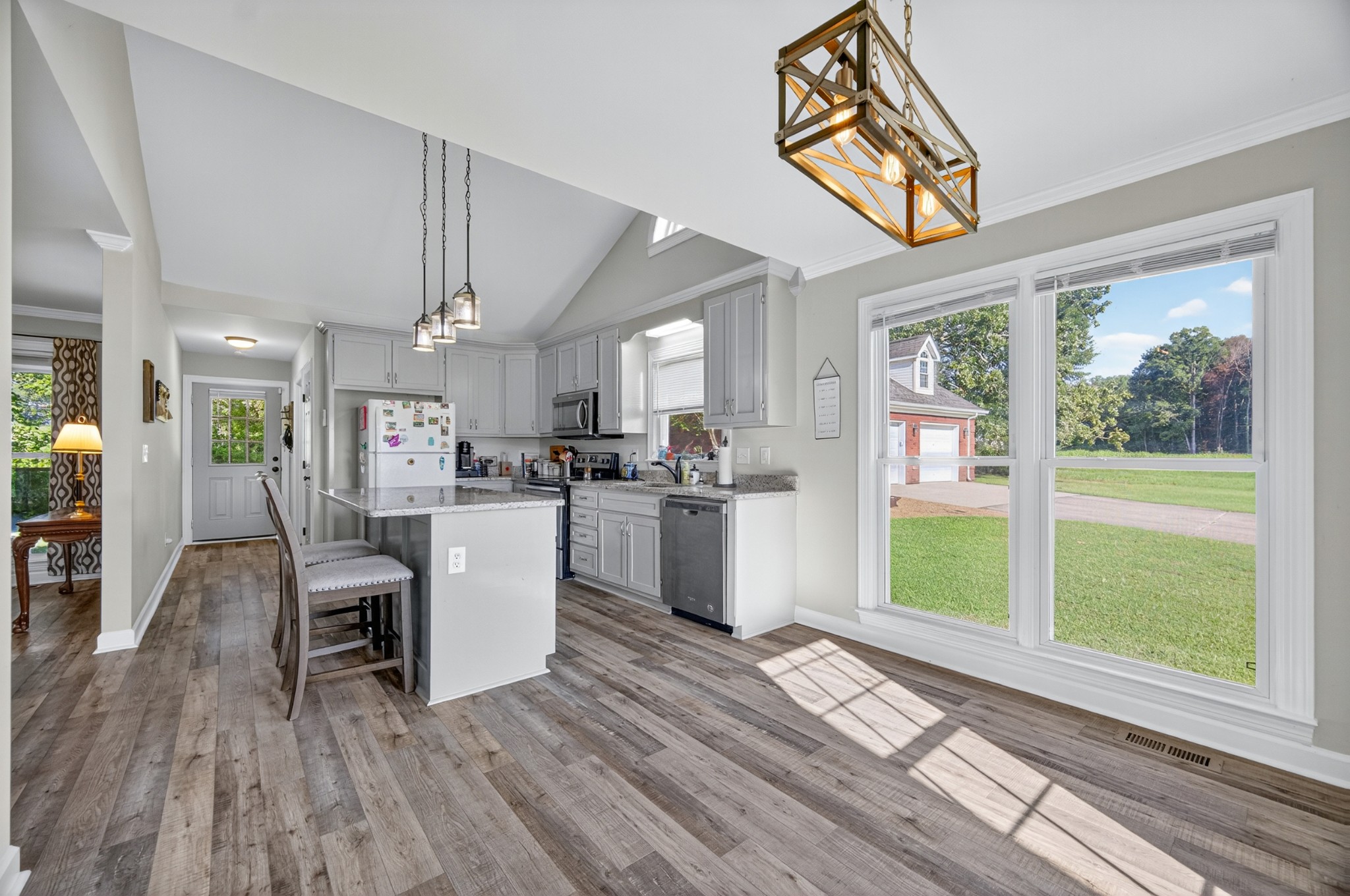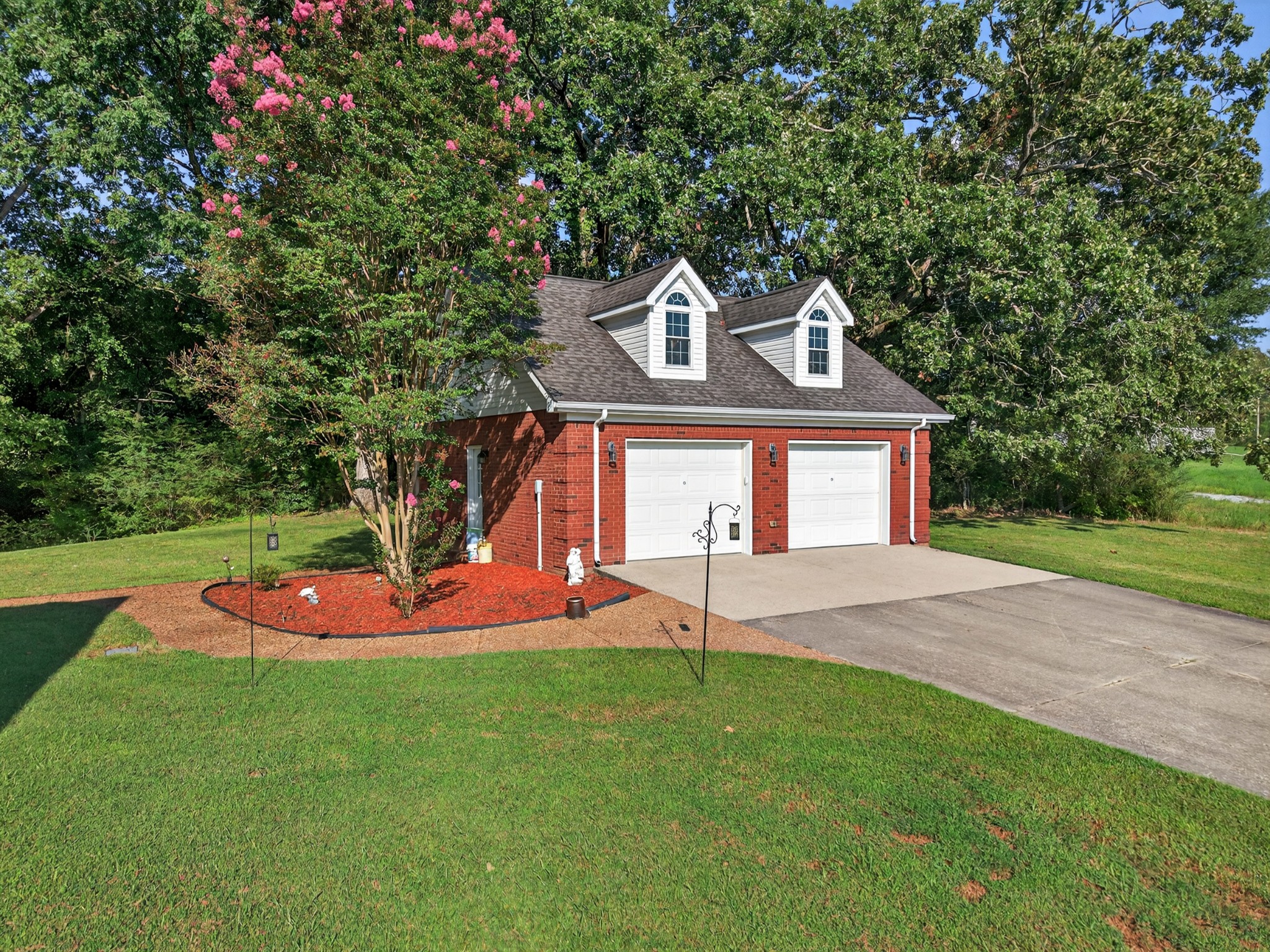 Welcome to your own mini estate just minutes from the Tennessee/Alabama line! This beautifully updated solid brick home on 2.63 acres offers the best of both worlds—highway visibility for future possibilities yet tucked back for peaceful privacy. A charming creek borders one side of the property, adding to its serene feel. Step inside to modern, neutral tones, granite counters, painted cabinets, stainless steel appliances. Enjoy the spacious formal dining room with built-ins, a casual dining nook, and a cozy family room with gas log fireplace. The owner’s suite features a glamour bath you’ll love to unwind in. Relax on your screened, covered back porch and take in the beautiful setting. Outside, there’s a huge 24x30 detached 2-car garage with an upstairs storage area—perfect for a workshop or future hobby space. With 280 feet of Huntsville Highway frontage and general purpose zoning, this property holds endless potential—whether you keep it as your private haven or explore its commercial opportunities. Just 30 minutes to Huntsville and convenient to Fayetteville, this is the ideal spot for those wanting a touch of country living with all the amenities close by.