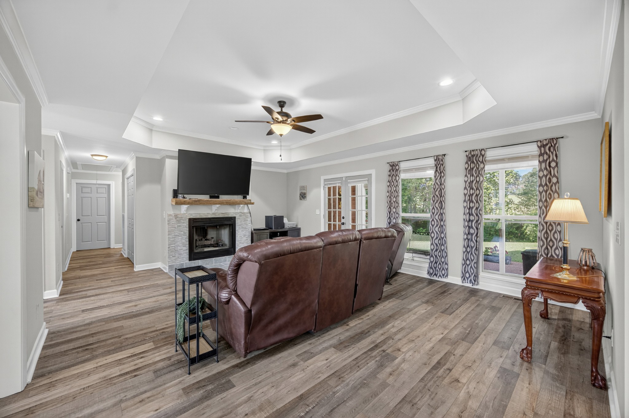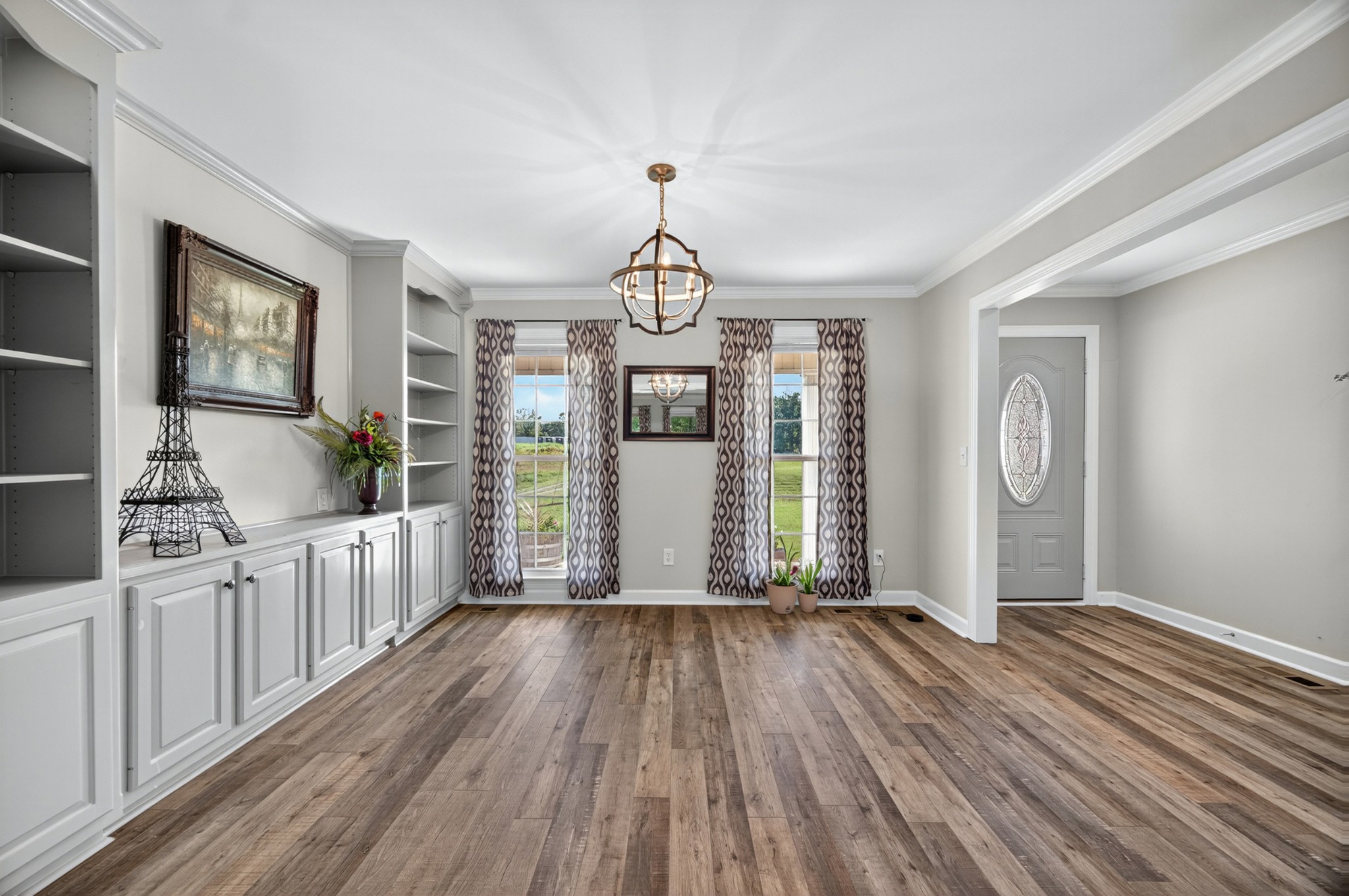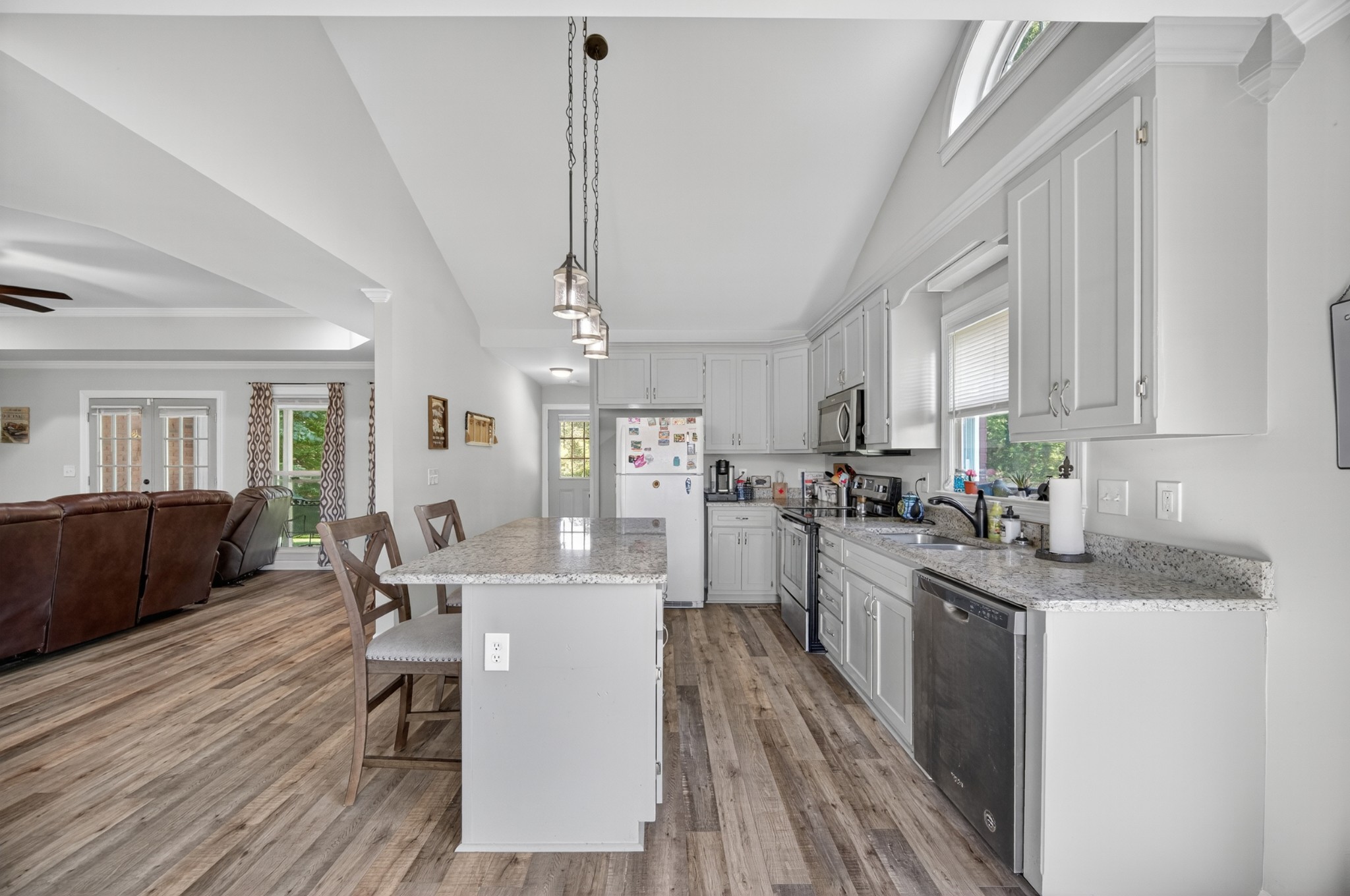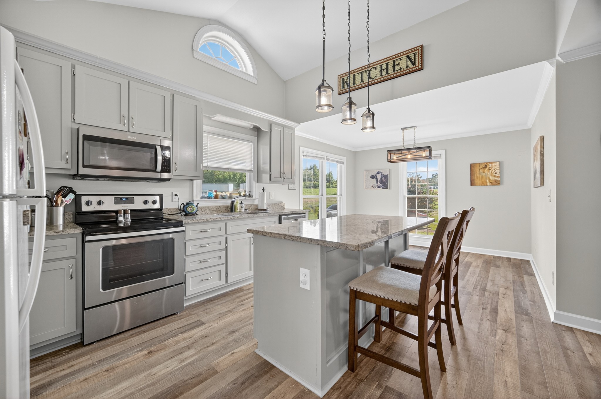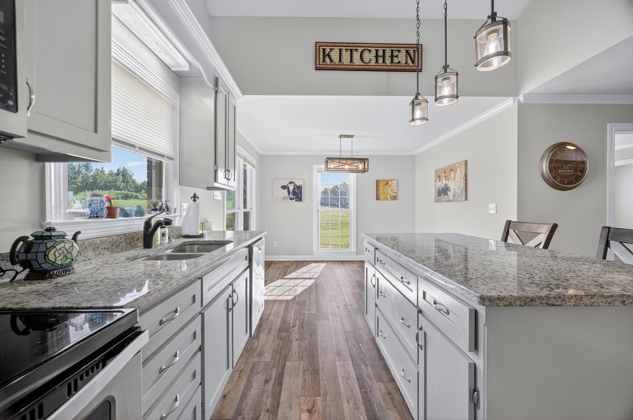 Welcome to your own mini estate just minutes from the Tennessee/Alabama line! This beautifully updated solid brick home on 2.63 acres offers the best of both worlds—highway visibility for future possibilities yet tucked back for peaceful privacy. A charming creek borders one side of the property, adding to its serene feel. Step inside to modern, neutral tones, granite counters, painted cabinets, stainless steel appliances. Enjoy the spacious formal dining room with built-ins, a casual dining nook, and a cozy family room with gas log fireplace. The owner’s suite features a glamour bath you’ll love to unwind in. Relax on your screened, covered back porch and take in the beautiful setting. Outside, there’s a huge 24x30 detached 2-car garage with an upstairs storage area—perfect for a workshop or future hobby space. With 280 feet of Huntsville Highway frontage and general purpose zoning, this property holds endless potential—whether you keep it as your private haven or explore its commercial opportunities. Just 30 minutes to Huntsville and convenient to Fayetteville, this is the ideal spot for those wanting a touch of country living with all the amenities close by.