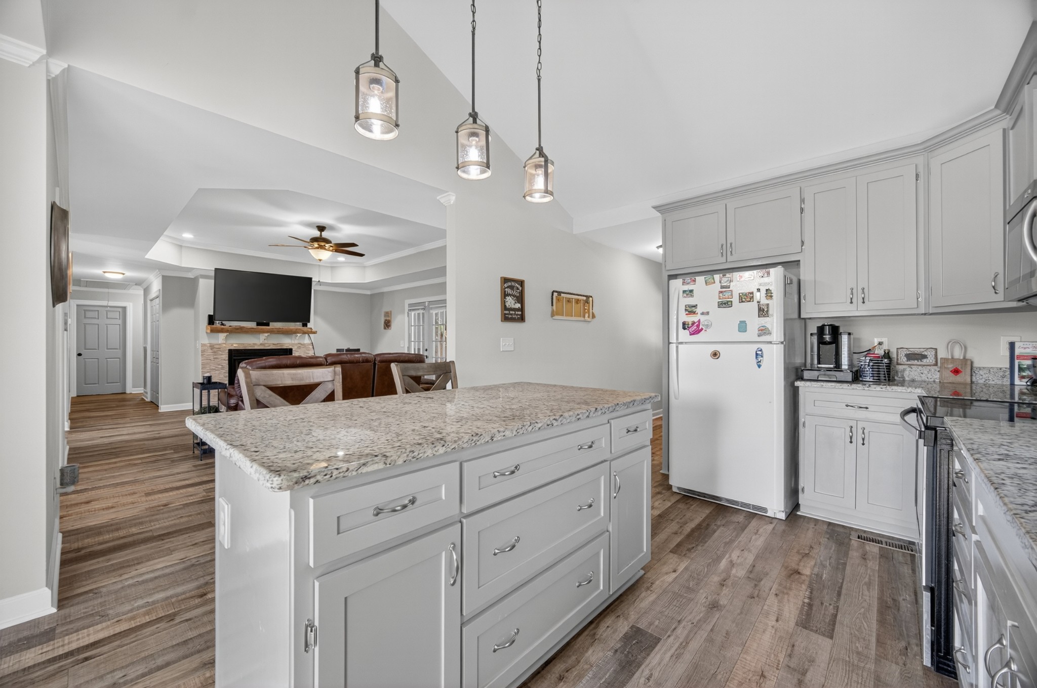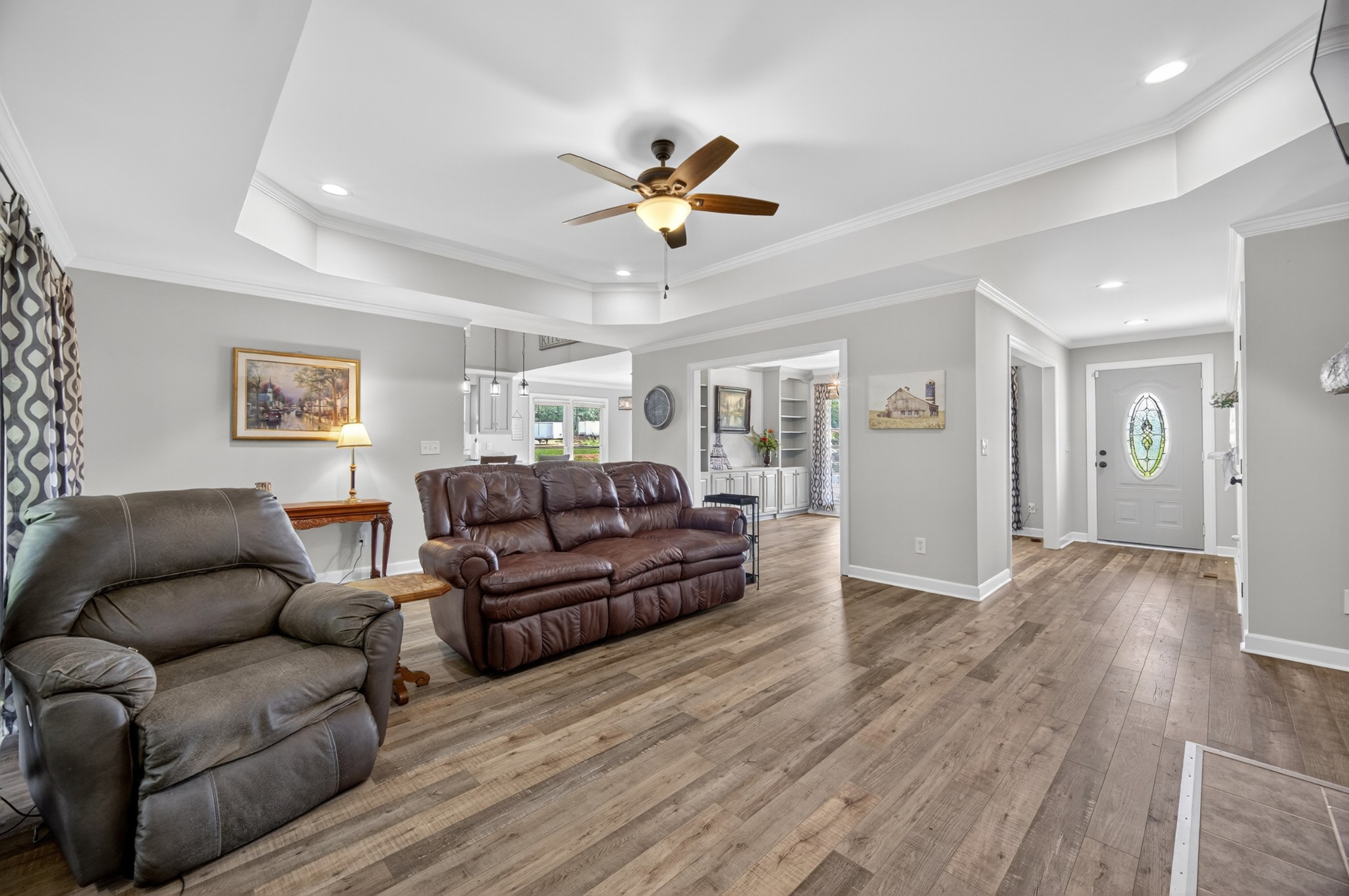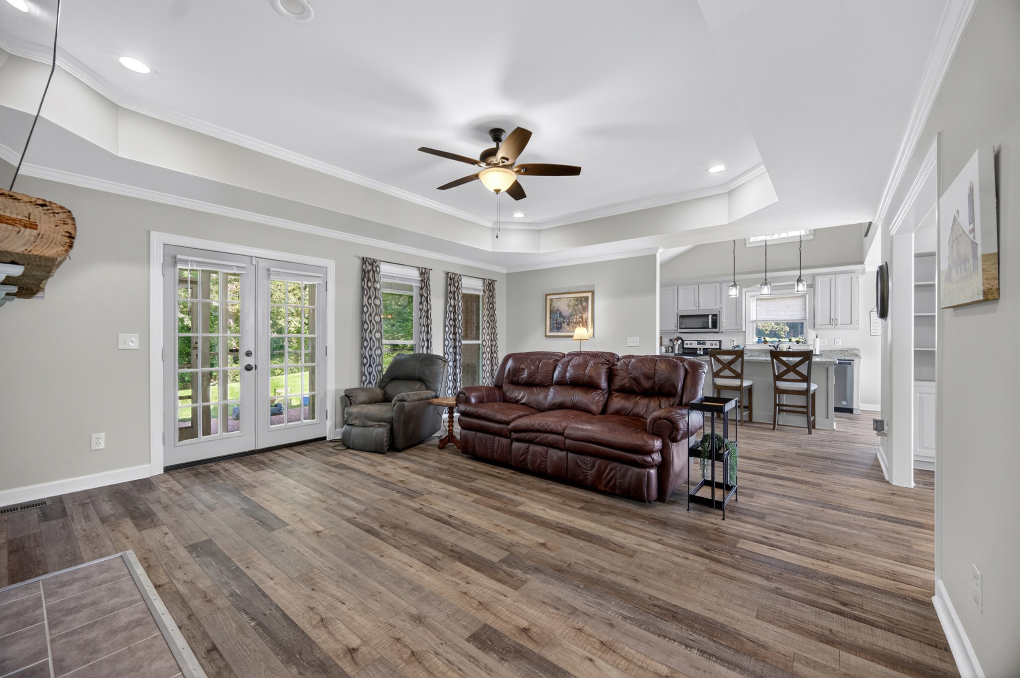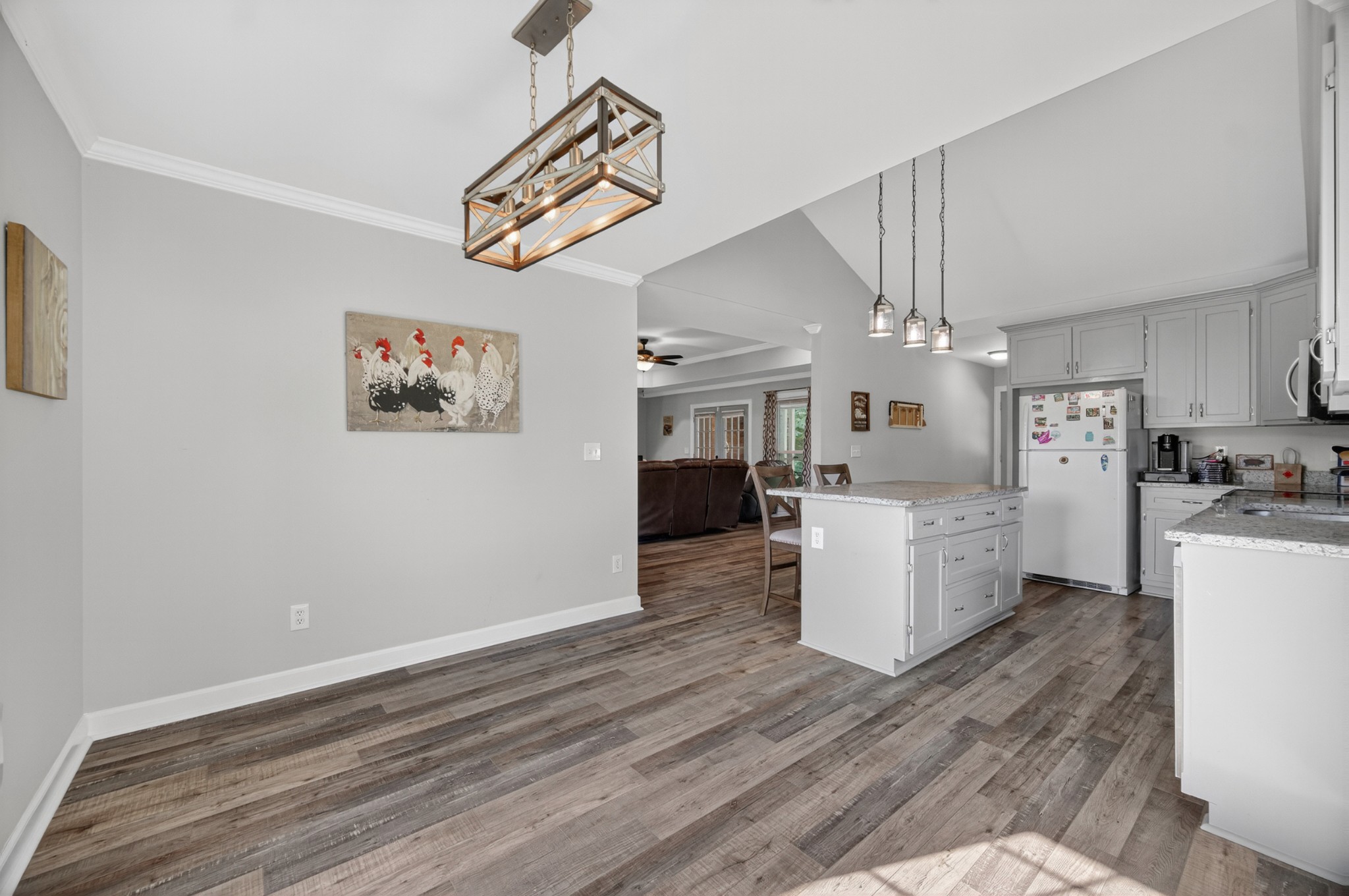 Welcome to your own mini estate just minutes from the Tennessee/Alabama line! This beautifully updated solid brick home on 2.63 acres offers the best of both worlds—highway visibility for future possibilities yet tucked back for peaceful privacy. A charming creek borders one side of the property, adding to its serene feel. Step inside to modern, neutral tones, granite counters, painted cabinets, stainless steel appliances. Enjoy the spacious formal dining room with built-ins, a casual dining nook, and a cozy family room with gas log fireplace. The owner’s suite features a glamour bath you’ll love to unwind in. Relax on your screened, covered back porch and take in the beautiful setting. Outside, there’s a huge 24x30 detached 2-car garage with an upstairs storage area—perfect for a workshop or future hobby space. With 280 feet of Huntsville Highway frontage and general purpose zoning, this property holds endless potential—whether you keep it as your private haven or explore its commercial opportunities. Just 30 minutes to Huntsville and convenient to Fayetteville, this is the ideal spot for those wanting a touch of country living with all the amenities close by.