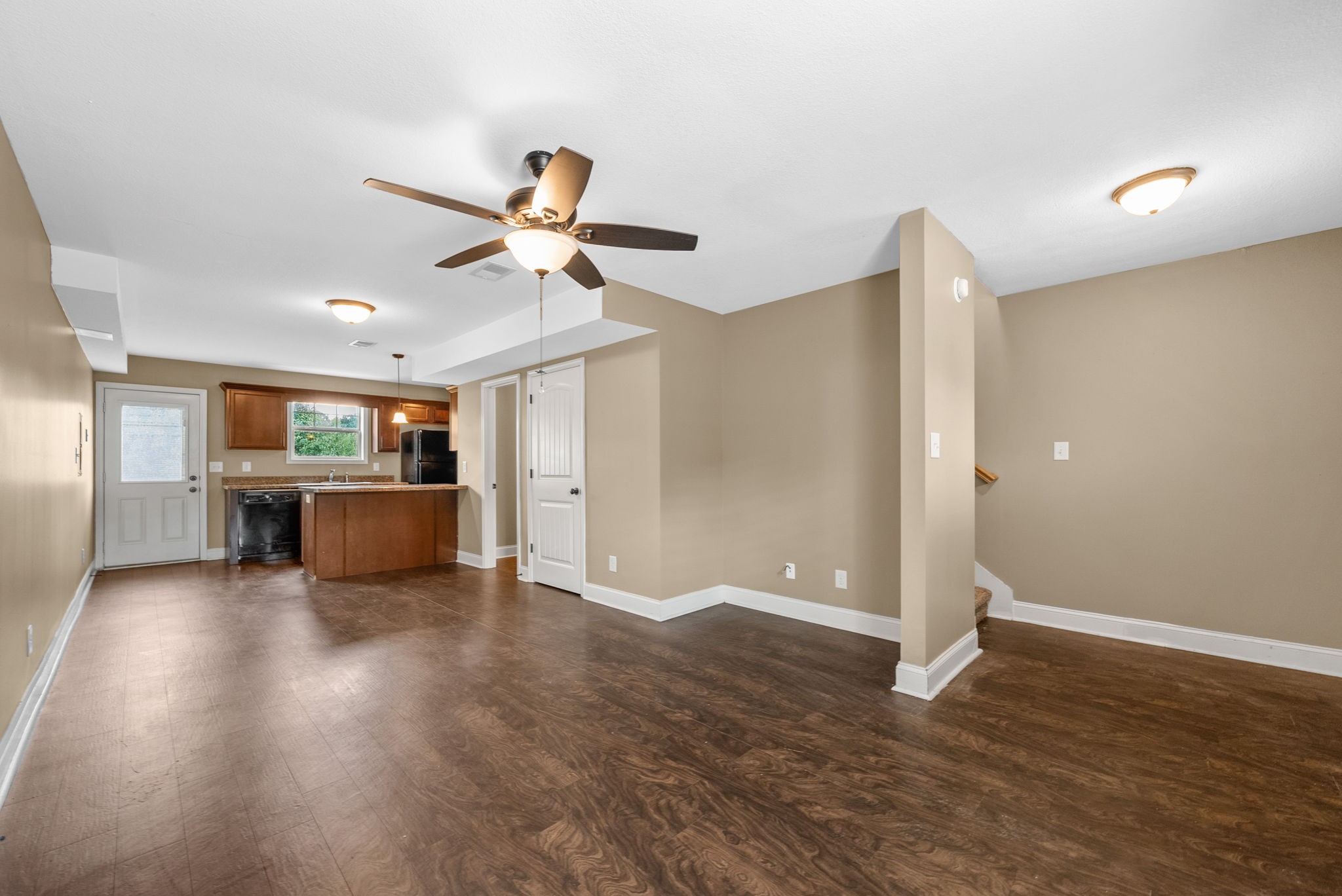 Beautiful two bedroom, two and a half bath town home in cul de sac neighborhood! Laminate floors, open floor plan, complete kitchen with pantry and breakfast bar, half bath on main floor, each bedroom has private bath. Washer/dryer and trash included!
