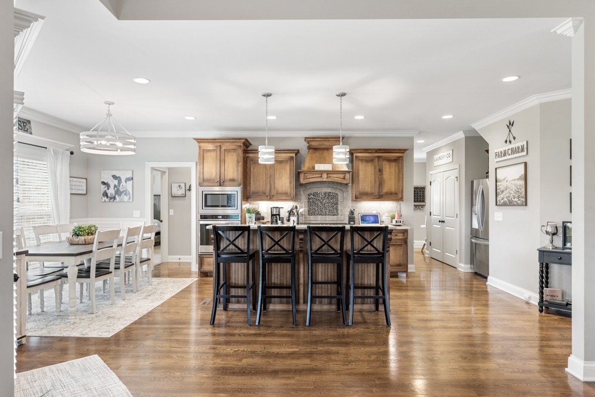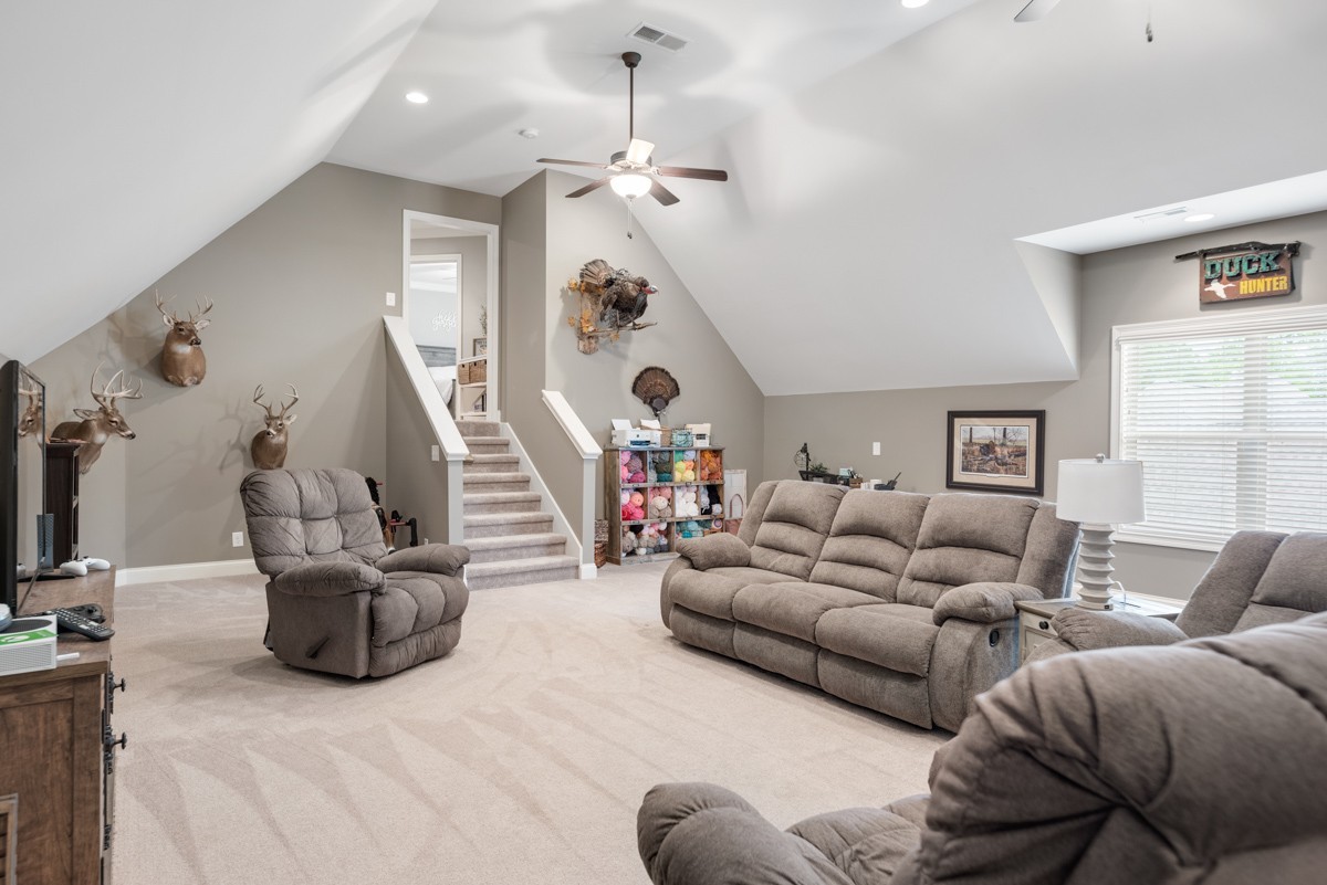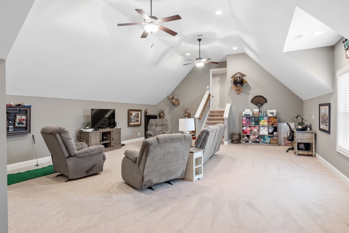 The beautifully designed kitchen is equipped with stainless steel appliances, a walk-in pantry, and a bright eat-in area—perfect for casual meals or morning coffee. Upstairs, a spacious bonus room offers endless possibilities for recreation, work, or relaxation.