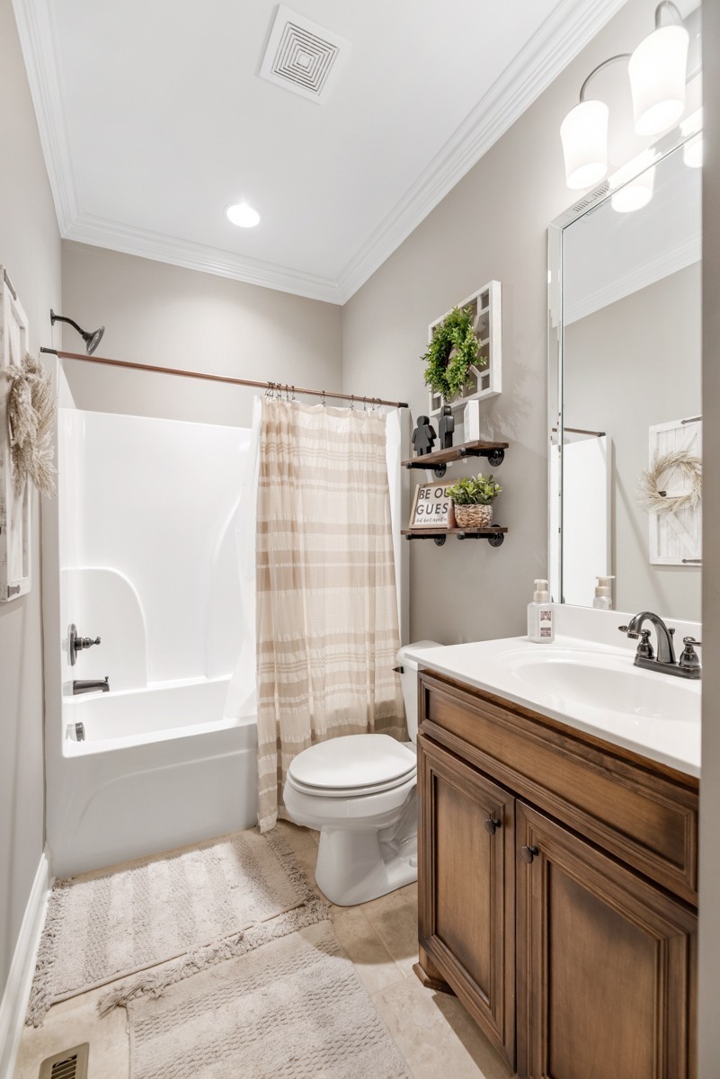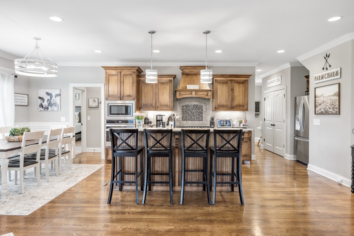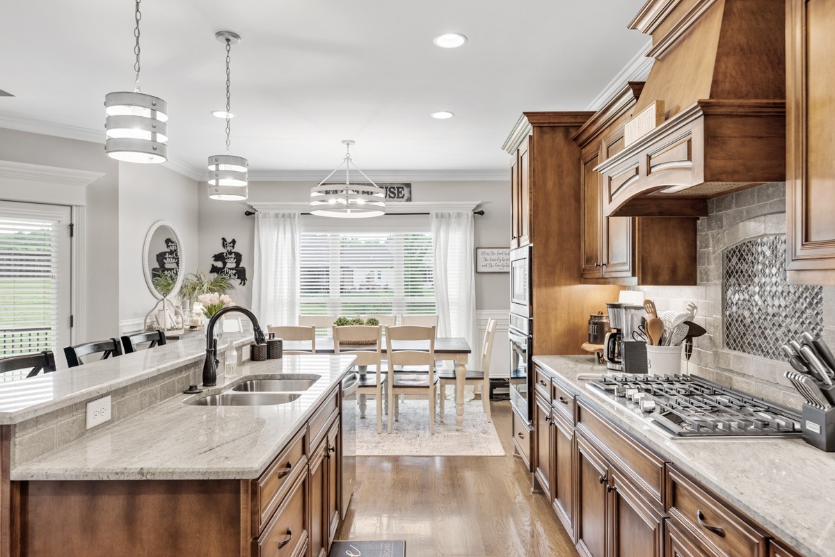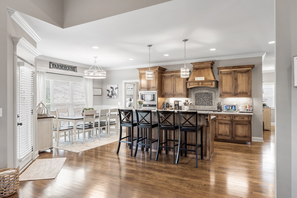 The beautifully designed kitchen is equipped with stainless steel appliances, a walk-in pantry, and a bright eat-in area—perfect for casual meals or morning coffee. Upstairs, a spacious bonus room offers endless possibilities for recreation, work, or relaxation.