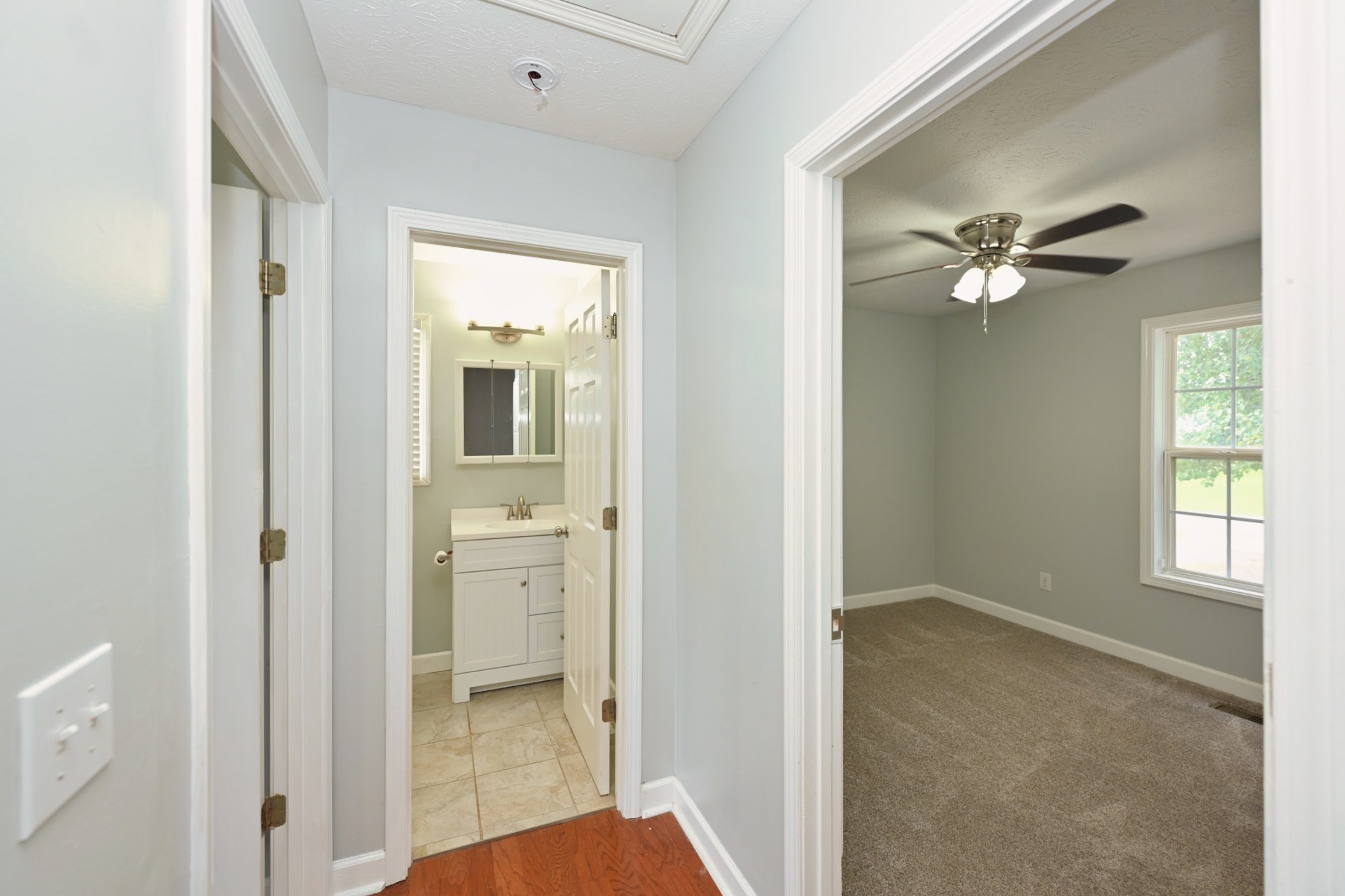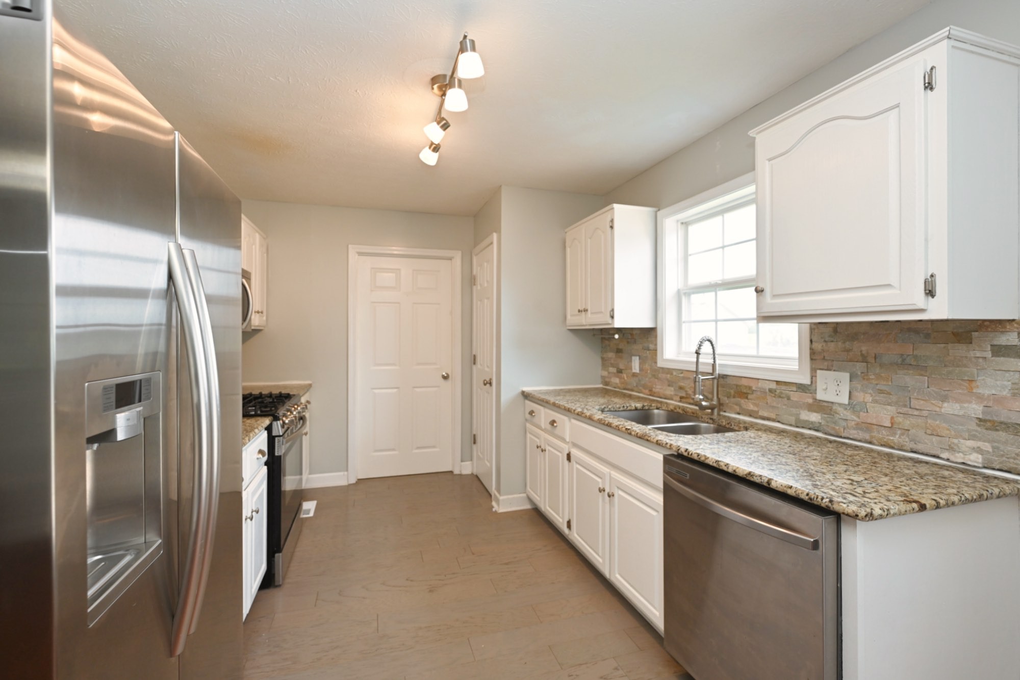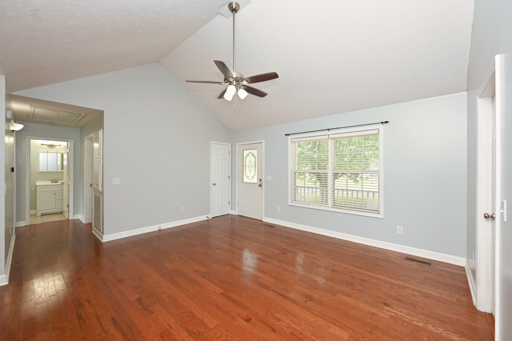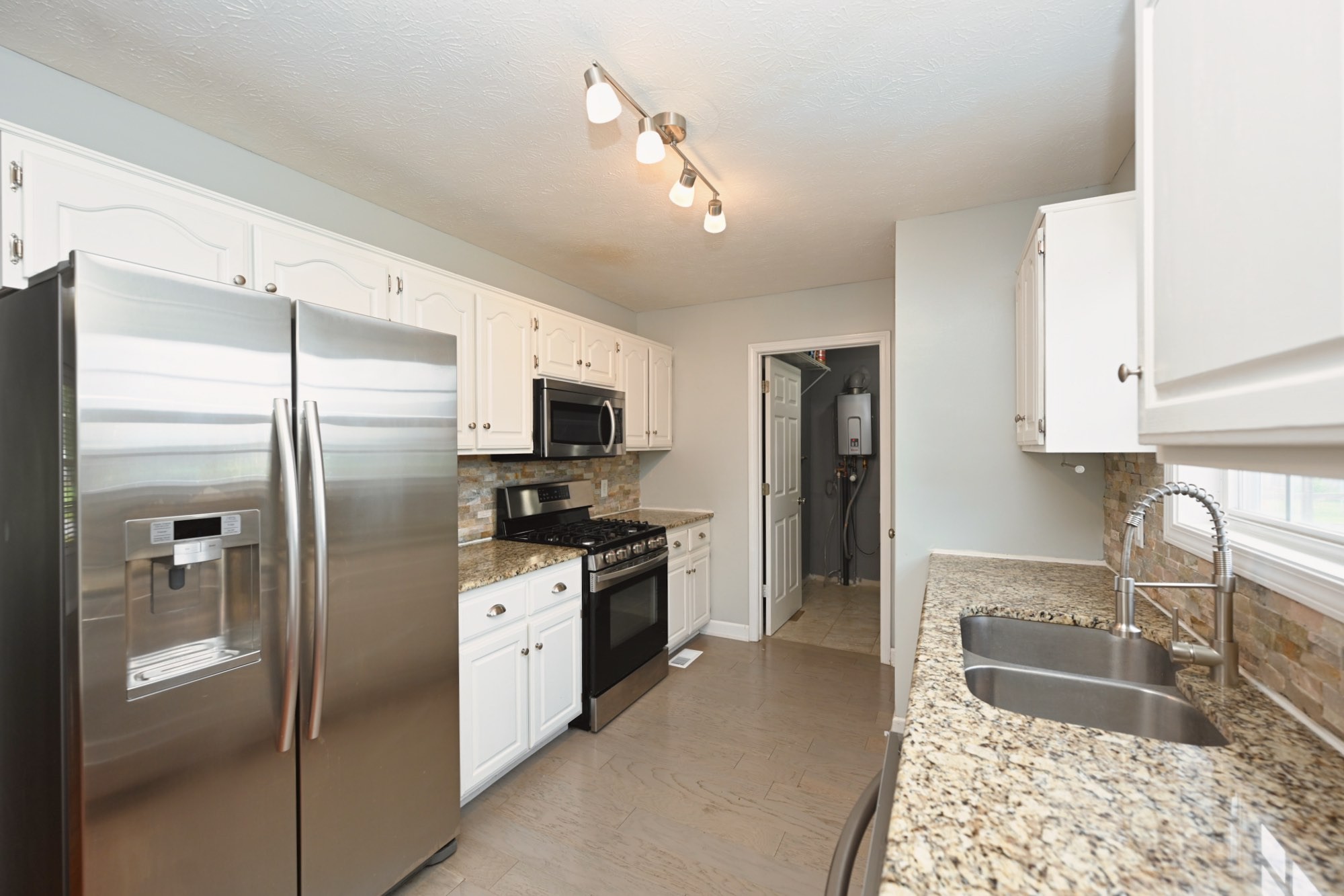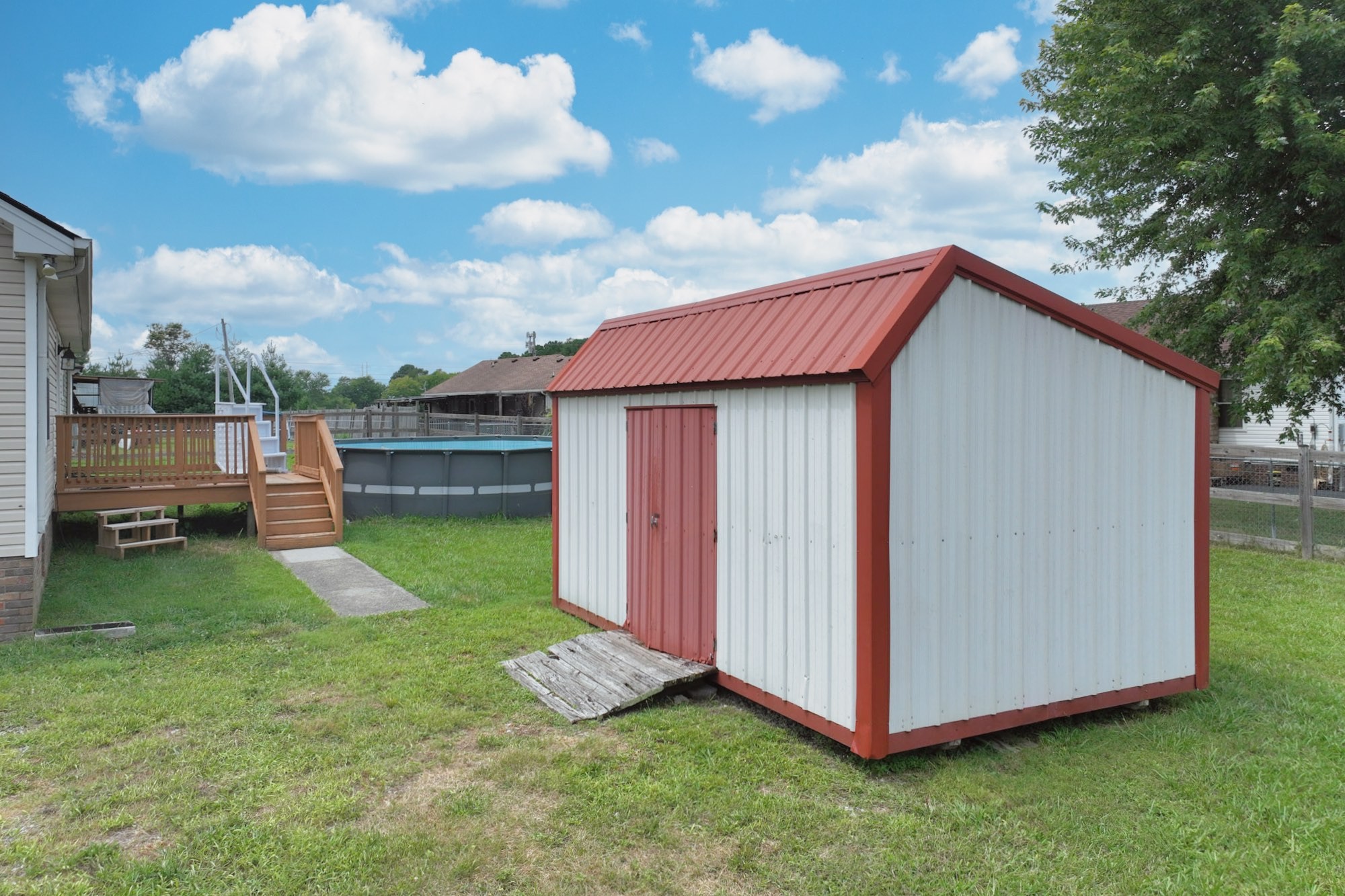 Lovely home with covered front porch and fenced back yard! Home offers an split floor plan and a large primary suite with vaulted ceilings. Heated tile floor in owners bath. New roof and gas tankless water heater. Storage building will remain.