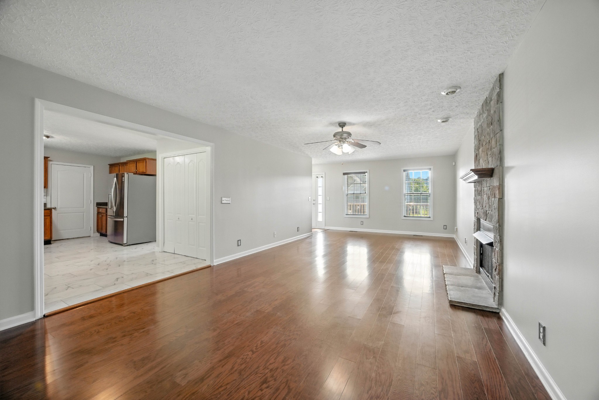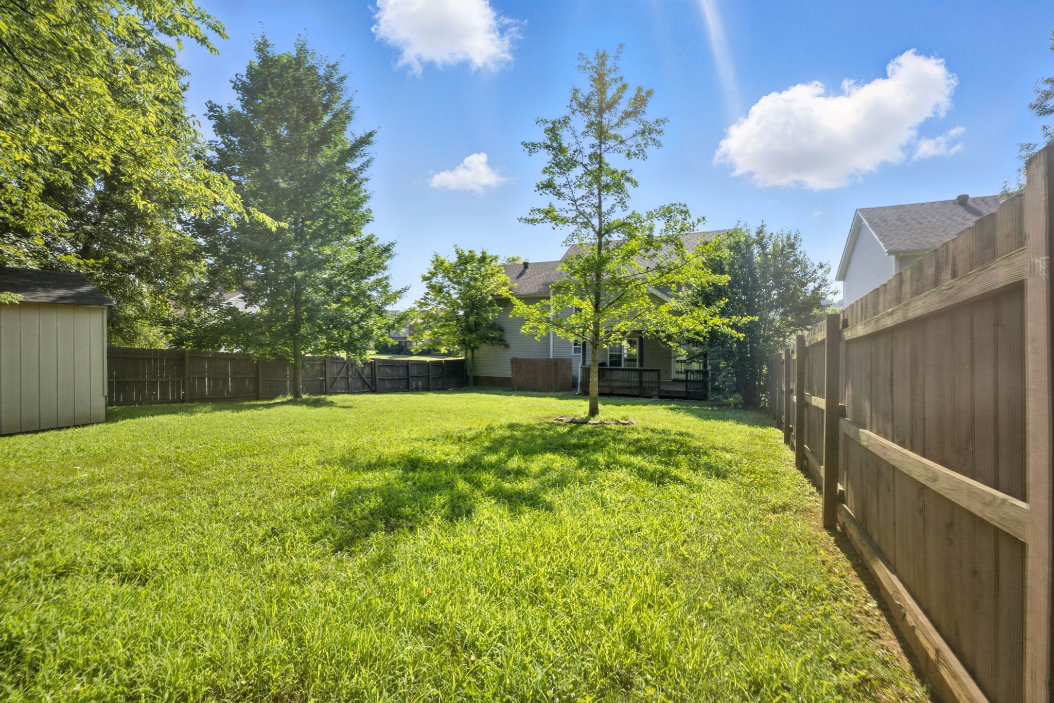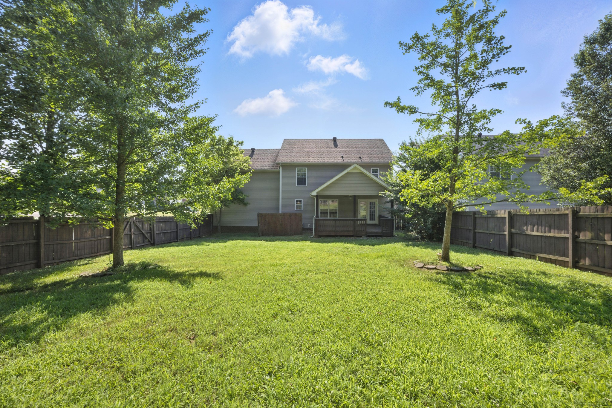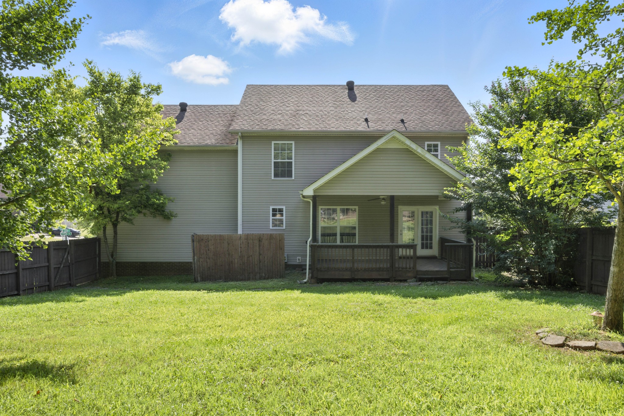 SITUATED ON A LEVEL FENCED CORNER LOT - WITH NO NEIGHBORS IN THE BACK - IS THIS 2 STORY HOME W/ NO NEIGHBORS IN THE BACK ! FRESHLY PAINTED THROUGHOUT AND NEW FLOORING ON THE MAIN LEVEL; LARGE COUNTRY KITCHEN W/ ALL APPLIANCES; FORMAL DINING ROOM & HUGE GREATROOM W/ FIREPLACE; BONUS ROOM ABOVE GARAGE HAS ITS OWN BATH; OWNERS RETREAT W/ TRAY CEILING & BATH W/ SEPARATE TUB & SHOWER; COVERED DECK - AND LOTS OF PRIVACY IN THE BACK !