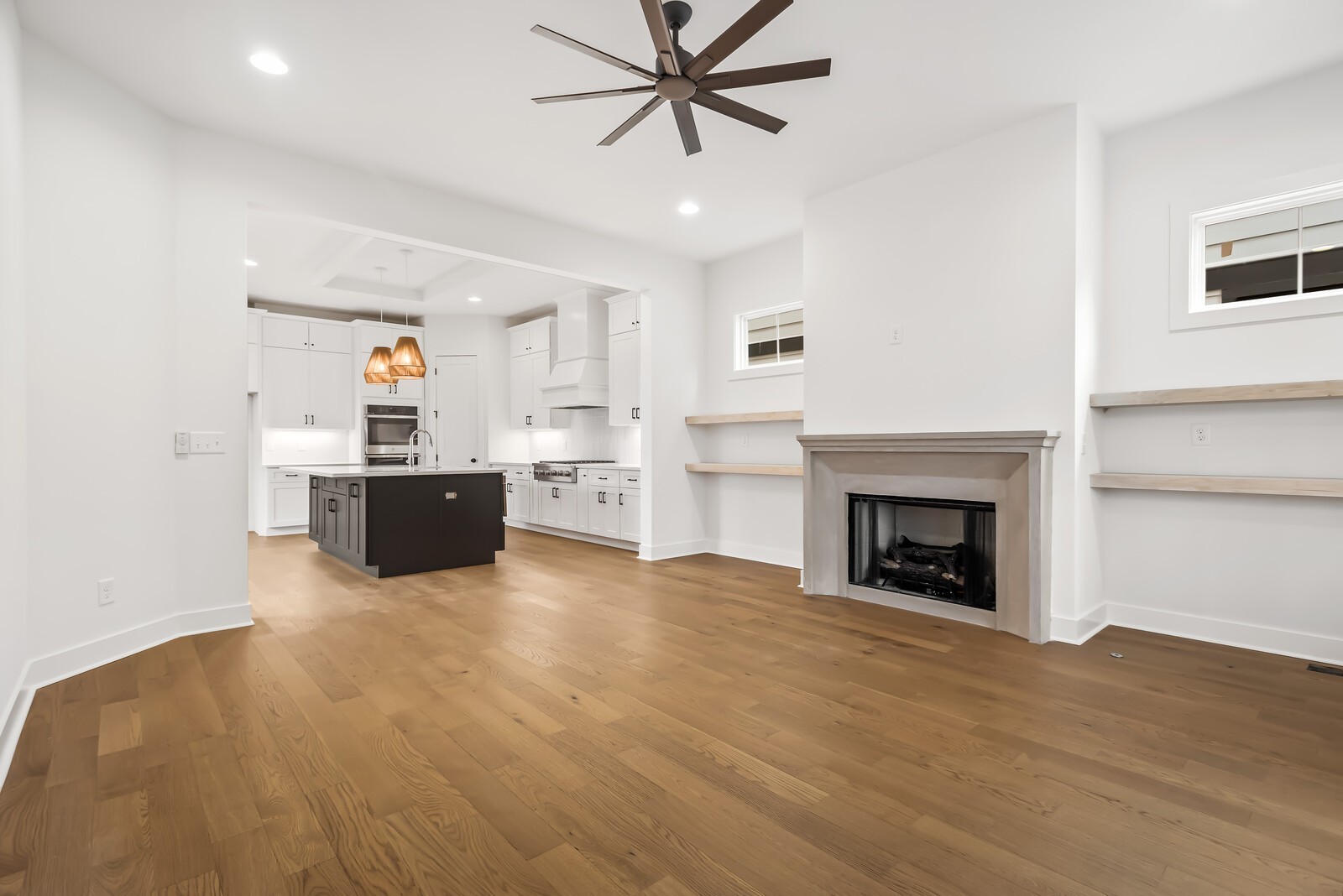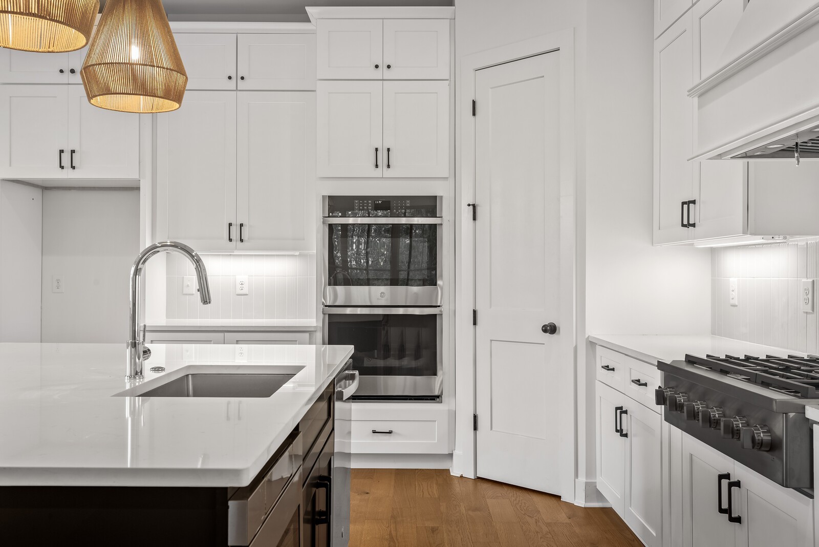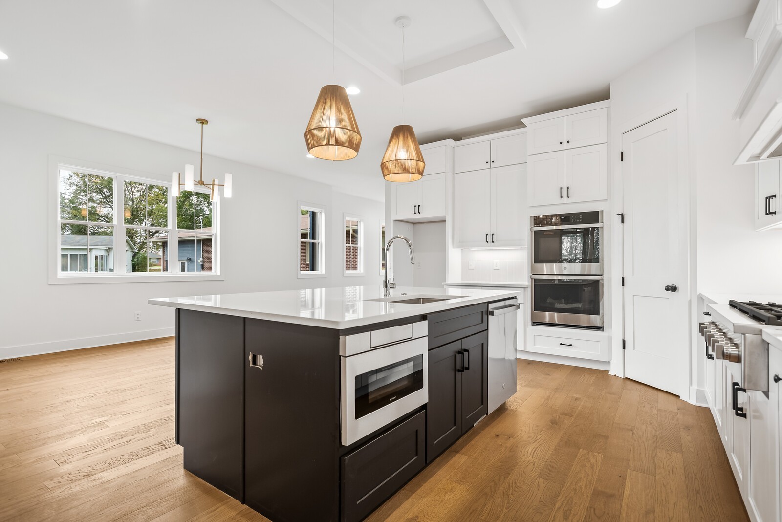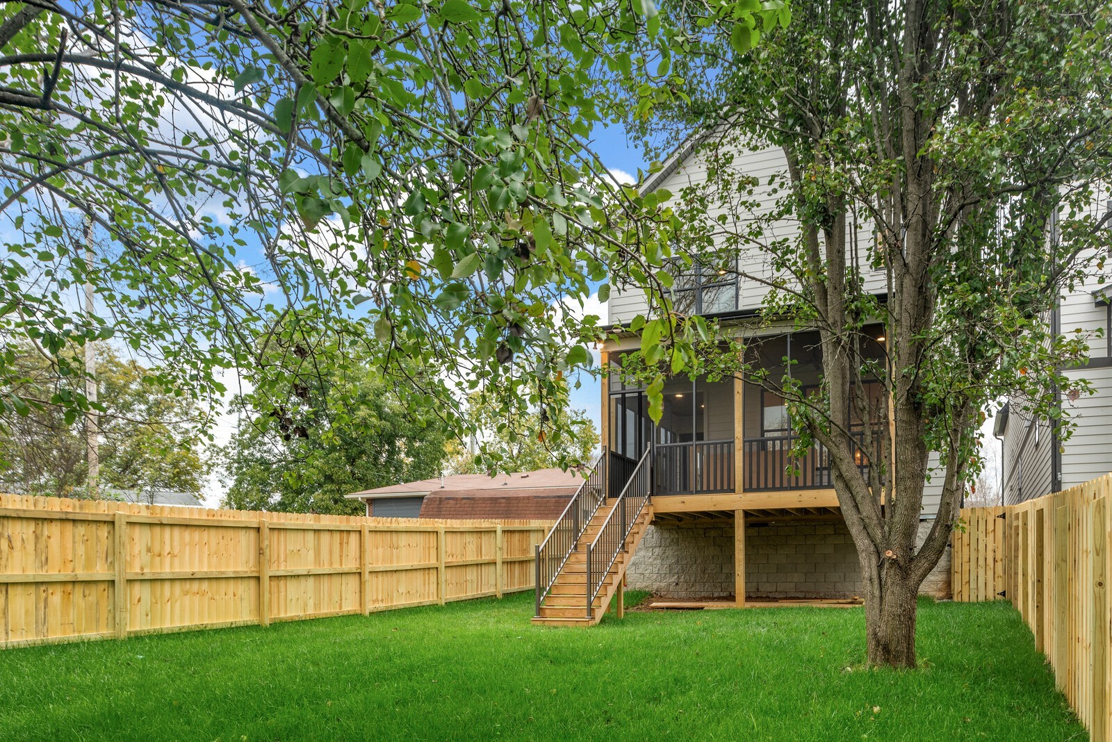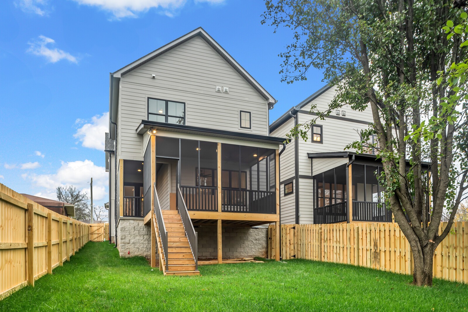 This gorgeous 4 bedroom, 4 bathroom home with 2 half baths offers a spacious open floor plan and high end finishes and appliances. The first floor features a versatile bedroom and full bathroom perfect for guests who prefer main level living. The heart of the home is the chef inspired kitchen with double oven, and gas cooktop. The kitchen seamlessly flows into the living room where the focal point is a cast stone fireplace. From there head out to the fully screened and covered deck to be enjoyed year round. Need an office? This home has that too! Brand new washer and dryer included, gas tankless water heater, smart irrigation system for the new sod and landscape beds.