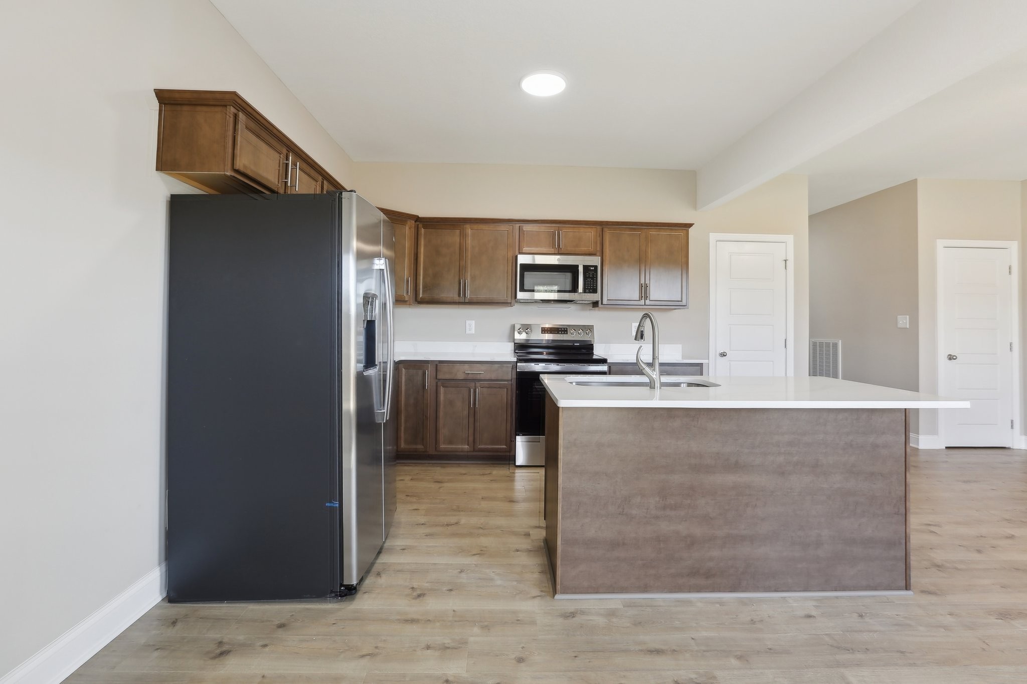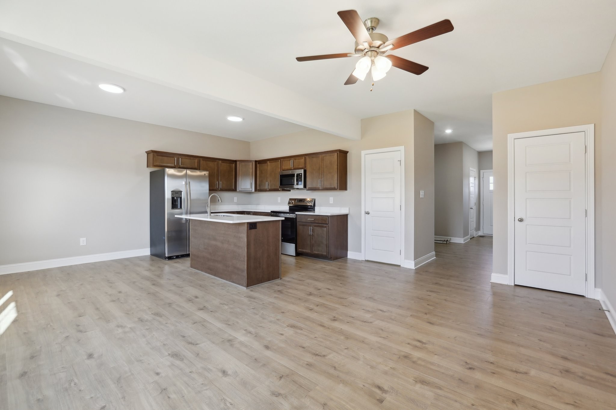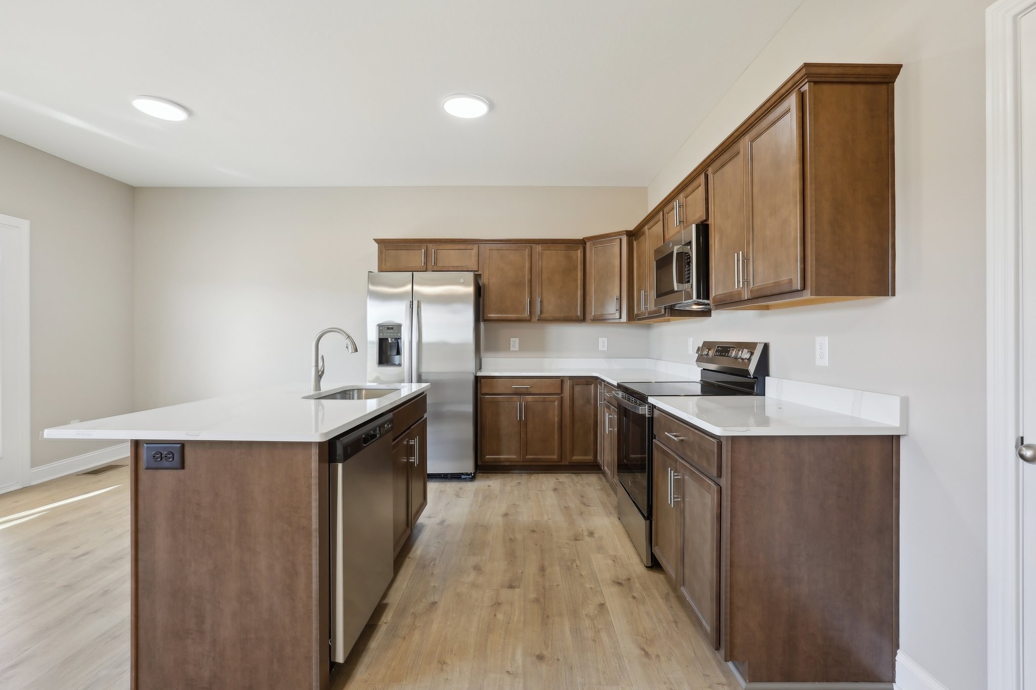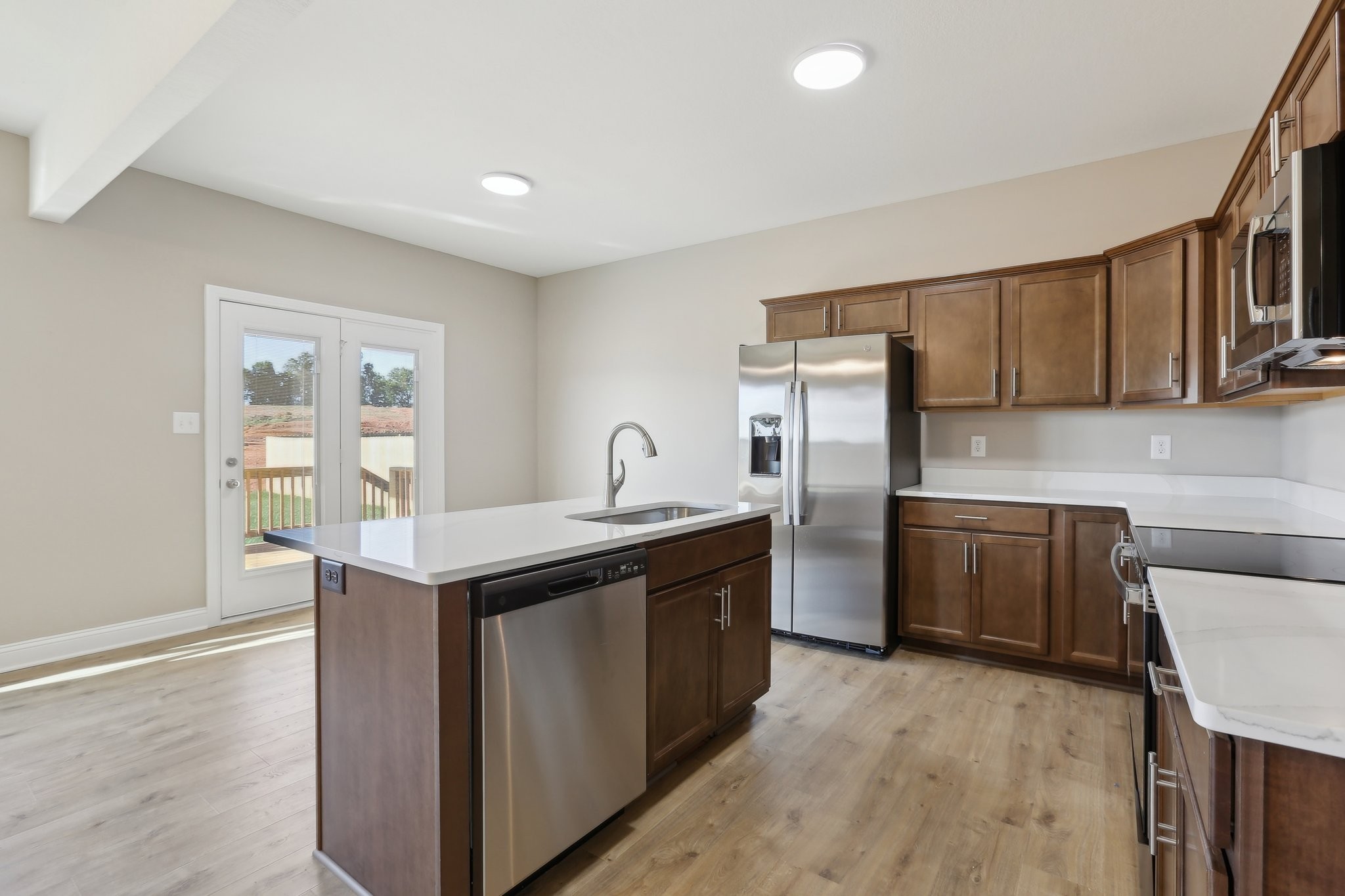 WOW! Builder is offering a generous $20,000 credit! All New Floor Plan - The Rhylee! Welcome to 769 Carrillo Dr, a charming and contemporary new construction home nestled in the heart of Clarksville, TN. This ready to move in residence offers a perfect blend of style and comfort, spanning 2 stories and featuring 3 spacious bedrooms and 2.5 bathrooms across 1,531 square feet of thoughtfully designed living space. Step inside to discover high ceilings and open floor plan downstairs with a seamless flow between bedrooms upstairs, accentuated by a mix of carpet and luxury vinyl plank flooring that adds warmth and character. The open-concept living area is ideal for both relaxation and entertaining, with central AC and heating ensuring year-round comfort. The kitchen is a chef's delight, equipped with Energy Star stainless steel appliances, quartz countertops, a convenient pantry, island and a dishwasher for easy clean-up. Enjoy the added convenience of an electric dryer hookup and washer hookup in the laundry room.The primary suite is a true retreat, boasting a walk-in closet and a private bathroom. Additional features include closets for extra storage, a concrete driveway, and an attached garage providing ample parking.The private outdoor space with covered back deck invites you to unwind and enjoy the serene surroundings. Complete with a fully sodded yard adding a touch of greenery to the property. Sidewalks throughout the neighborhood and streetlights for added security and safety. Conveniently located off Needmore Rd, this home is just a short distance from shopping, schools, Downtown Clarksville, Austin Peay University and Fort Campbell KY. Don't miss out on the opportunity to make this your dream home in Cardinal Creek! With high speed internet available, this home offers modern conveniences that cater to your lifestyle. Experience the perfect blend of elegance and casual living at 710 Carrillo Dr, where every detail is designed to enhance your everyday life.