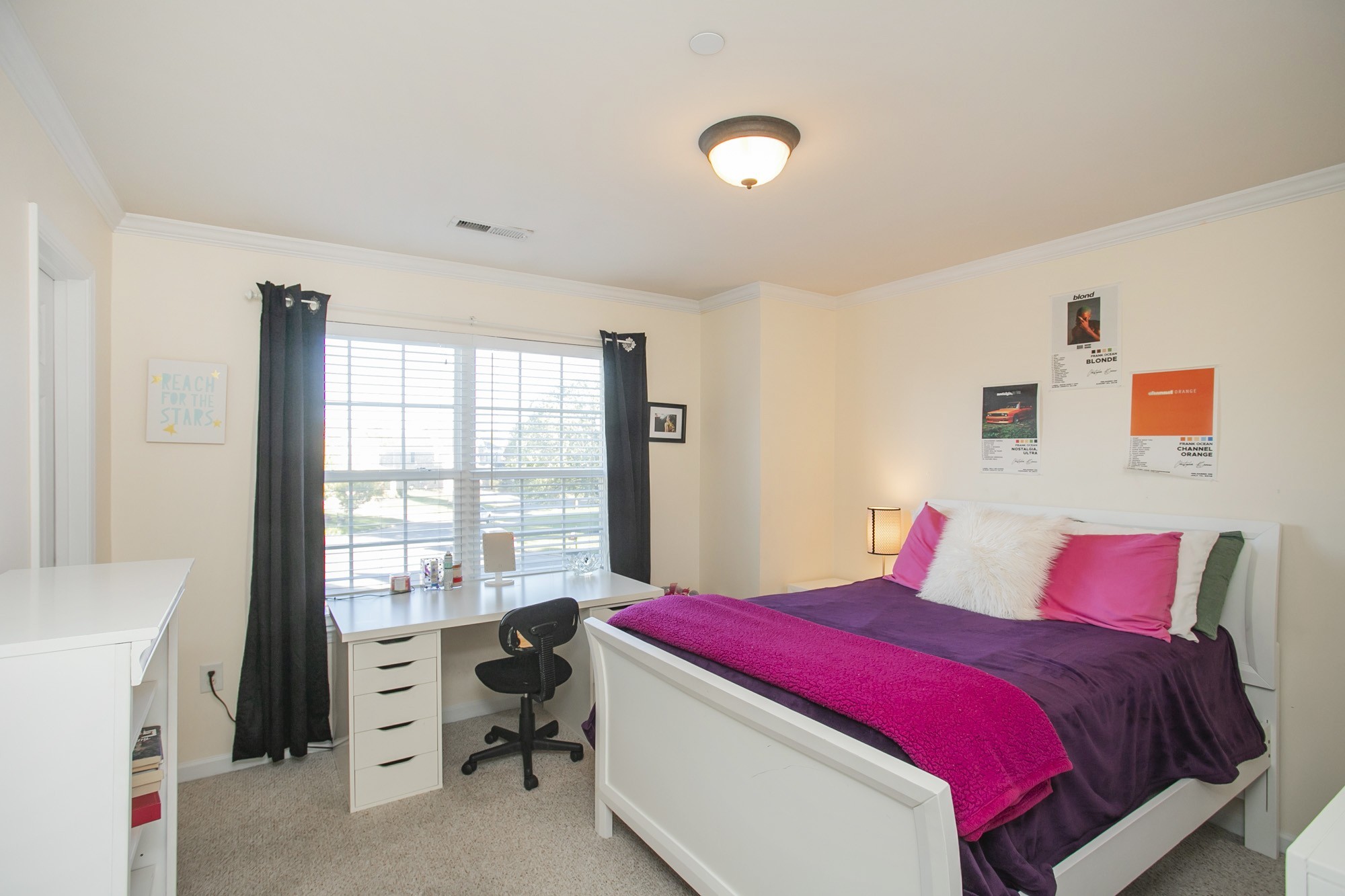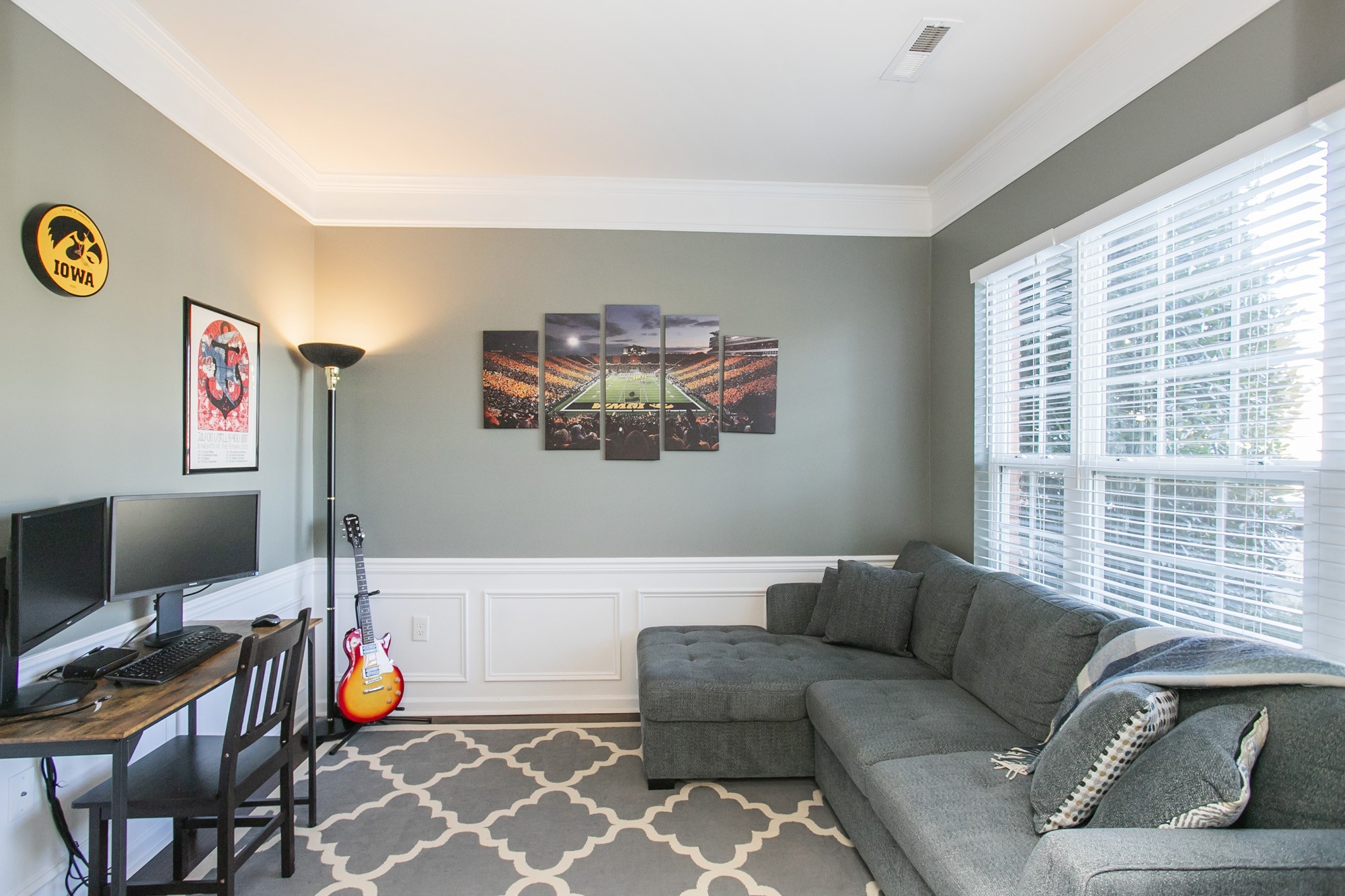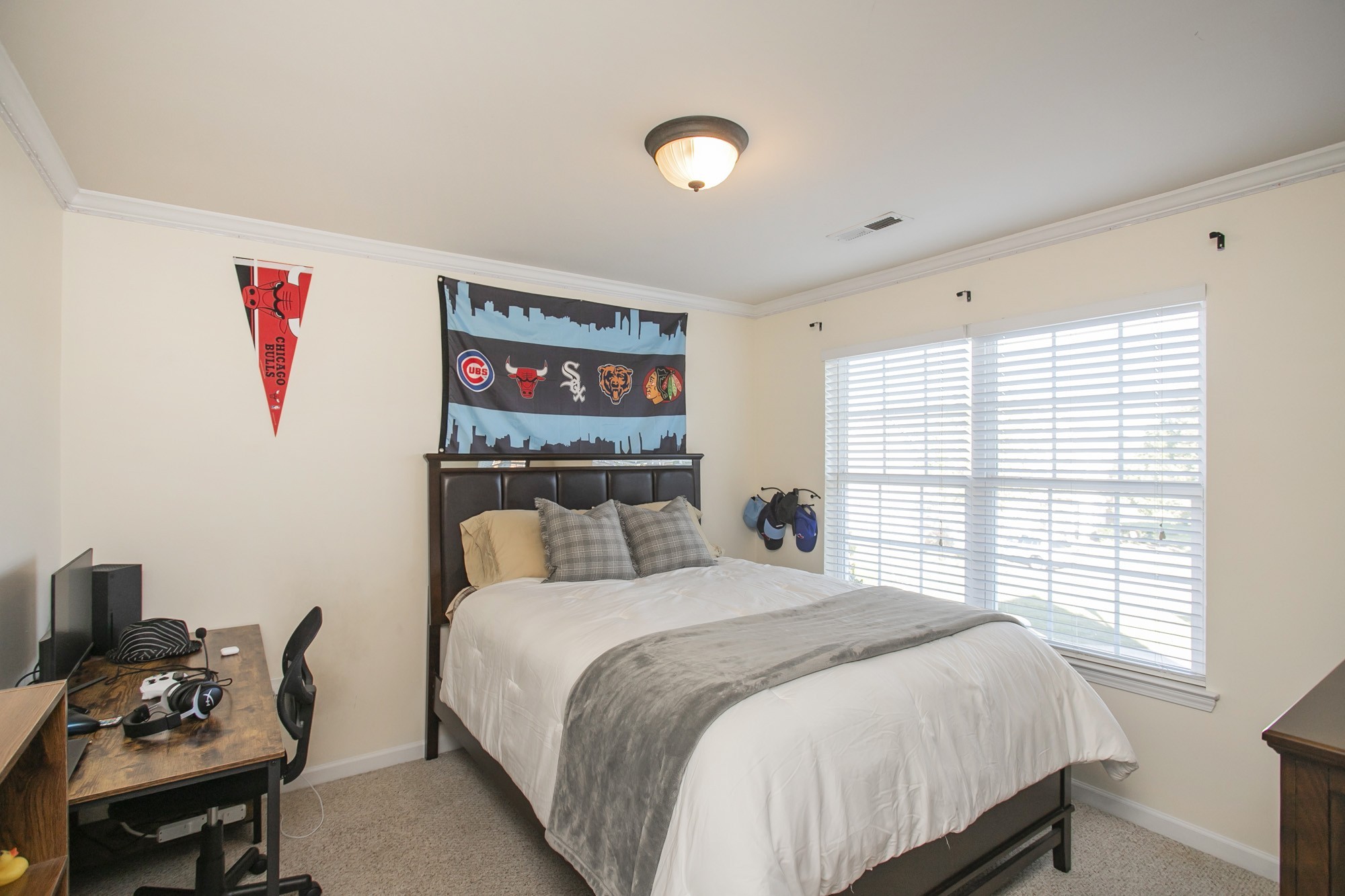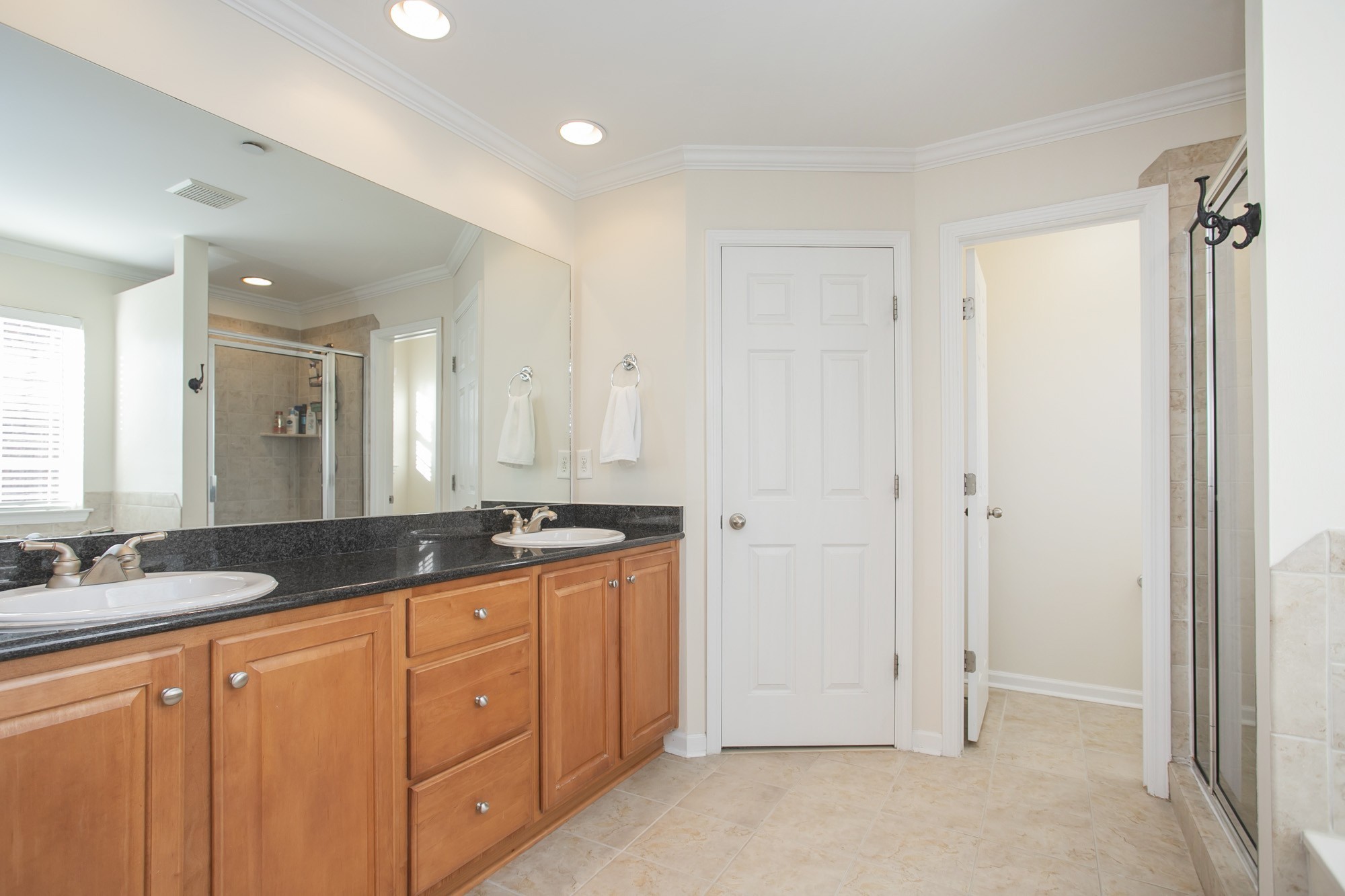 The spacious main-level office with french doors is ideal for working from home, while the refreshed main floor and hallway flooring and fresh paint throughout give the home a crisp feel. All bedrooms are conveniently located upstairs, each with generous closet space and thoughtful design.