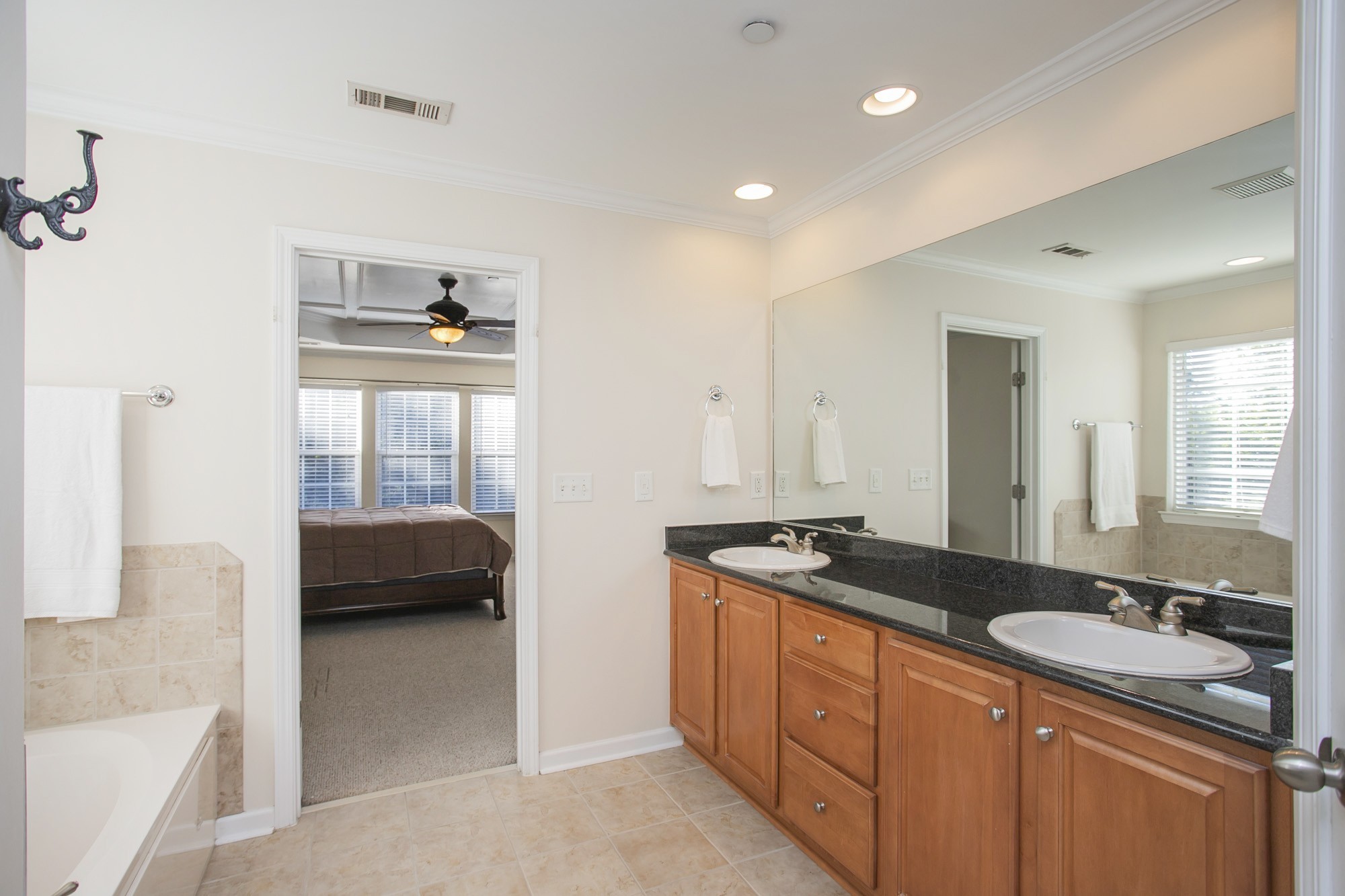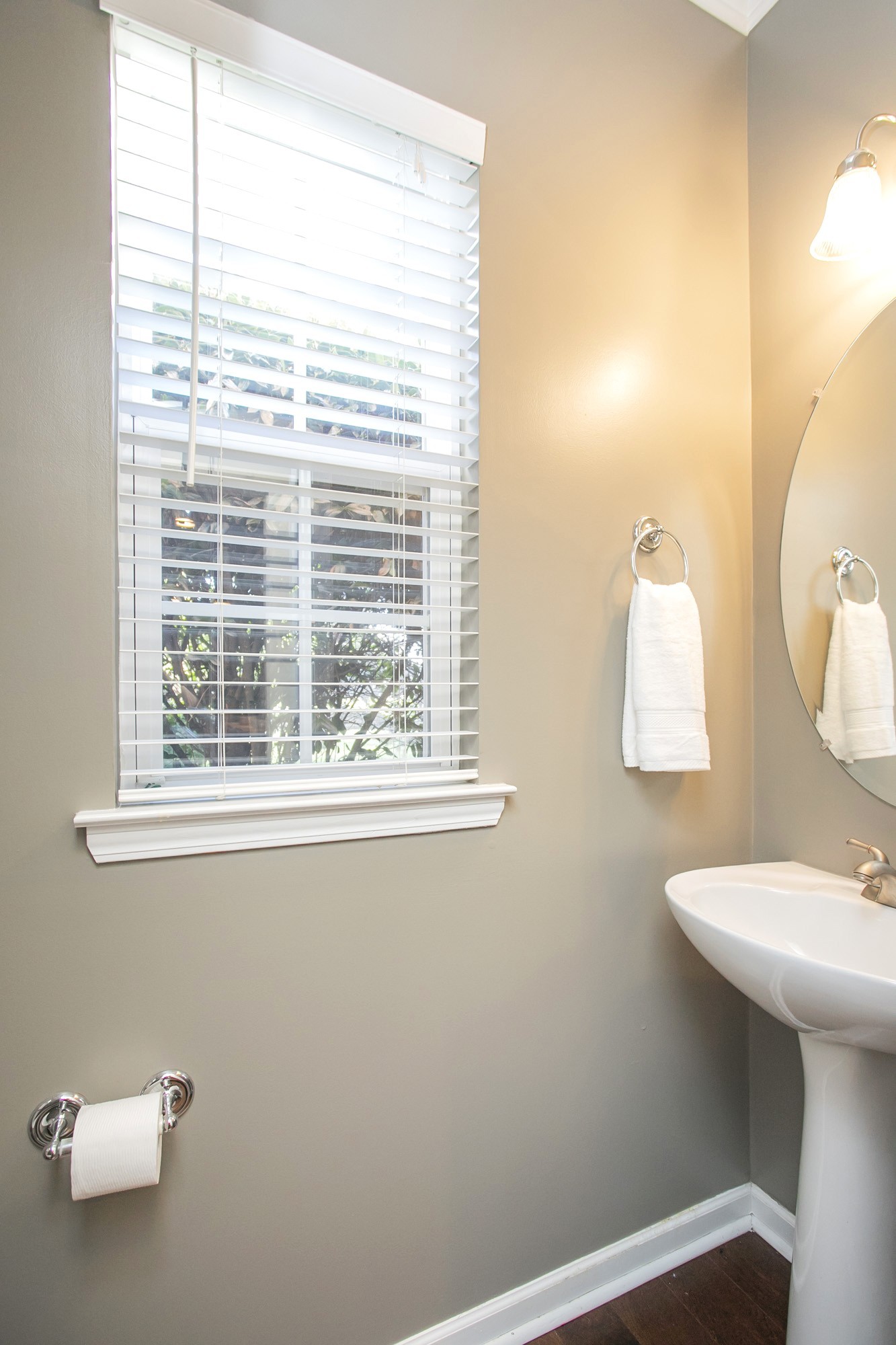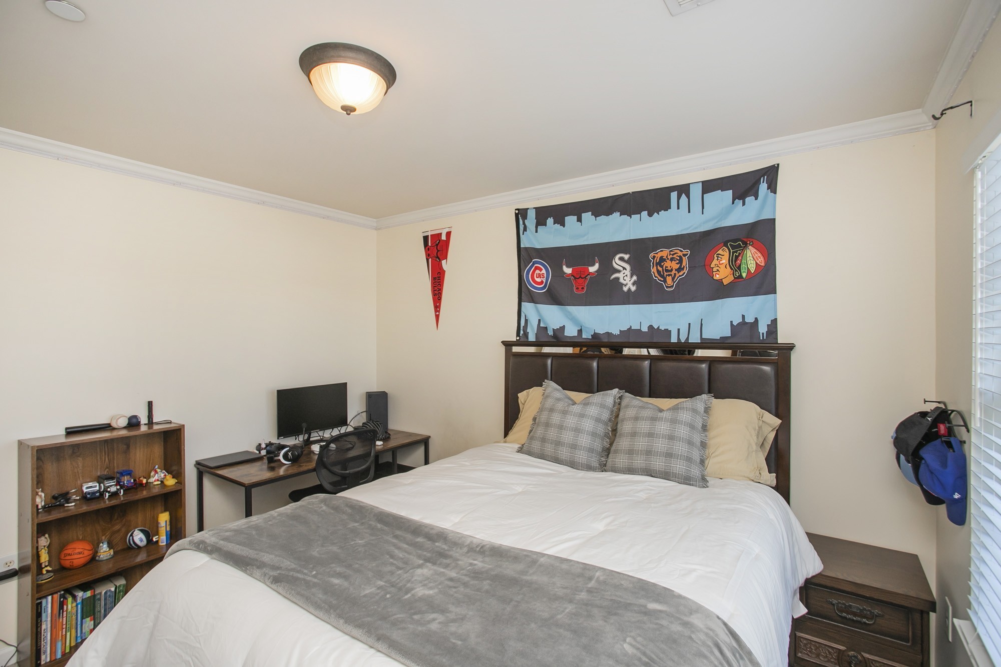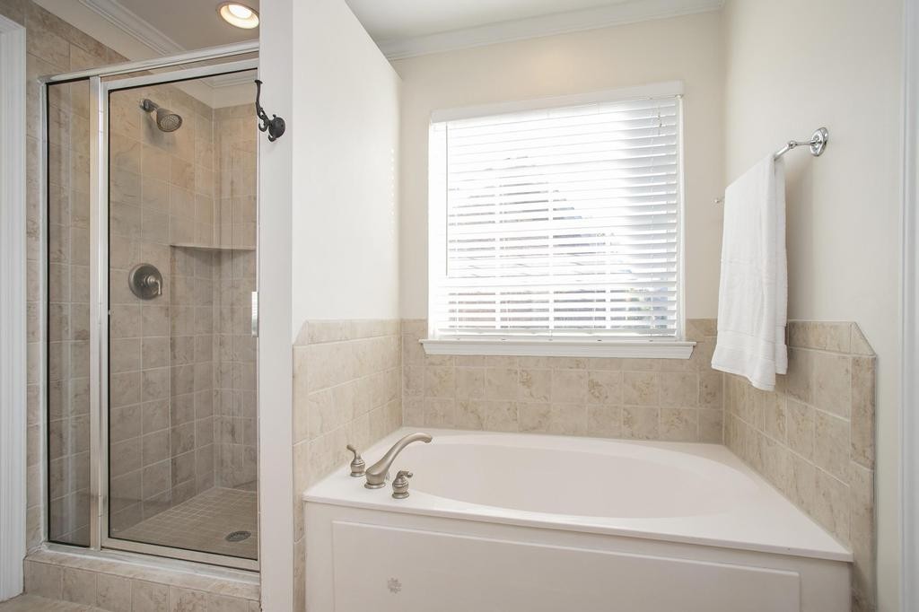 The spacious main-level office with french doors is ideal for working from home, while the refreshed main floor and hallway flooring and fresh paint throughout give the home a crisp feel. All bedrooms are conveniently located upstairs, each with generous closet space and thoughtful design.