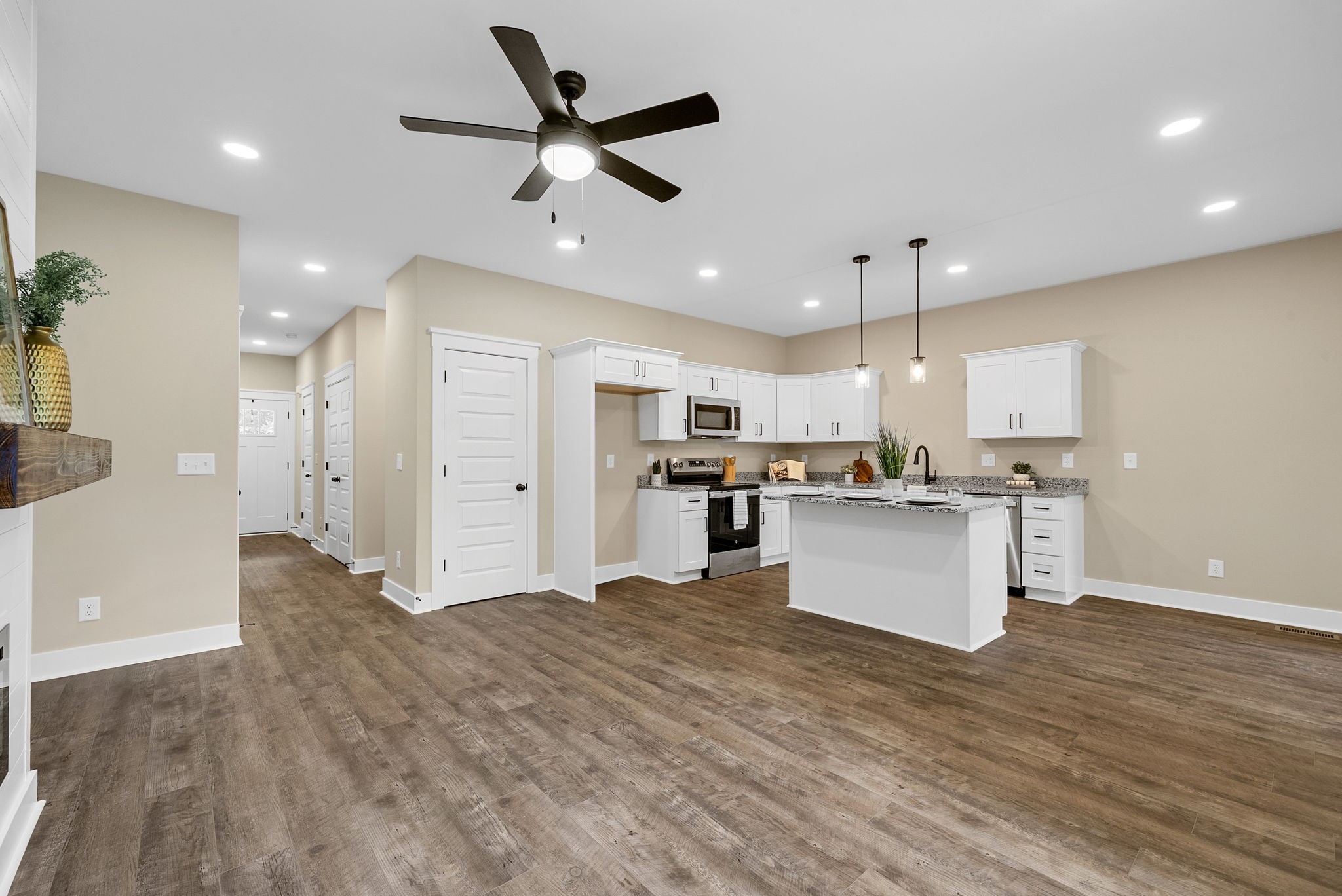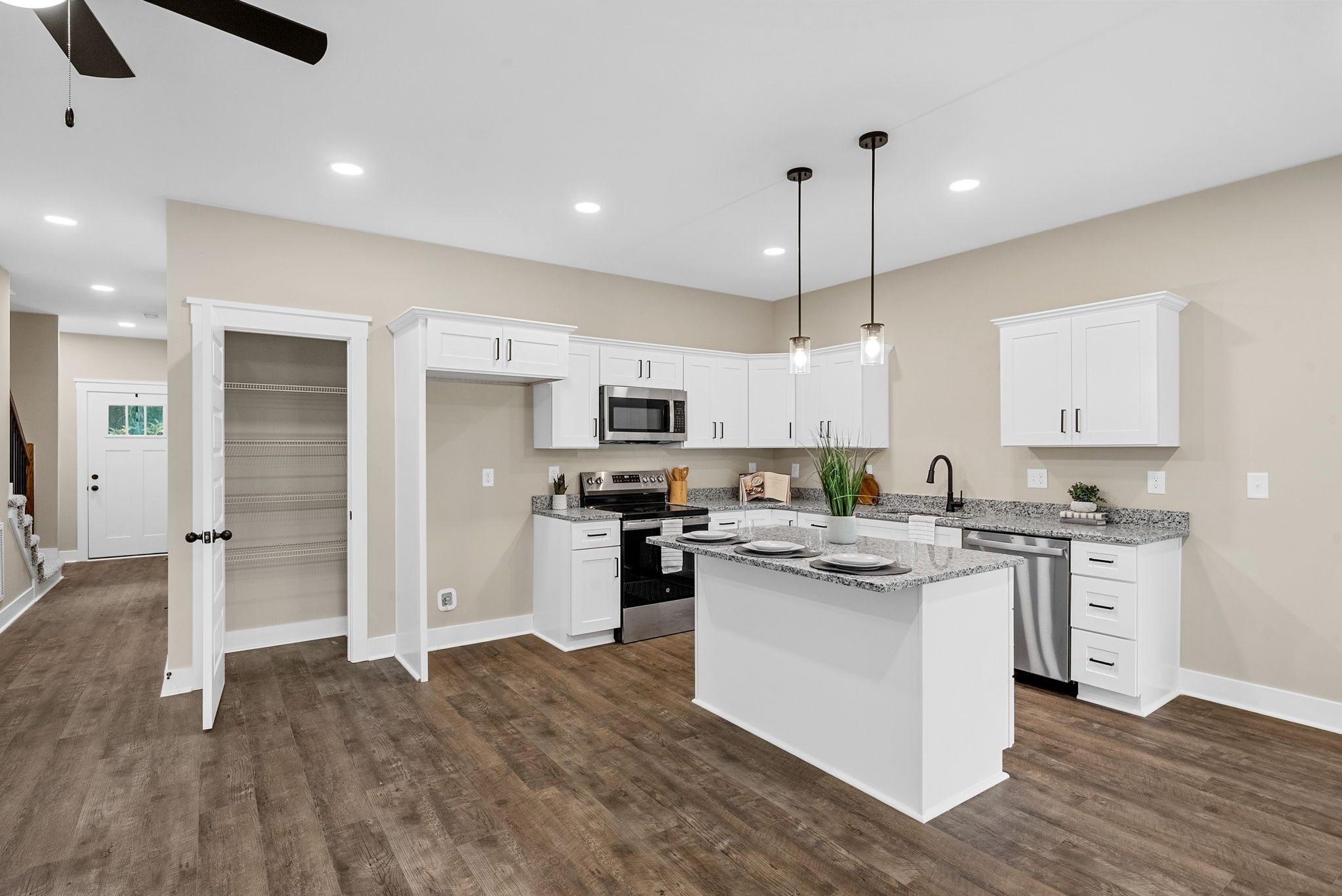 - FeaturesCeiling Fan(s), Extra Closets, High Ceilings, Open Floorplan, Pantry, Walk-In Closet(s), Kitchen Island