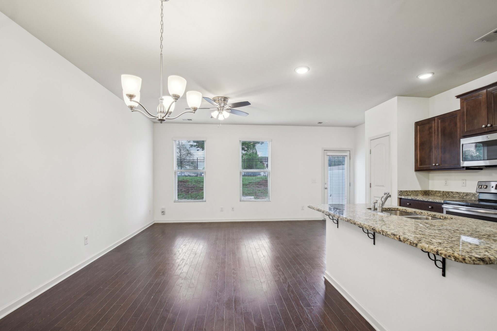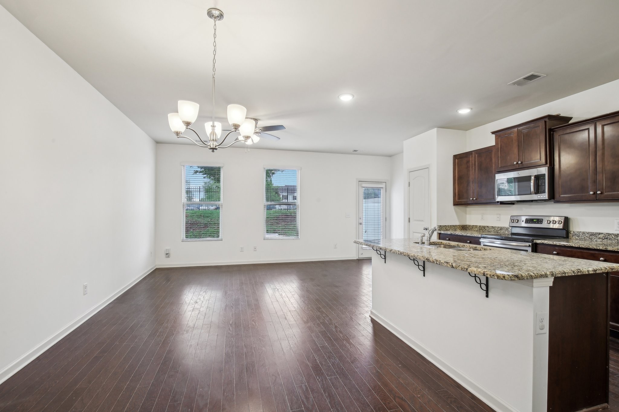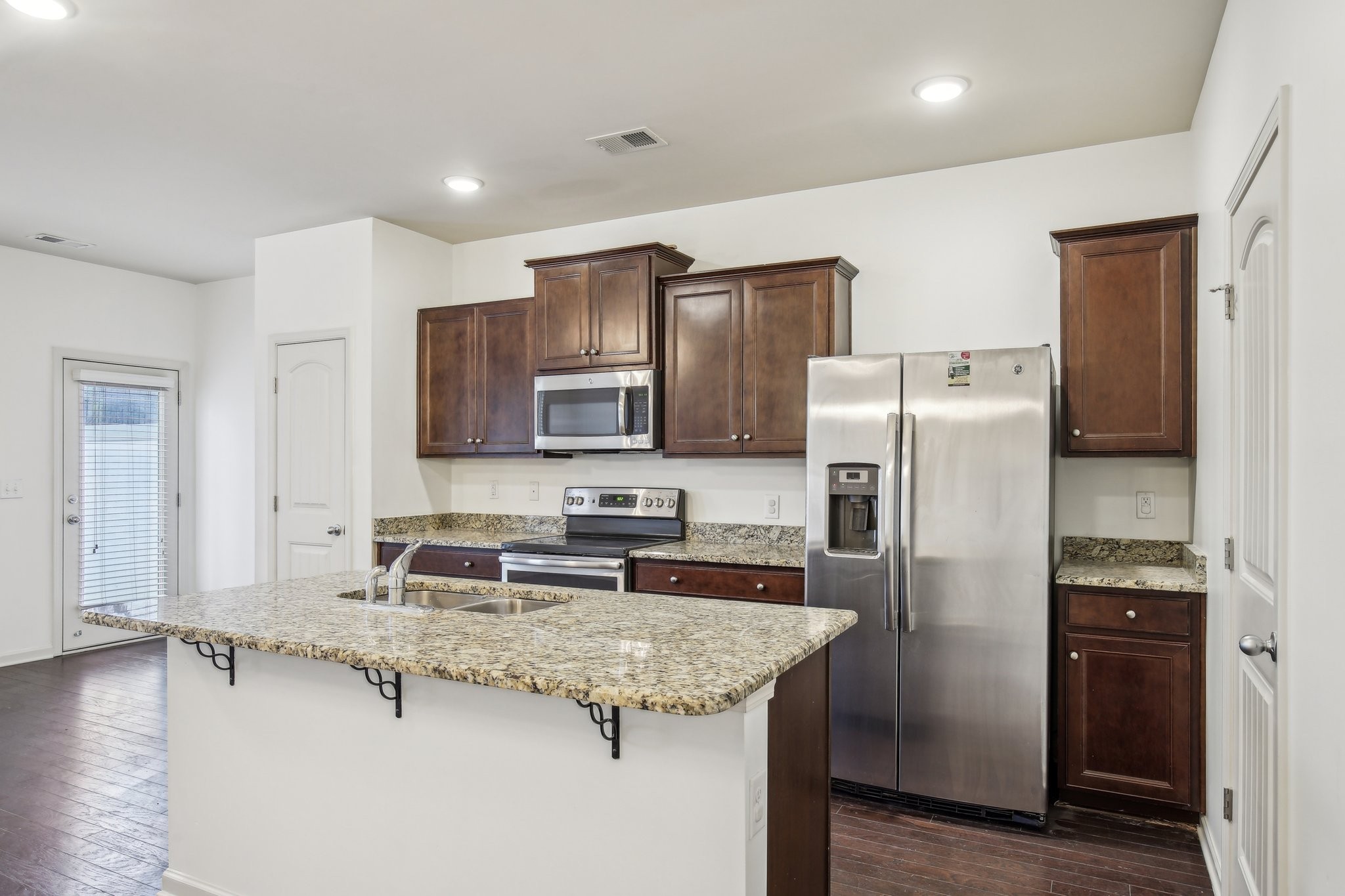 The kitchen is a true highlight, featuring stunning granite countertops and stainless steel appliances. The ample cabinet space ensures plenty of room for storage, while the sleek finishes add a touch of elegance.