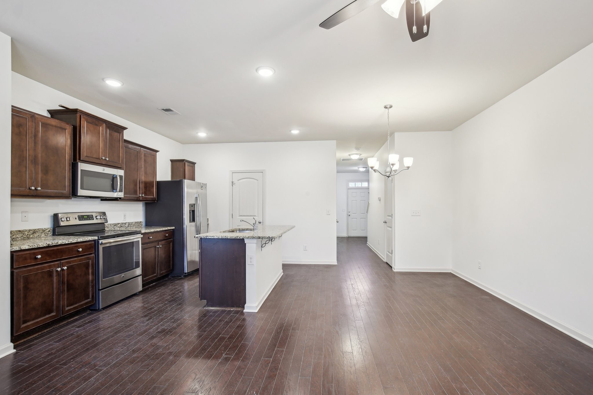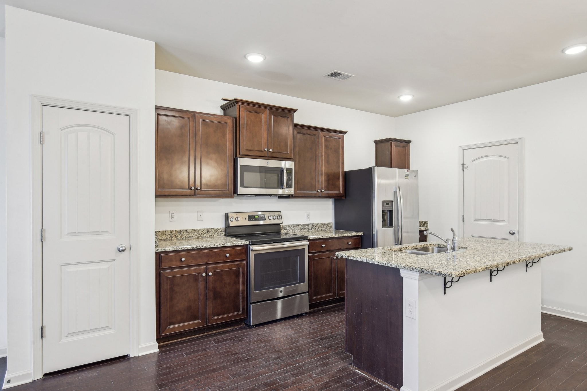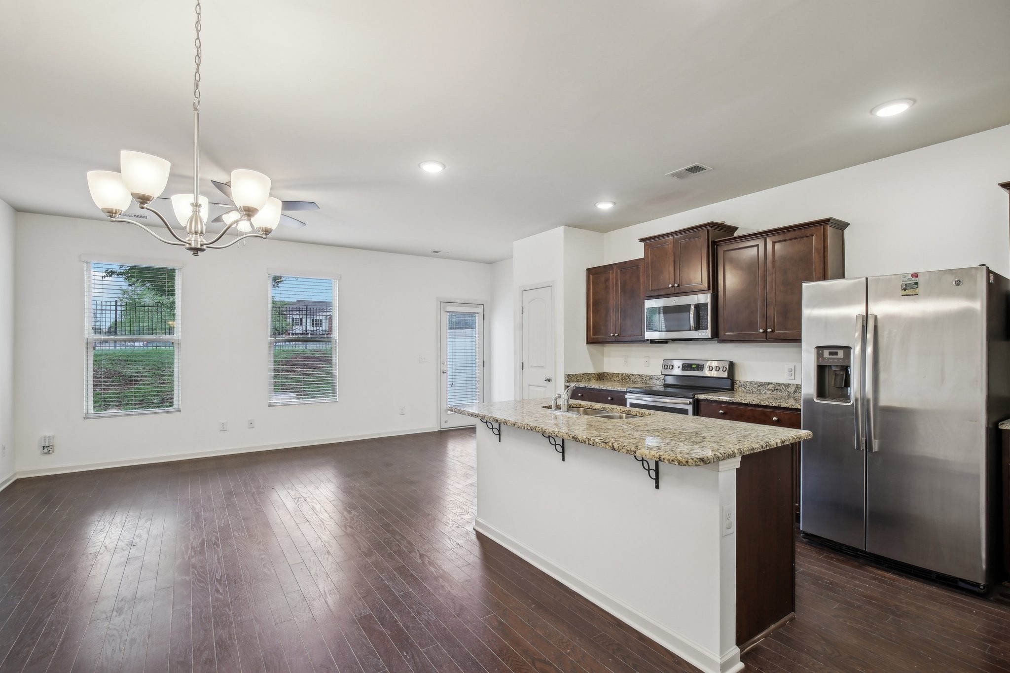 The kitchen is a true highlight, featuring stunning granite countertops and stainless steel appliances. The ample cabinet space ensures plenty of room for storage, while the sleek finishes add a touch of elegance.