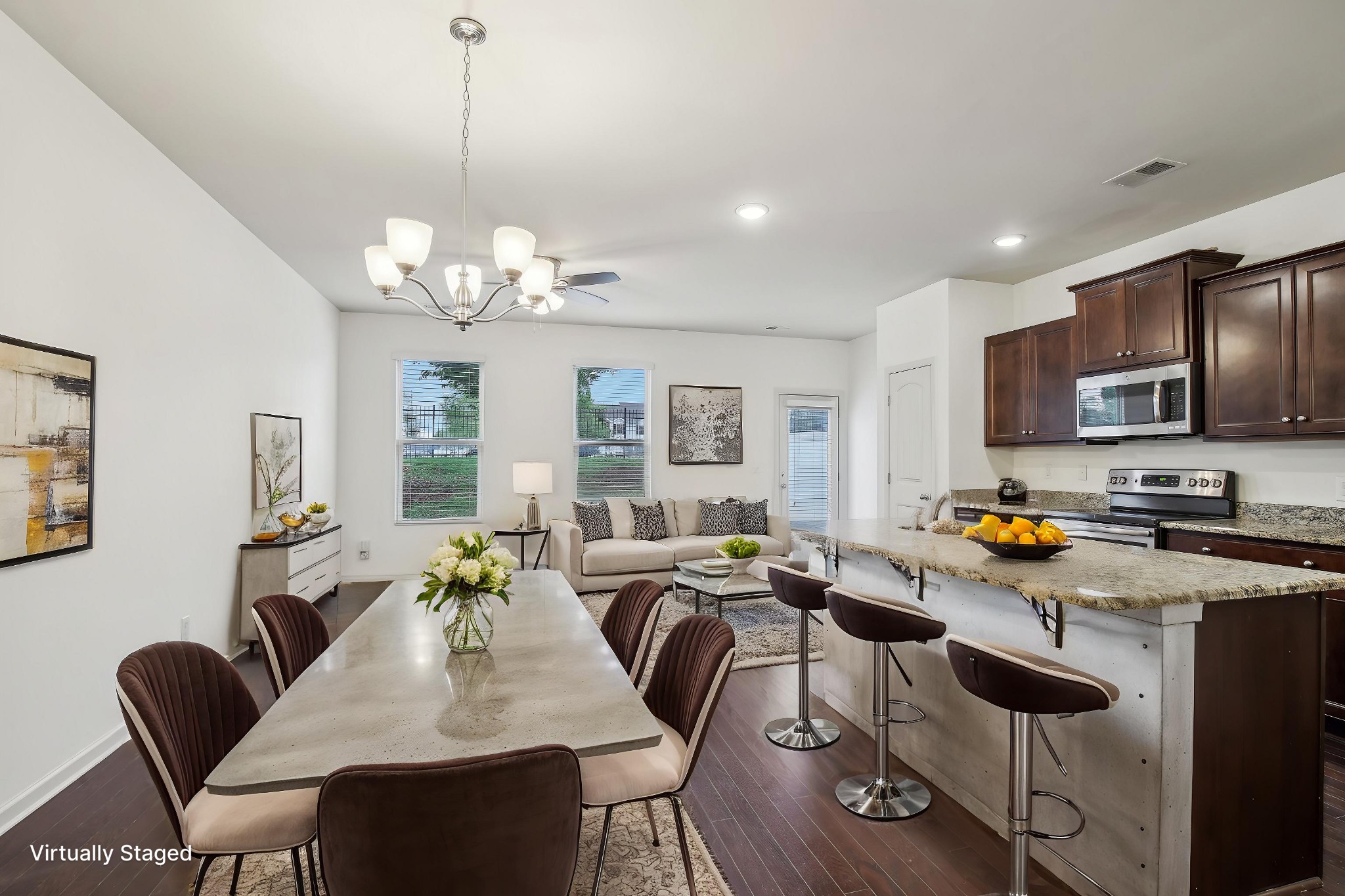 Welcome to this charming 3-bedroom, 2.5-bathroom townhome, offering both style and convenience! As you step inside, you're greeted by beautiful flooring that flows seamlessly throughout the home. The spacious open floorplan is perfect for modern living, with a generous living area that effortlessly connects to the dining and kitchen spaces.
