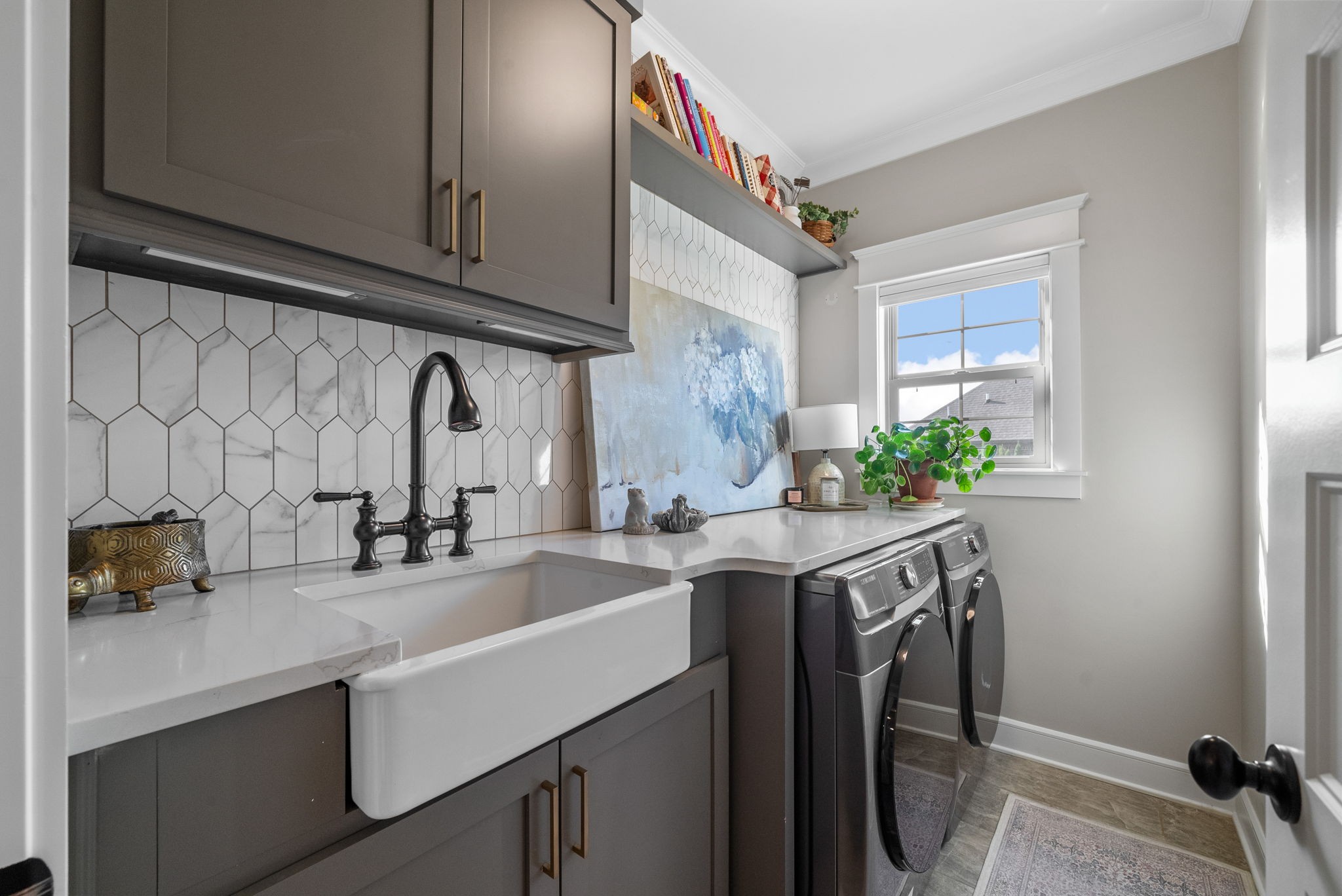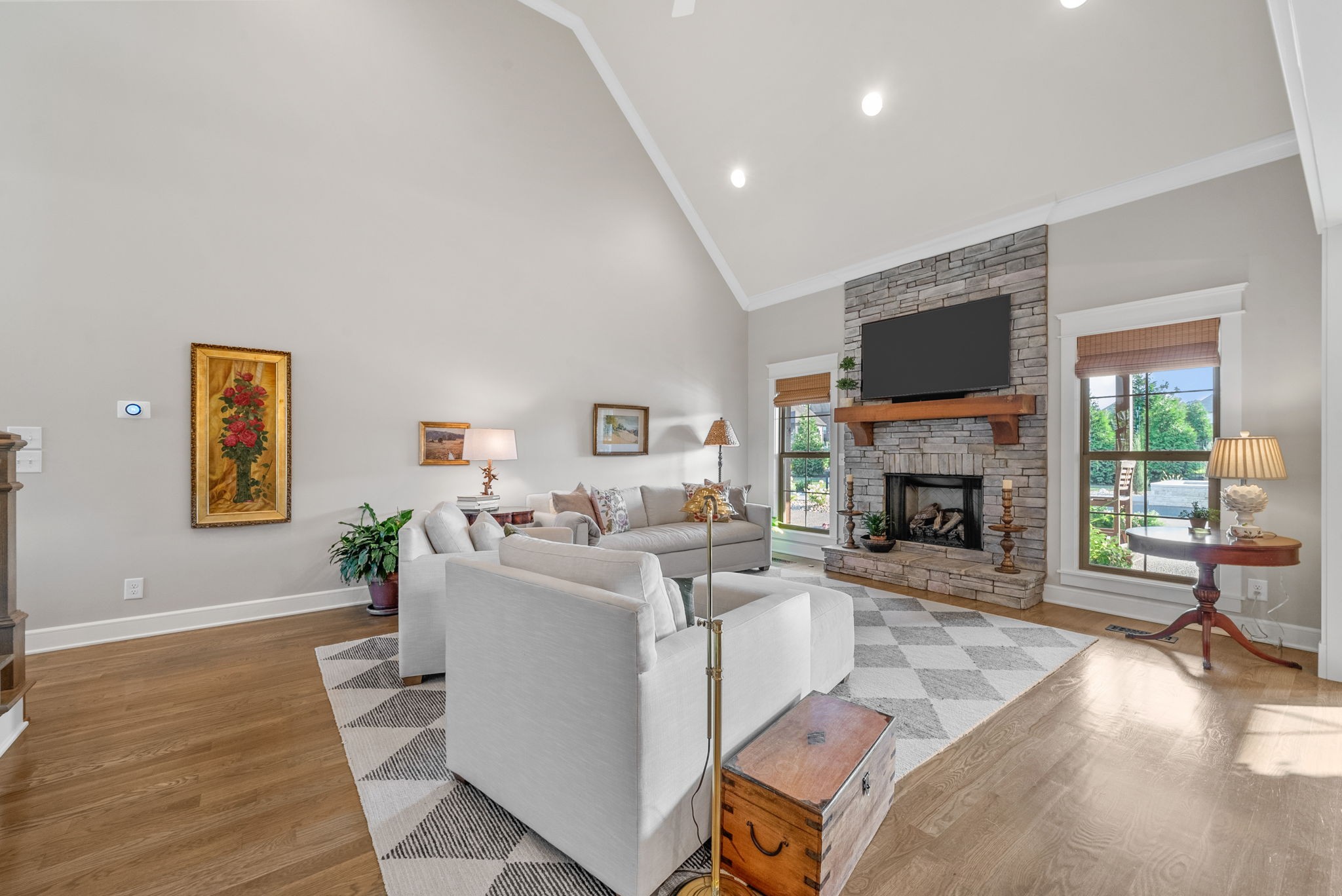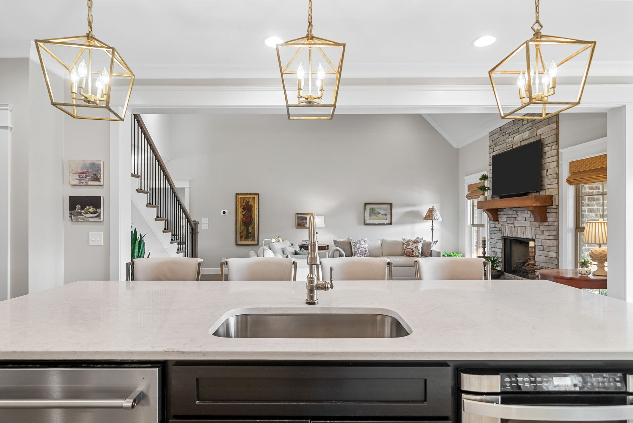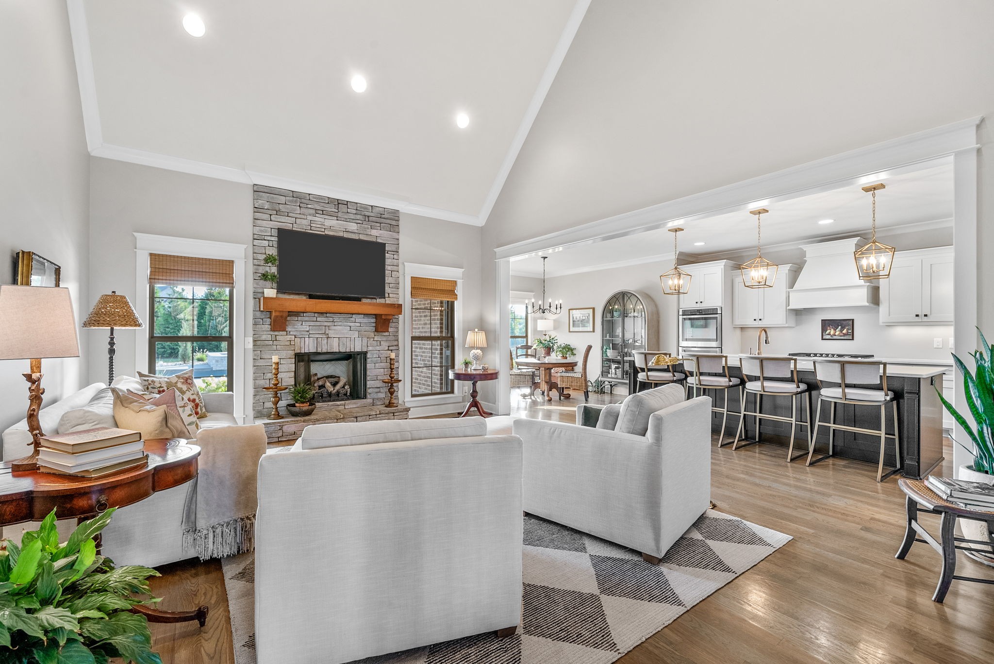 Exceptional home in the prestigious and highly sought-after Farmington Woods neighborhood, known for its all-brick homes situated on spacious half-acre or larger lots. This stunning property offers an entertainer’s dream backyard with an expanded patio, luxurious in-ground pool, and a sun shelf featuring a tranquil waterfall—creating a resort-style atmosphere right at home. Surrounded by mature privacy trees and a lush, irrigated lawn, this outdoor space is your own private oasis. Skip the headache of permits, approvals, and torn-up yards—this pool is already in place and ready for you to enjoy just in time for summer. Built by esteemed local builder Tim Tomlinson with Cornerstone, this home is packed with high-end finishes and quality craftsmanship throughout. What sets 148 Springfield Drive apart are the thoughtful upgrades added to an already impressive build. As you approach, you’ll notice the manicured lawn, beautiful landscaping, and three-car side-entry garage that not only offers more parking but also enhances the home’s curb appeal. The entire home was recently custom painted, and new designer light fixtures have been installed throughout, creating a fresh, custom feel. The layout is ideal for modern living, with two bedrooms on the main level and two more upstairs. The kitchen is a chef’s dream with quartz countertops, double ovens, a built-in gas range, and generous seating around the oversized island. There’s also a spacious eat-in area and a formal dining room. The laundry room is a step above with beautiful cabinetry, a sink, and a quartz countertop for folding. The fully renovated primary ensuite bathroom is a dream, offering spa-like finishes and thoughtful touches, along with dual primary closets. Upstairs, a large bonus room provides a multifunctional space for work, play, or relaxation.
