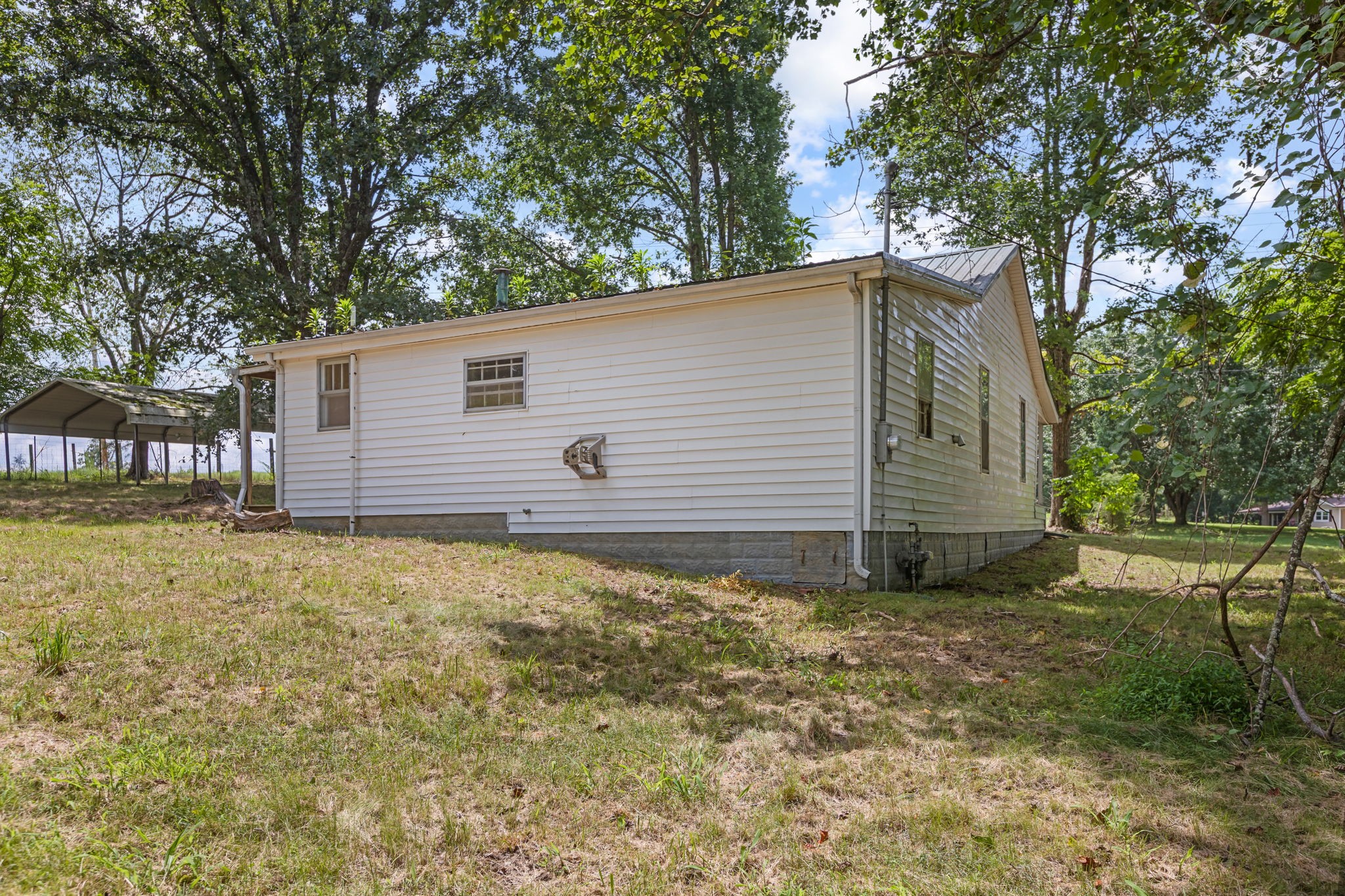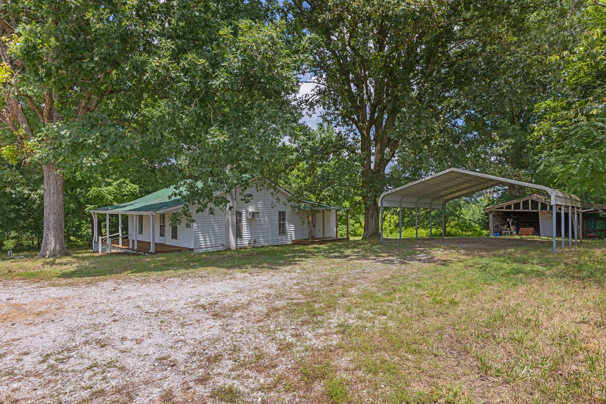 A cozy farmhouse nestled on 0.5 acres, offering a peaceful country setting with timeless charm. Fresh plank flooring and carpet installed 9-10. This freshly painted two-bedroom home features a full covered front porch and a covered side porch. A detached 18x20 carport provides convenient parking, and the additional storage shed offers space for multiple creative uses, while the spacious yard offers plenty of room to enjoy the outdoors. Bring your design ideas and create your own personal home in McEwen. Only 10 minutes from all the shopping and restaurants in Dickson. Will Need to go cash, conventional loan, local bank financing as it is.
