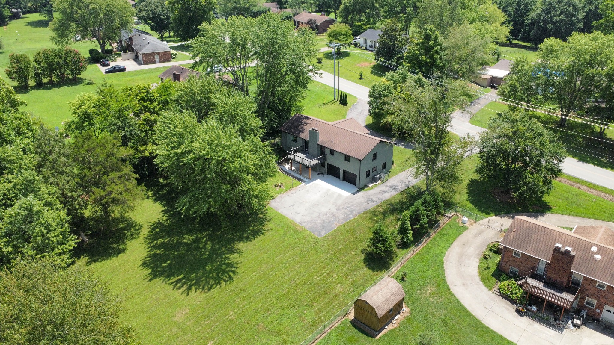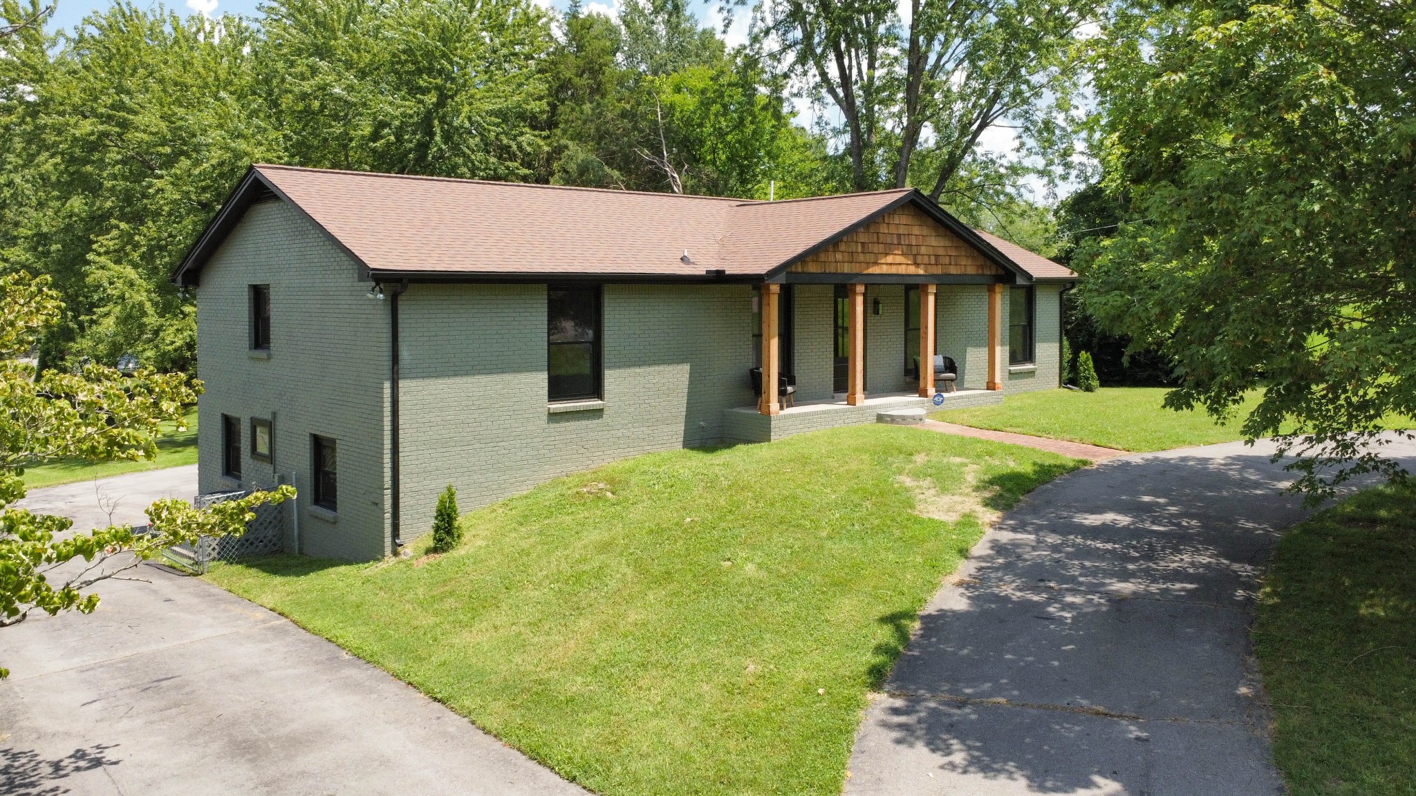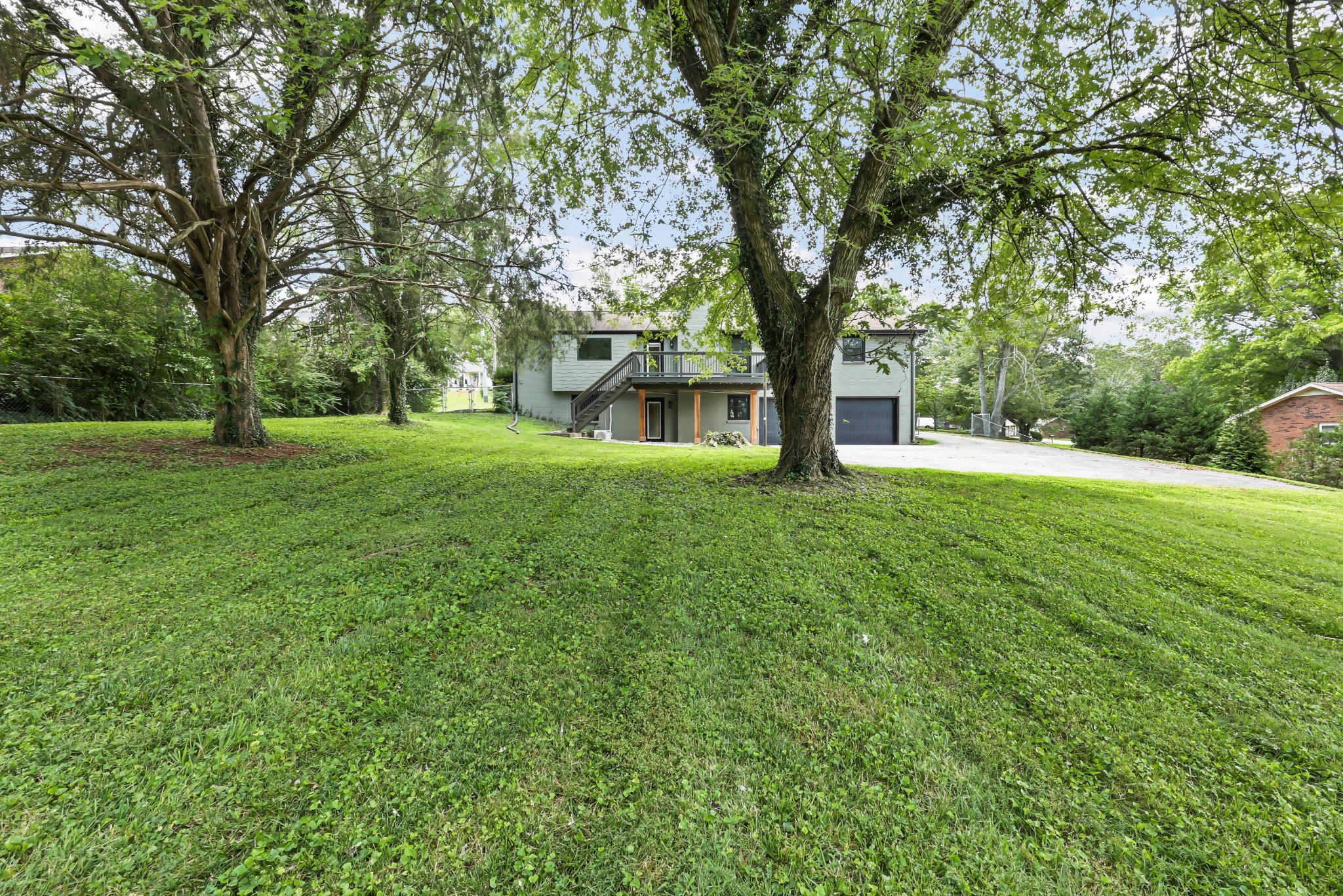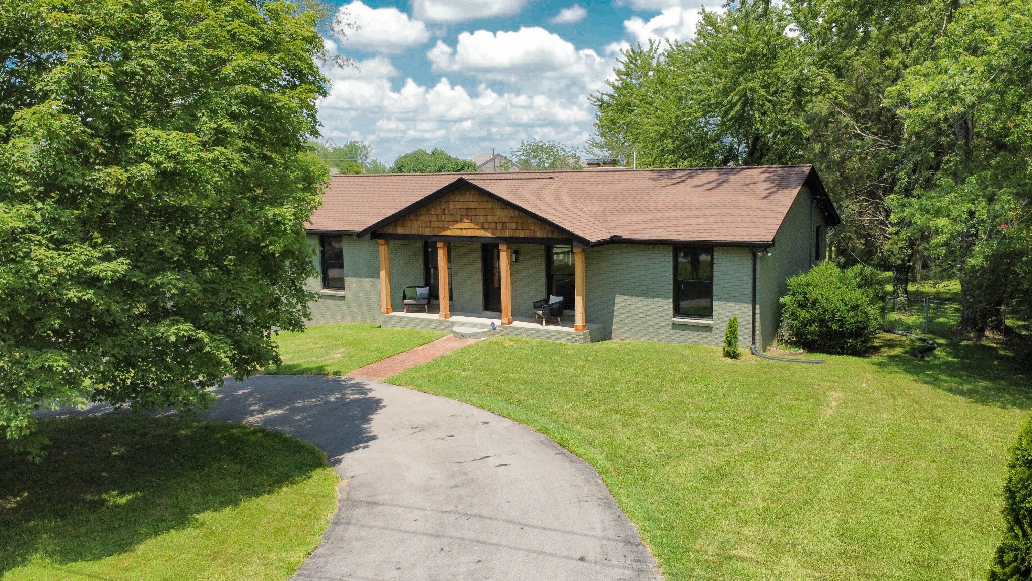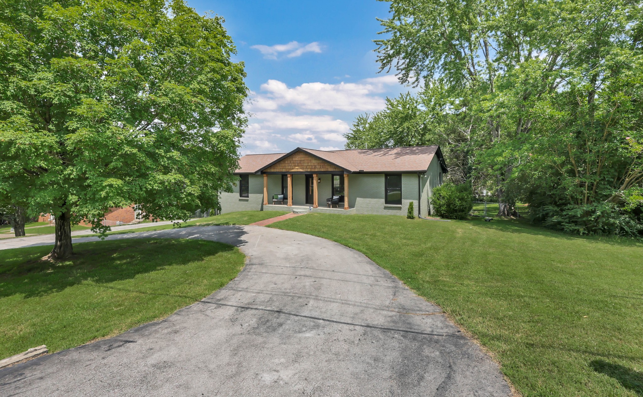 Welcome to this beautifully updated ranch-style home nestled on a spacious .68-acre fully backyard fenced lot with mature trees, no immediate rear neighbors, and a charming half-circle driveway. Located in the popular community of Sango, you can enjoy relaxing mornings on the covered front porch with cedar-wrapped columns or entertaining on the deck and patio overlooking the peaceful backyard. Inside, the main level offers an open-concept layout with seamless flow between the living, kitchen, and dining areas. The living room features a wood-burning fireplace with modern tile surround, while the stunning kitchen boasts granite countertops, 7' island with seating, tile backsplash, two pantries, a brand new stainless appliance package and soft-close cabinetry throughout. A dedicated laundry room with storage sits just off the kitchen for convenience, washer & dryer to remain. The primary suite is a true retreat, featuring a spa-inspired bath with a massive tiled shower with built-in seat and cutouts, a leathered granite double vanity, and a walk-in closet with pocket door. Two additional bedrooms and a fully renovated hall bath with deep tub/shower combo complete the main floor. The fully finished basement expands your living space with a den (mini-split installed), a multi-purpose room with closet (potential 4th bedroom), a tiled rec room, a full bathroom, and an impressive 21' long by 3’ wide storm shelter—ideal for storage or safety. In addition to all this, you also have the upgrades of new windows, new garage doors with motors, new LVP flooring, light fixtures & fresh paint throughout.This turn-key home checks all the boxes—don’t miss your chance to make it yours! Sellers preferred lender, Heather Anderson at Old National Bank offers a $2,000 lender credit for qualified buyers.