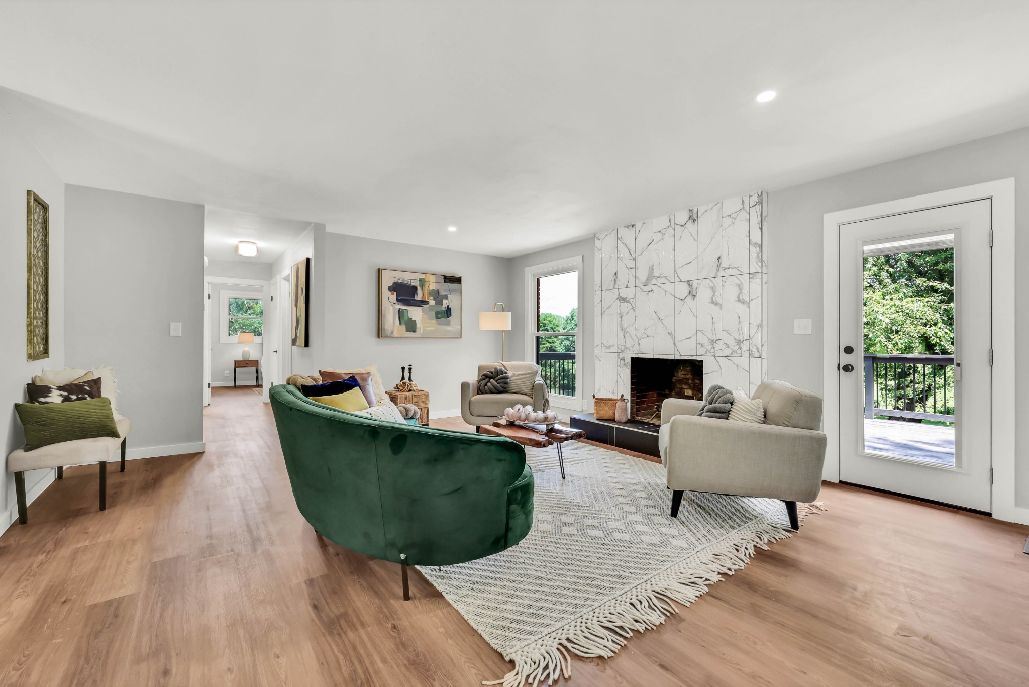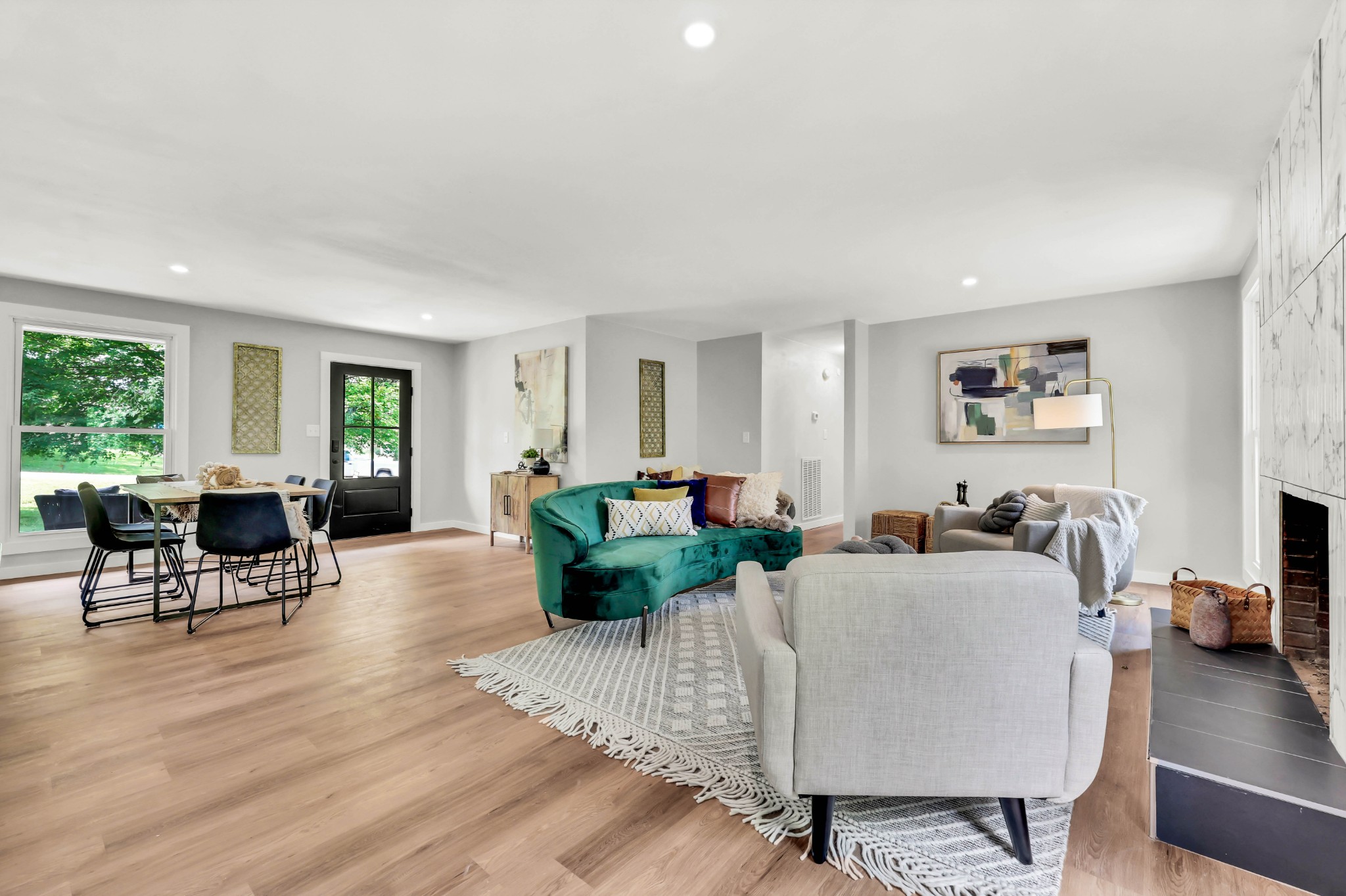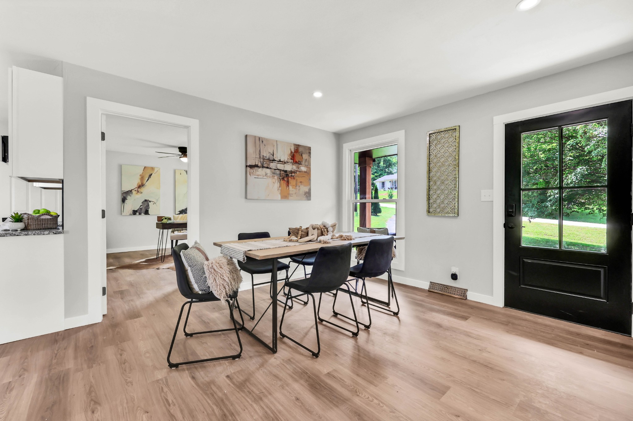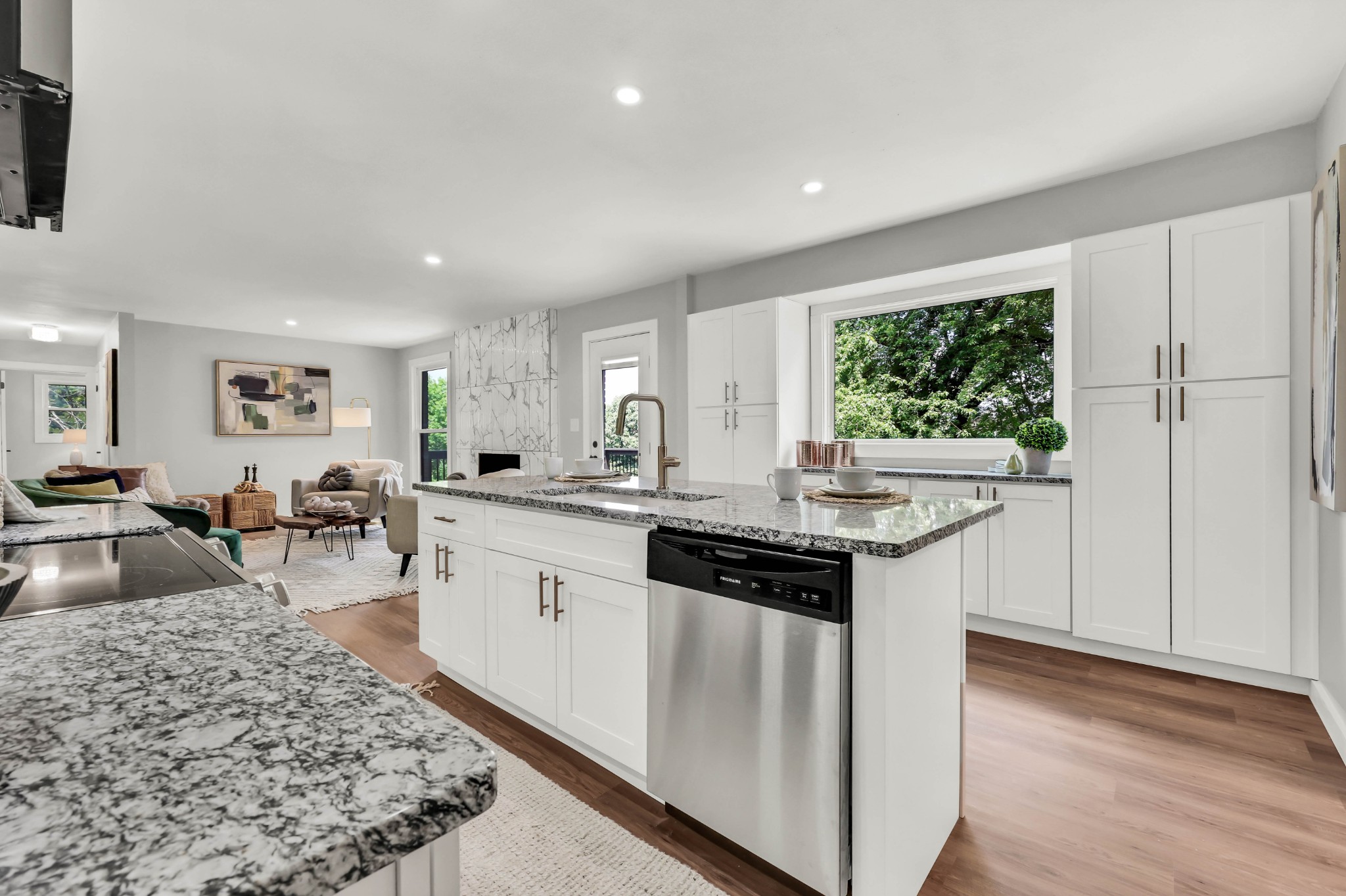 Welcome to this beautifully updated ranch-style home nestled on a spacious .68-acre fully backyard fenced lot with mature trees, no immediate rear neighbors, and a charming half-circle driveway. Located in the popular community of Sango, you can enjoy relaxing mornings on the covered front porch with cedar-wrapped columns or entertaining on the deck and patio overlooking the peaceful backyard. Inside, the main level offers an open-concept layout with seamless flow between the living, kitchen, and dining areas. The living room features a wood-burning fireplace with modern tile surround, while the stunning kitchen boasts granite countertops, 7' island with seating, tile backsplash, two pantries, a brand new stainless appliance package and soft-close cabinetry throughout. A dedicated laundry room with storage sits just off the kitchen for convenience, washer & dryer to remain. The primary suite is a true retreat, featuring a spa-inspired bath with a massive tiled shower with built-in seat and cutouts, a leathered granite double vanity, and a walk-in closet with pocket door. Two additional bedrooms and a fully renovated hall bath with deep tub/shower combo complete the main floor. The fully finished basement expands your living space with a den (mini-split installed), a multi-purpose room with closet (potential 4th bedroom), a tiled rec room, a full bathroom, and an impressive 21' long by 3’ wide storm shelter—ideal for storage or safety. In addition to all this, you also have the upgrades of new windows, new garage doors with motors, new LVP flooring, light fixtures & fresh paint throughout.This turn-key home checks all the boxes—don’t miss your chance to make it yours! Sellers preferred lender, Heather Anderson at Old National Bank offers a $2,000 lender credit for qualified buyers.