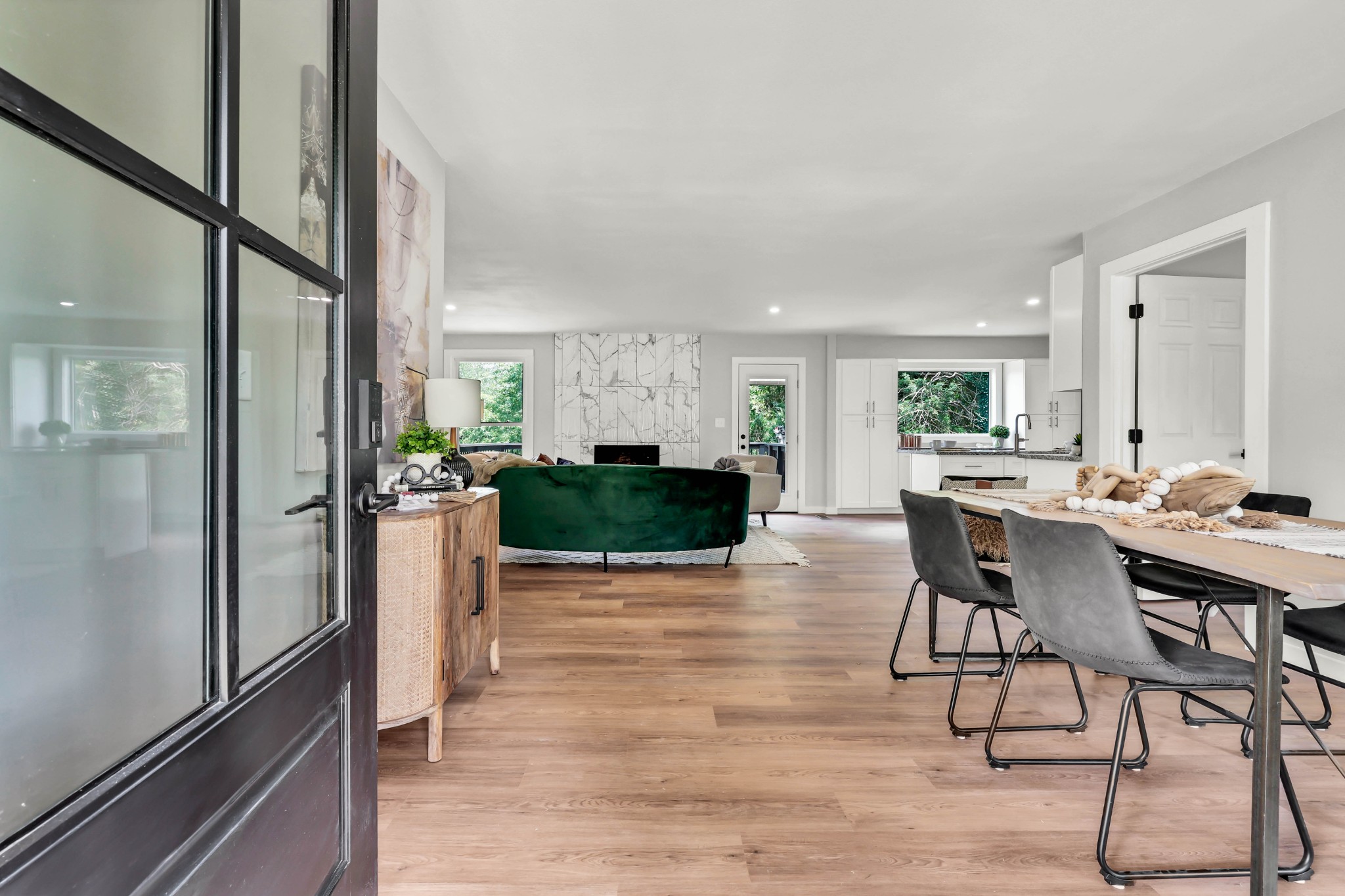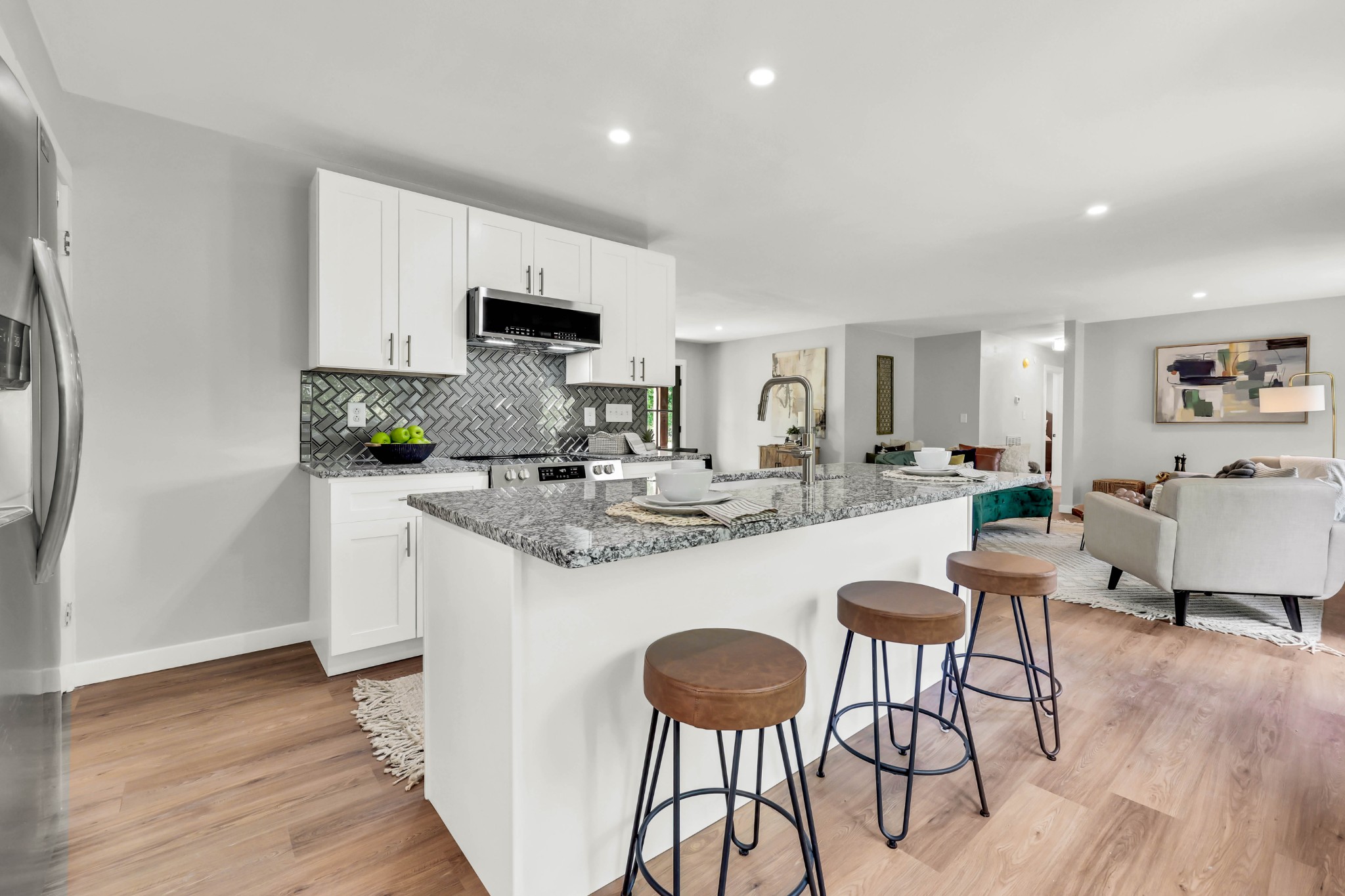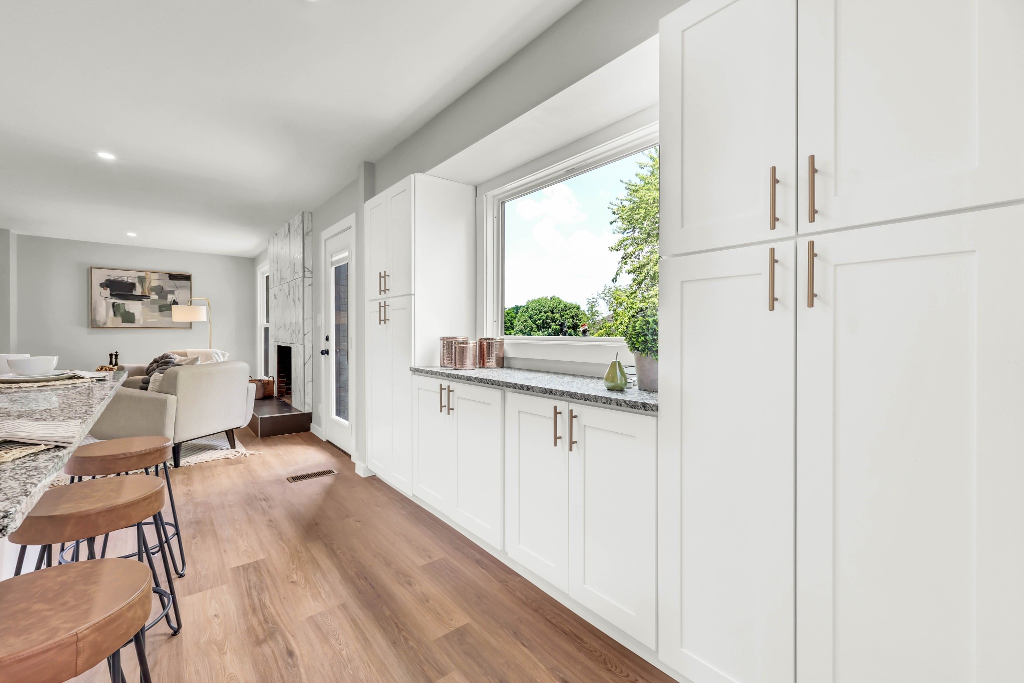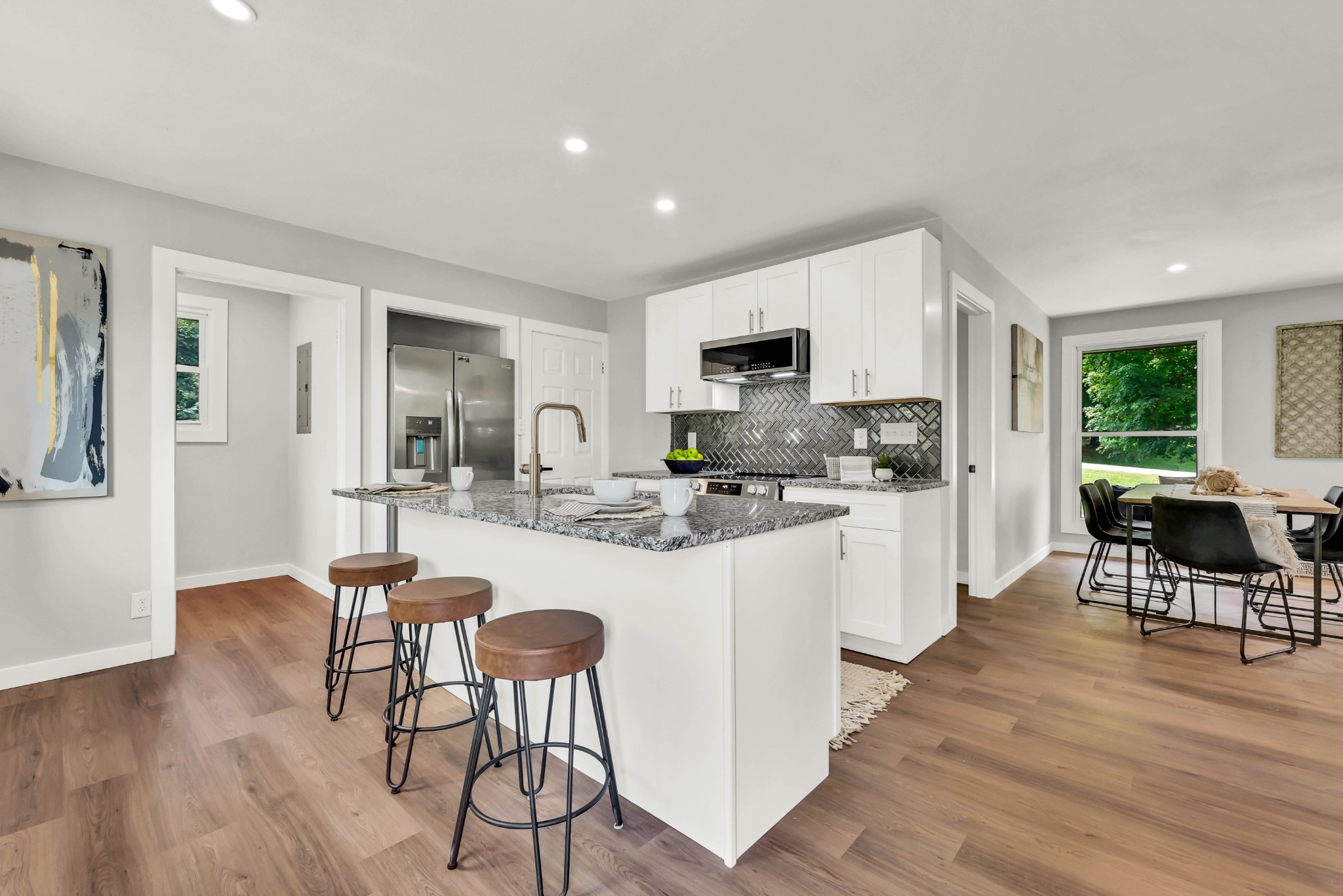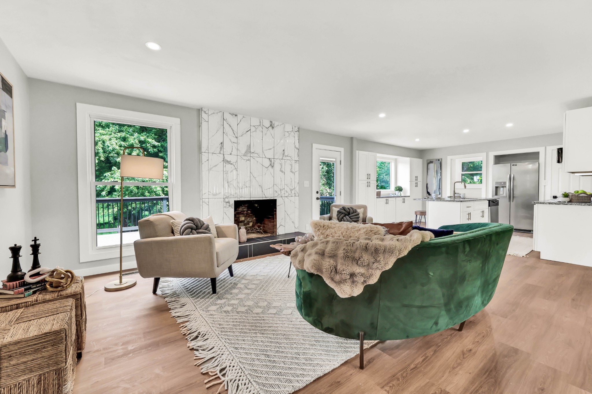 Welcome to this beautifully updated ranch-style home nestled on a spacious .68-acre fully backyard fenced lot with mature trees, no immediate rear neighbors, and a charming half-circle driveway. Located in the popular community of Sango, you can enjoy relaxing mornings on the covered front porch with cedar-wrapped columns or entertaining on the deck and patio overlooking the peaceful backyard. Inside, the main level offers an open-concept layout with seamless flow between the living, kitchen, and dining areas. The living room features a wood-burning fireplace with modern tile surround, while the stunning kitchen boasts granite countertops, 7' island with seating, tile backsplash, two pantries, a brand new stainless appliance package and soft-close cabinetry throughout. A dedicated laundry room with storage sits just off the kitchen for convenience, washer & dryer to remain. The primary suite is a true retreat, featuring a spa-inspired bath with a massive tiled shower with built-in seat and cutouts, a leathered granite double vanity, and a walk-in closet with pocket door. Two additional bedrooms and a fully renovated hall bath with deep tub/shower combo complete the main floor. The fully finished basement expands your living space with a den (mini-split installed), a multi-purpose room with closet (potential 4th bedroom), a tiled rec room, a full bathroom, and an impressive 21' long by 3’ wide storm shelter—ideal for storage or safety. In addition to all this, you also have the upgrades of new windows, new garage doors with motors, new LVP flooring, light fixtures & fresh paint throughout.This turn-key home checks all the boxes—don’t miss your chance to make it yours! Sellers preferred lender, Heather Anderson at Old National Bank offers a $2,000 lender credit for qualified buyers.