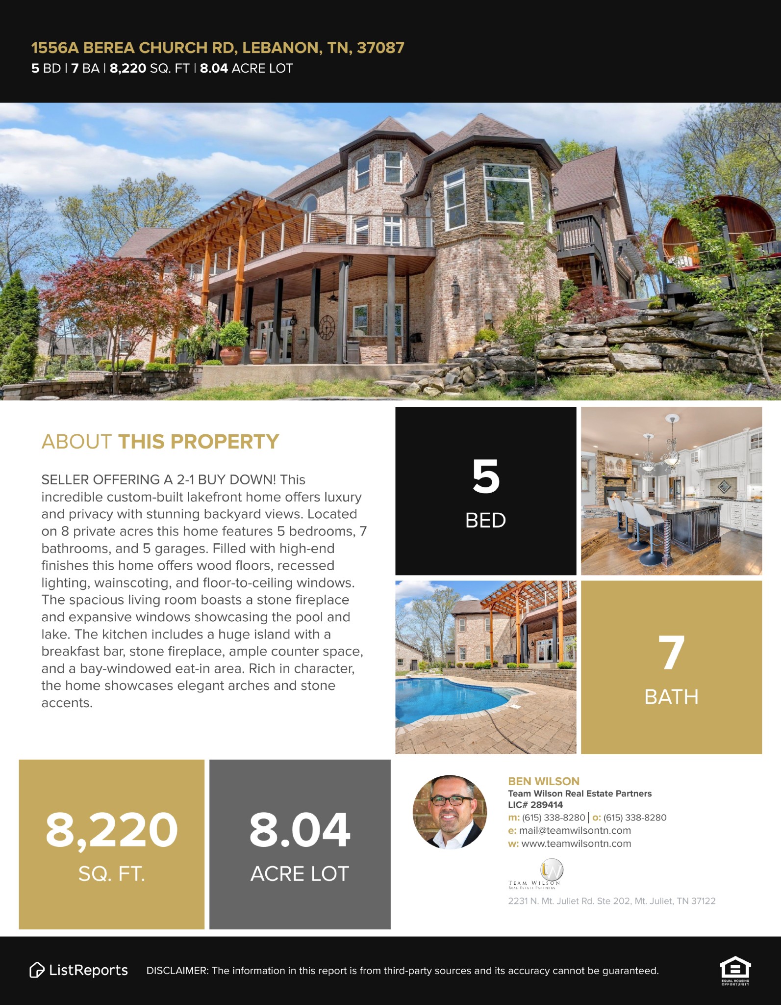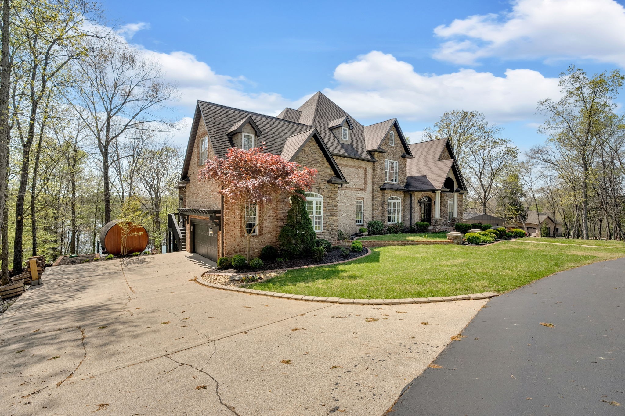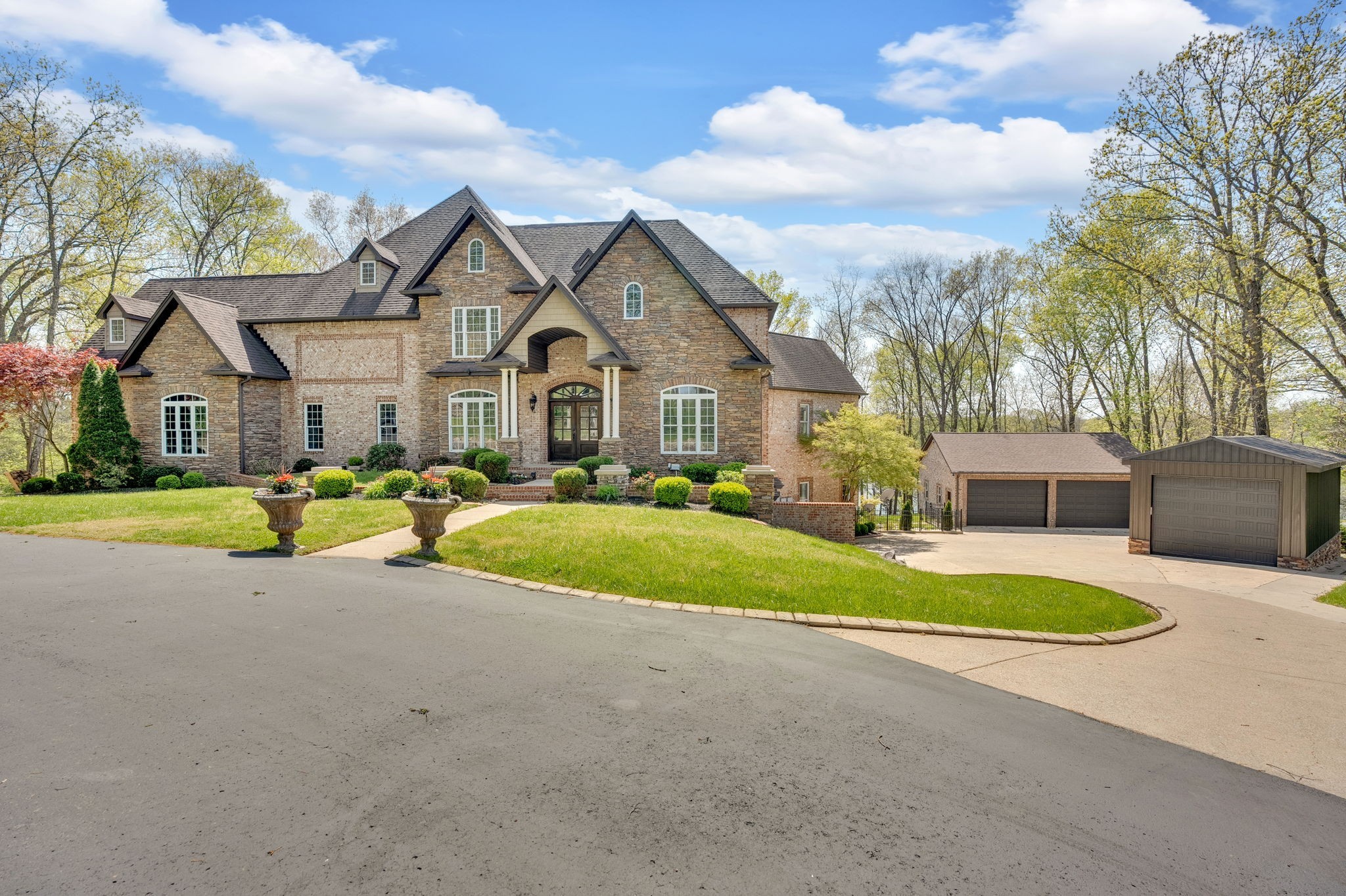 Old Hickory Lake Property For Sale! SELLER OFFERING A 2-1 BUY DOWN! This incredible custom-built lakefront home offers luxury and privacy with stunning backyard views. Located on 8 private acres this home features 5 bedrooms, 7 bathrooms, and 5 garages. Filled with high-end finishes this home offers wood floors, recessed lighting, wainscoting, and floor-to-ceiling windows. The spacious living room boasts a stone fireplace and expansive windows showcasing the pool and lake. The kitchen includes a huge island with a breakfast bar, stone fireplace, ample counter space, and a bay-windowed eat-in area. Rich in character, the home showcases elegant arches and stone accents. The main-level primary suite features a luxurious ensuite with a dual shower, soaking tub, two vanities, and a massive walk-in closet. This his and hers closets include custom built ins and a safe in each closet. Upstairs, all oversized secondary bedrooms each contain ensuites. Enjoy movie night in your media room! The basement offers an in-law option with living room, bedroom, and bath. Need more space? No worries! There is plenty of expansion room including a full size gym//exercise room,. Step outside to the hot tub, in-ground pool, and breathtaking lake views—resort-style living at its finest! ON DEMAND Hot Water Heater. Friendship Christian School less than 3 miles away! No HOA! Check out the links for boating options and great spots on the water!