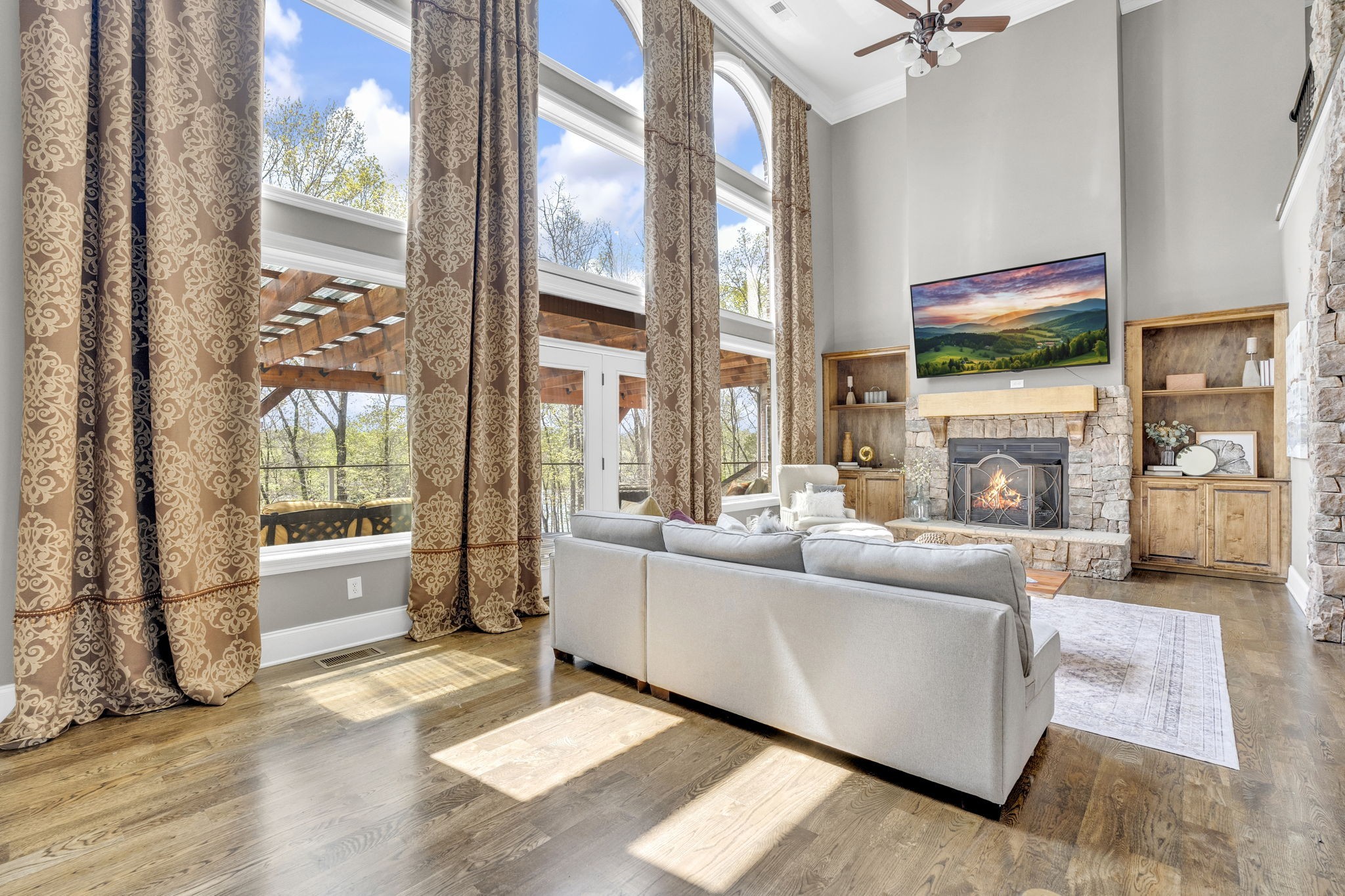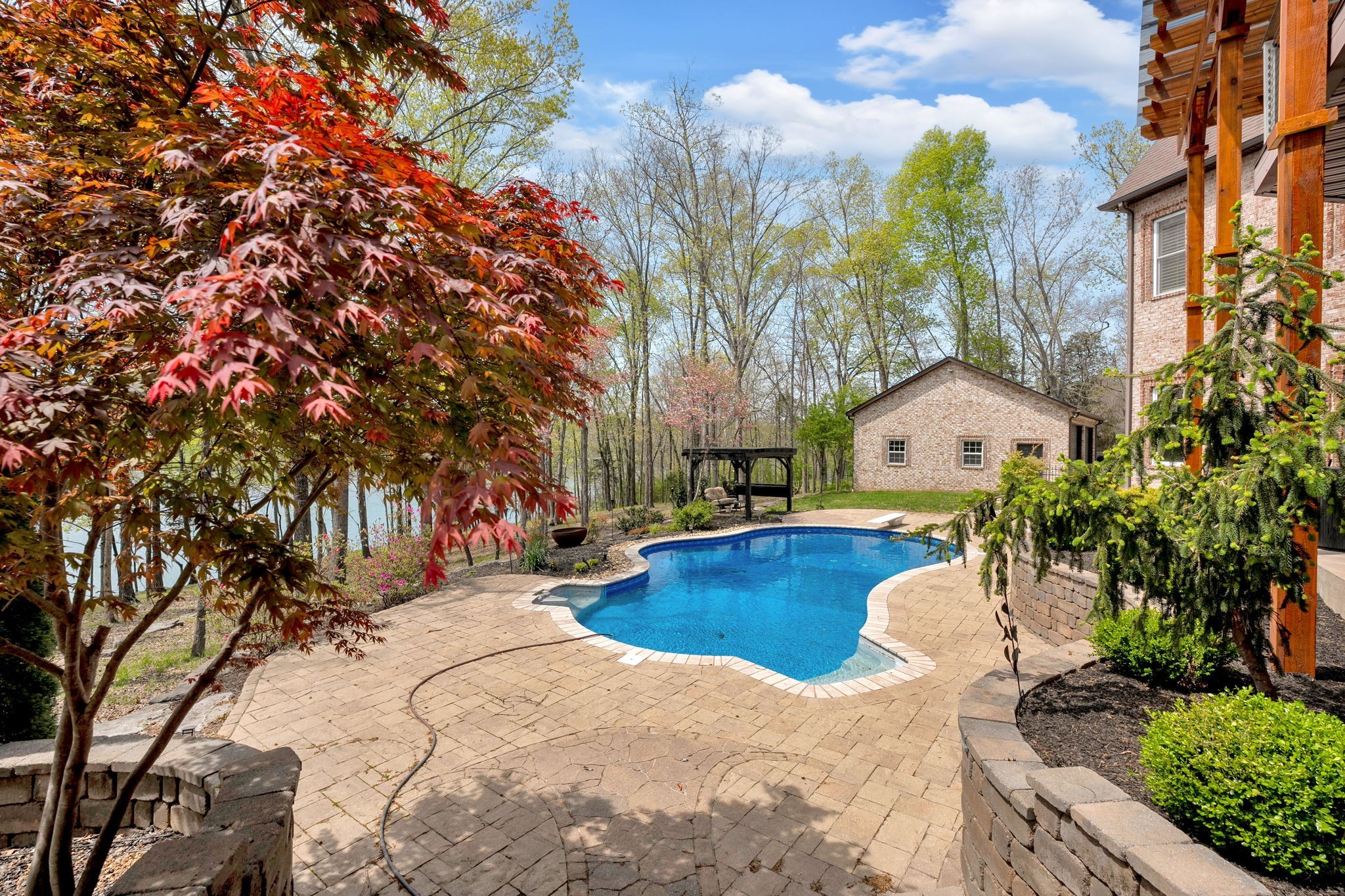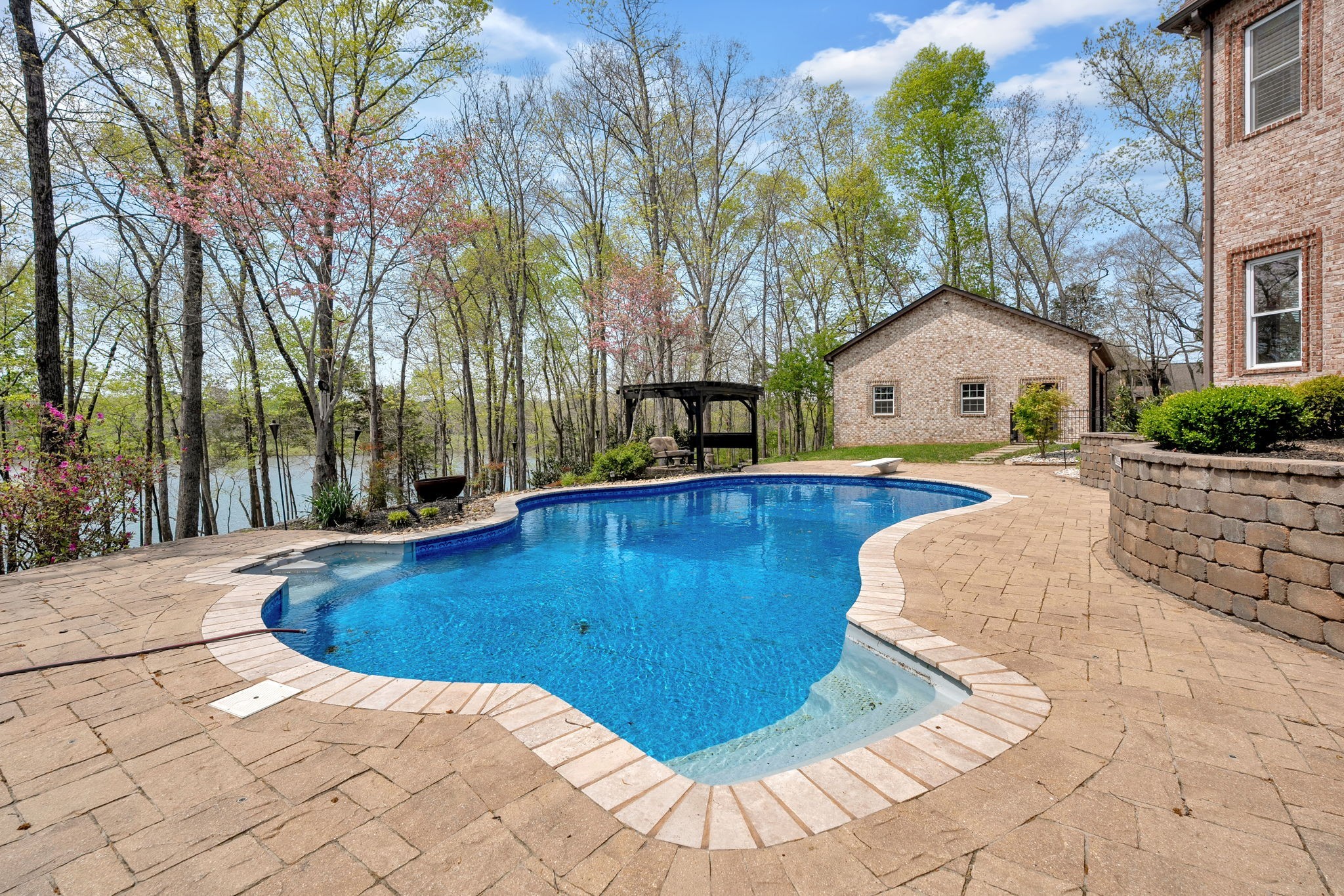 Old Hickory Lake Property For Sale! SELLER OFFERING A 2-1 BUY DOWN! This incredible custom-built lakefront home offers luxury and privacy with stunning backyard views. Located on 8 private acres this home features 5 bedrooms, 7 bathrooms, and 5 garages. Filled with high-end finishes this home offers wood floors, recessed lighting, wainscoting, and floor-to-ceiling windows. The spacious living room boasts a stone fireplace and expansive windows showcasing the pool and lake. The kitchen includes a huge island with a breakfast bar, stone fireplace, ample counter space, and a bay-windowed eat-in area. Rich in character, the home showcases elegant arches and stone accents. The main-level primary suite features a luxurious ensuite with a dual shower, soaking tub, two vanities, and a massive walk-in closet. This his and hers closets include custom built ins and a safe in each closet. Upstairs, all oversized secondary bedrooms each contain ensuites. Enjoy movie night in your media room! The basement offers an in-law option with living room, bedroom, and bath. Need more space? No worries! There is plenty of expansion room including a full size gym//exercise room,. Step outside to the hot tub, in-ground pool, and breathtaking lake views—resort-style living at its finest! ON DEMAND Hot Water Heater. Friendship Christian School less than 3 miles away! No HOA! Check out the links for boating options and great spots on the water!