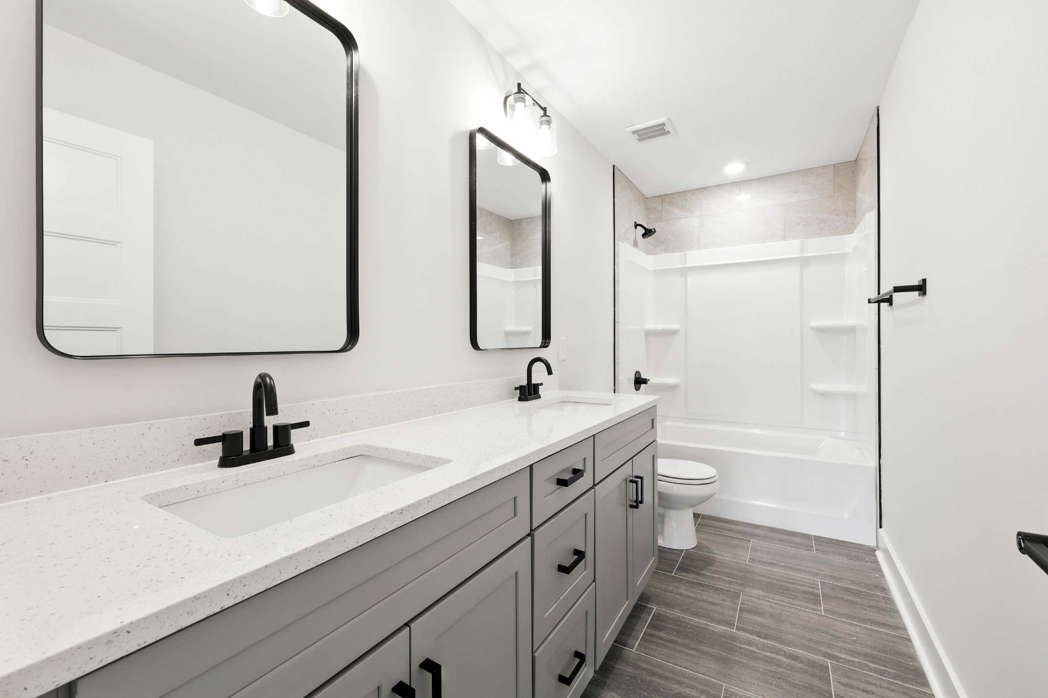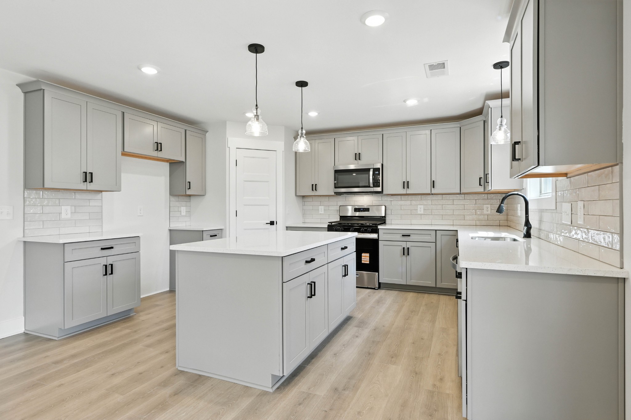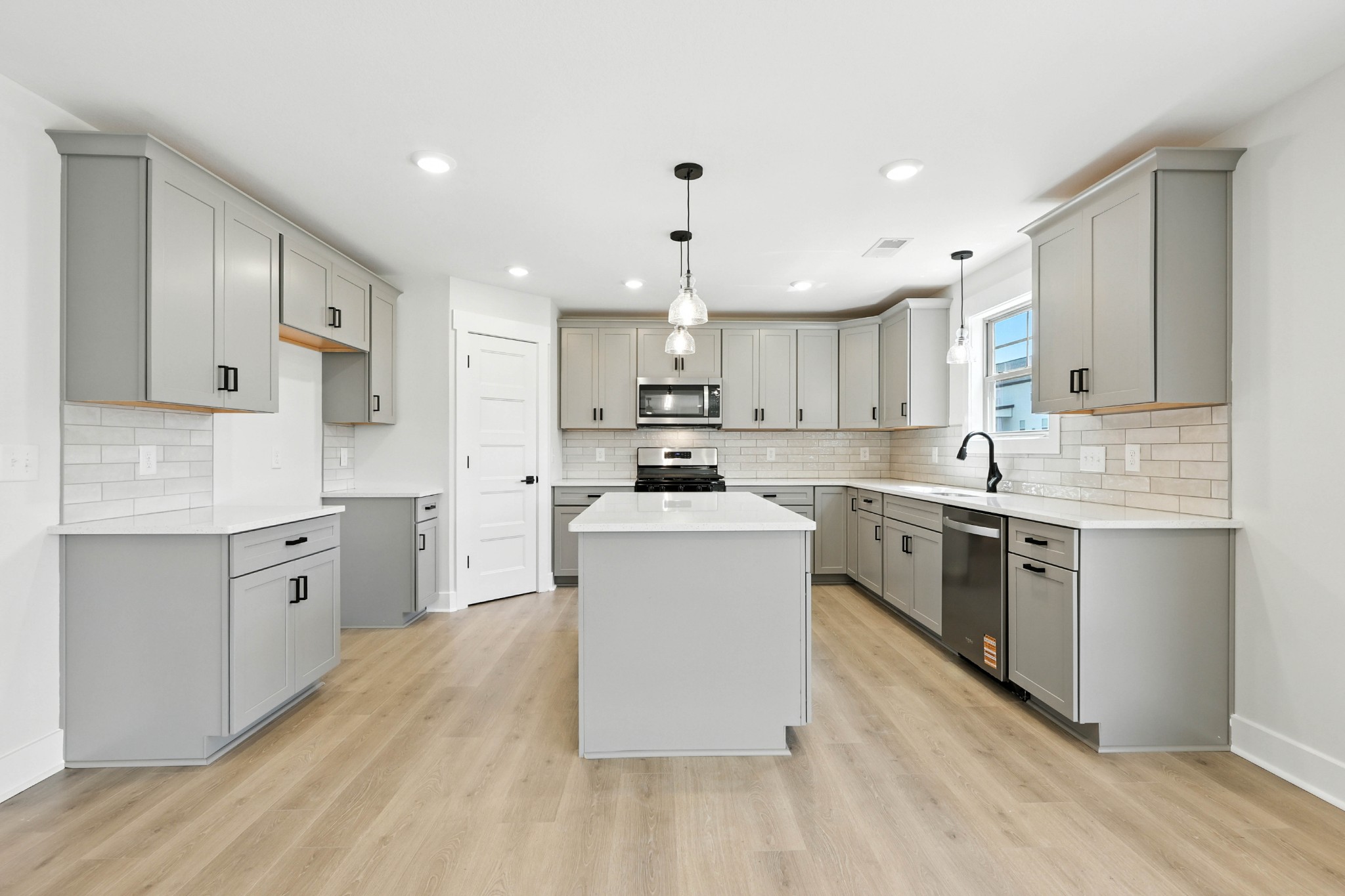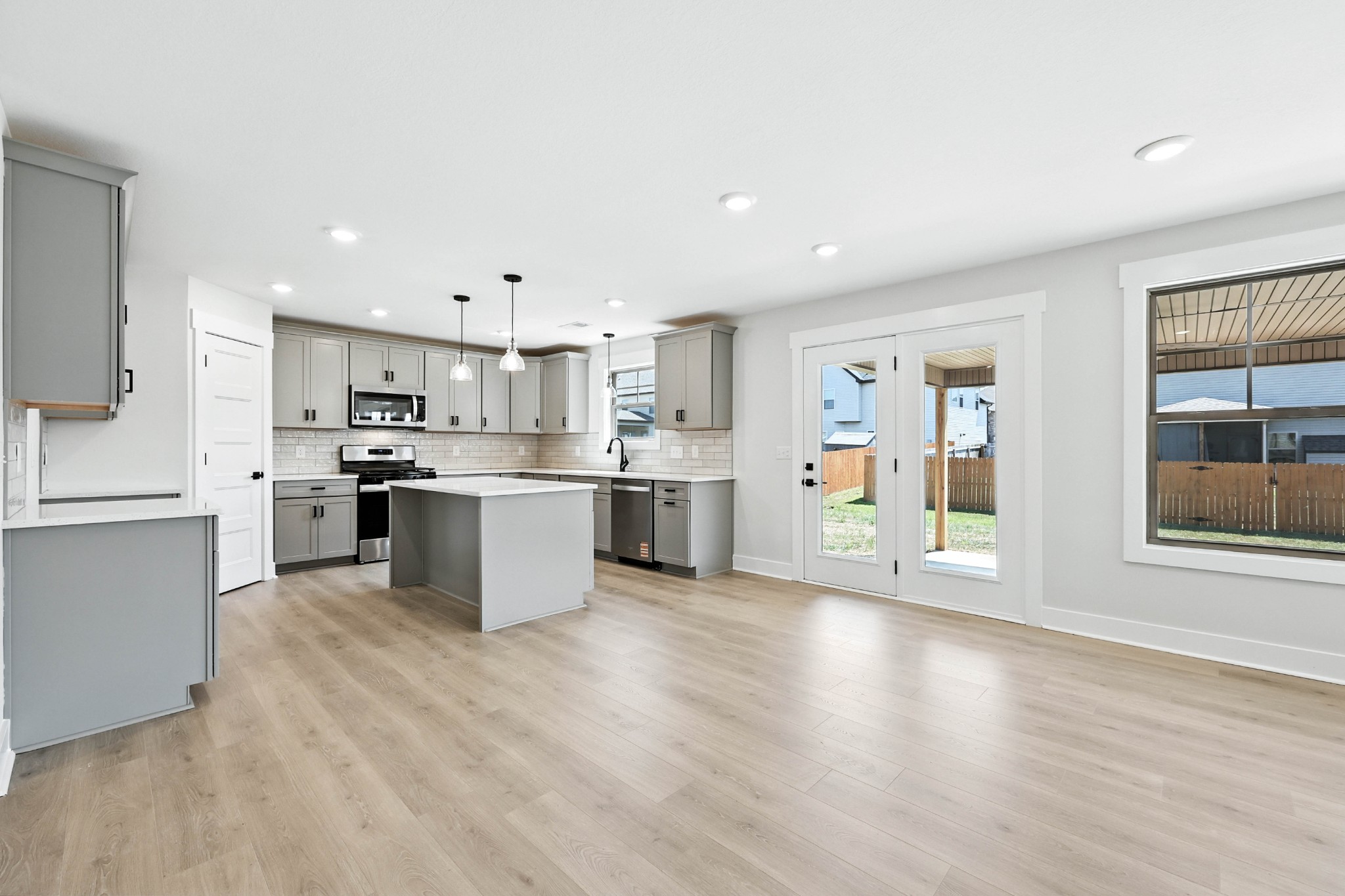Stunning 4BR/2.5BA open floor plan. Massive great room with 9ft ceilings and shiplap fireplace opens to the kitchen. Kitchen with island seating and tons of cabinets featuring soft close drawers/doors, quartz tops, tiled backsplash and pantry. Gas range/oven is wired for electric as well. Enter from the 3-car garage into a large laundry/mud room with storage cabinets and a drop zone. All bedrooms on upper level with large walk-in closets, a bonus room (with closet) could be 5th bedroom. Primary suite has full bathroom with double vanity, separate tiled shower, tub and walk-in closet. Gas heat on main level and electric heat on upper level. Covered front porch and large covered rear patio.