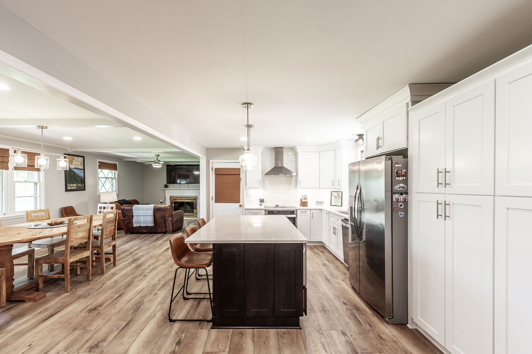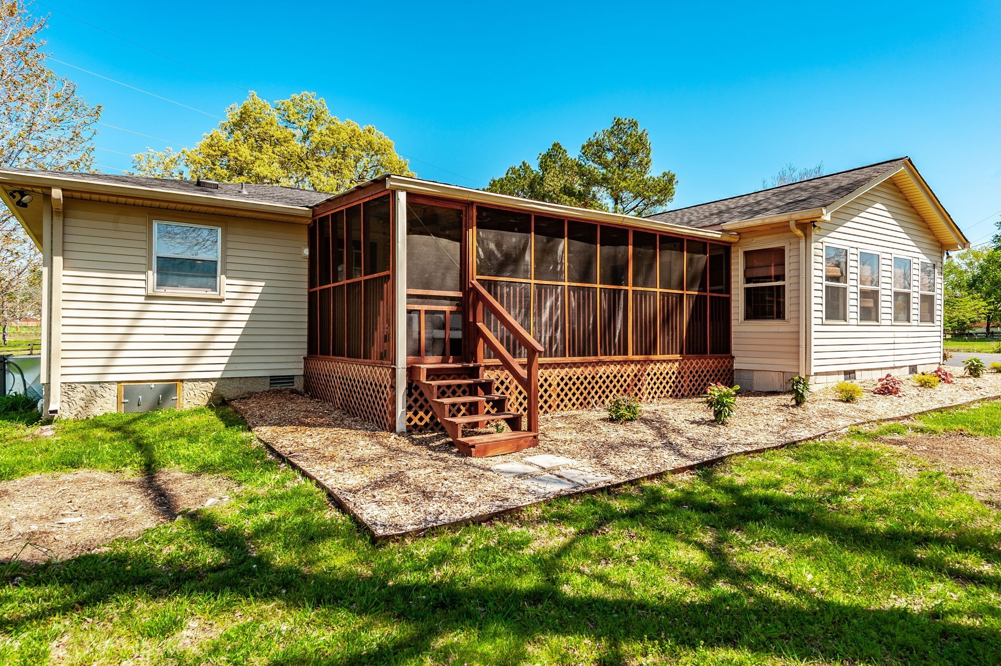 Discover the ideal mini farm, thoughtfully redesigned to blend modern convenience with country charm. This completely remodeled ranch has been gutted and rebuilt, featuring an open floor plan and high-end upgrades throughout. The home boasts a brand-new roof with even all-new wood decking beneath the shingles, along with a new HVAC system and ductwork. The septic system has been expanded with additional field lines to support a huge concrete tank accommodating a four-bedroom capacity. All plumbing has been updated with new PVC, and the electrical system has been fully upgraded, including new fuse boxes. Inside, luxury vinyl plank and tile flooring has been installed with updated subflooring. A wall in the main living area was removed to create a more open and inviting space. The kitchen has been fully remodeled with quartz countertops, new cabinets, high-end appliances, and a custom pantry system. Additional upgrades include a screened porch, an encapsulated crawl space with two sump pumps, and a 2 dehumidifiers.