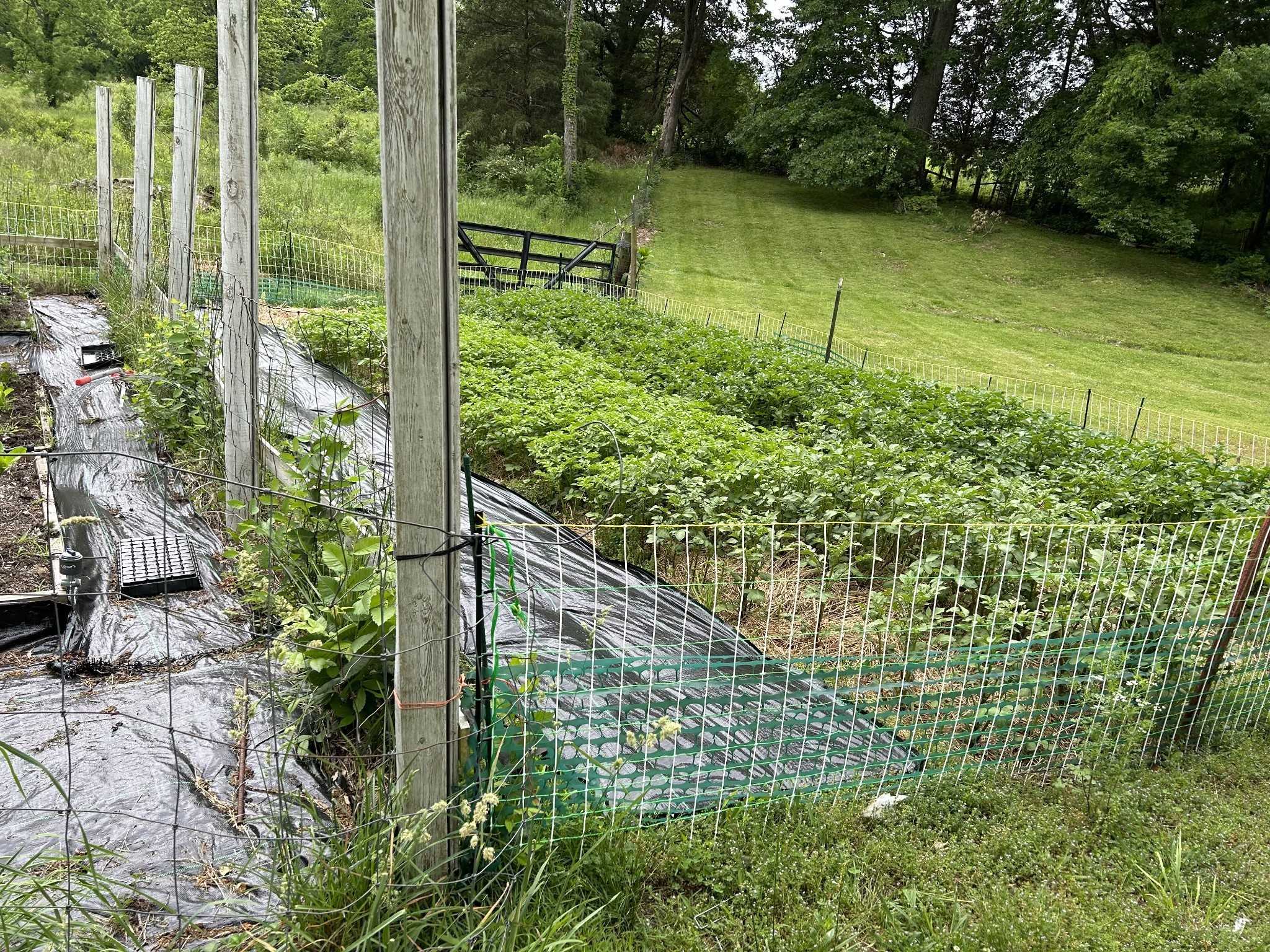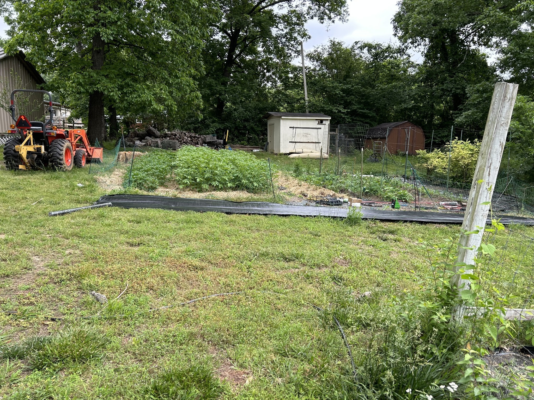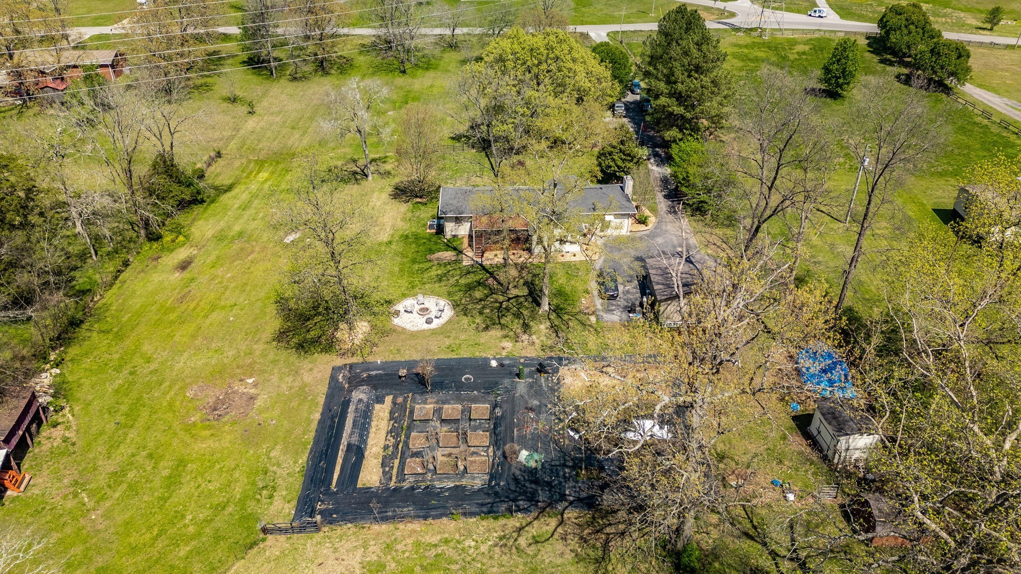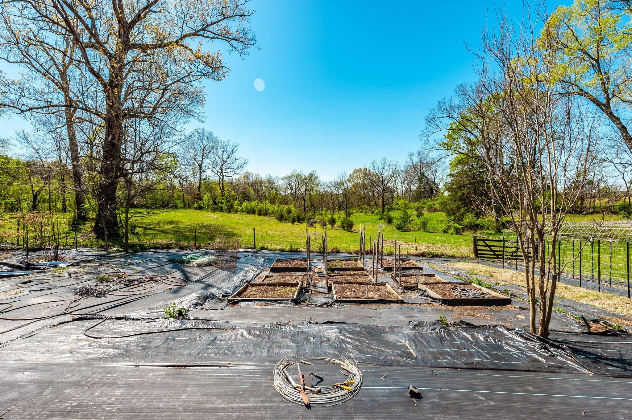 Outside, the detached garage was rebuilt from the foundation up and replaced with a steel-insulated structure, R-50 insulated garage doors, and additional attic storage. The extensive garden includes multiple fruit trees and raised beds that are ready to produce, and an old well near the garden can be re-tapped for irrigation. The property also includes a chicken coop, a storage building, and a barn. Approximately 3 acres are enclosed with a dog fence, with additional perimeter fencing around the rest of the property.