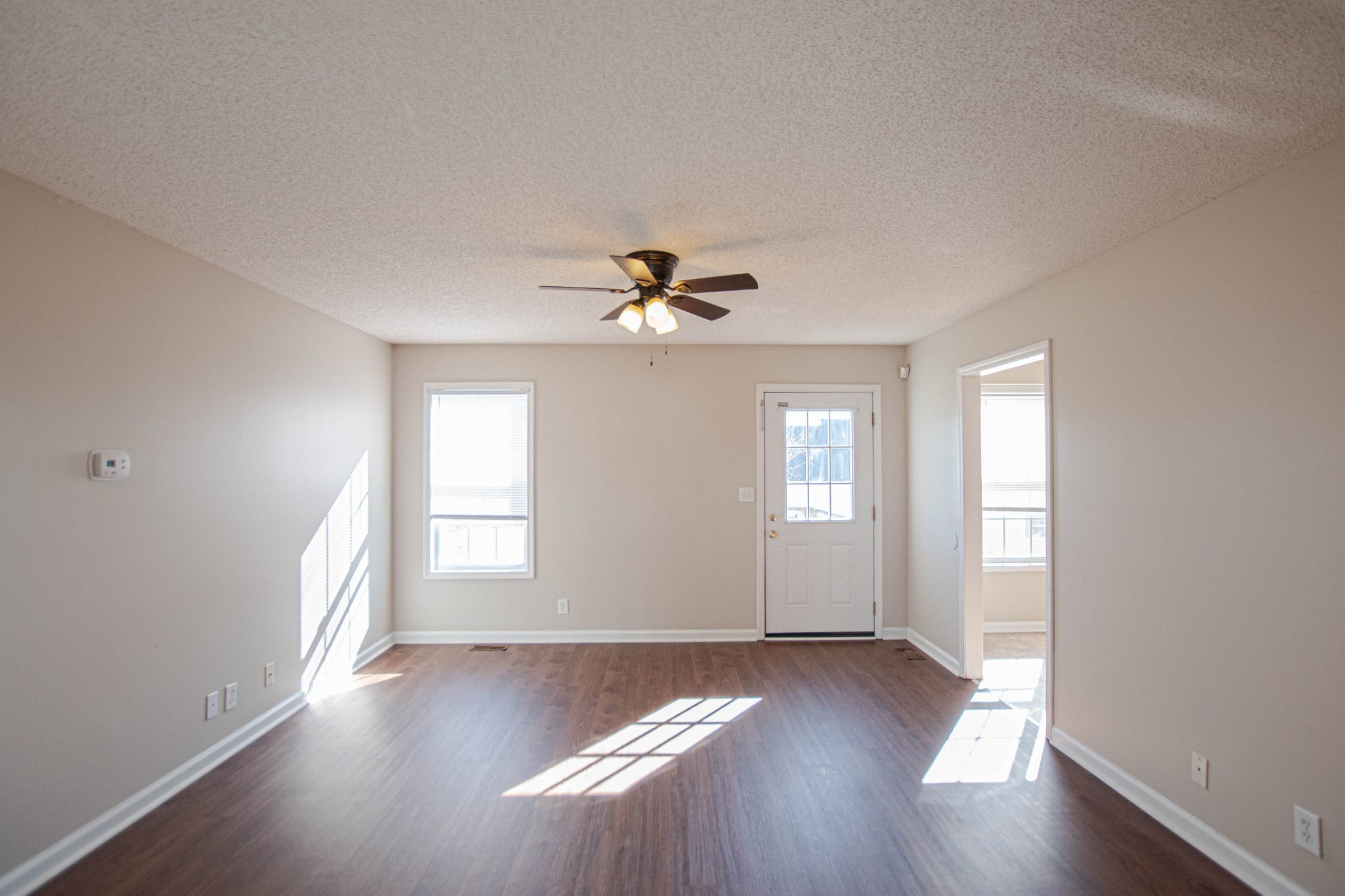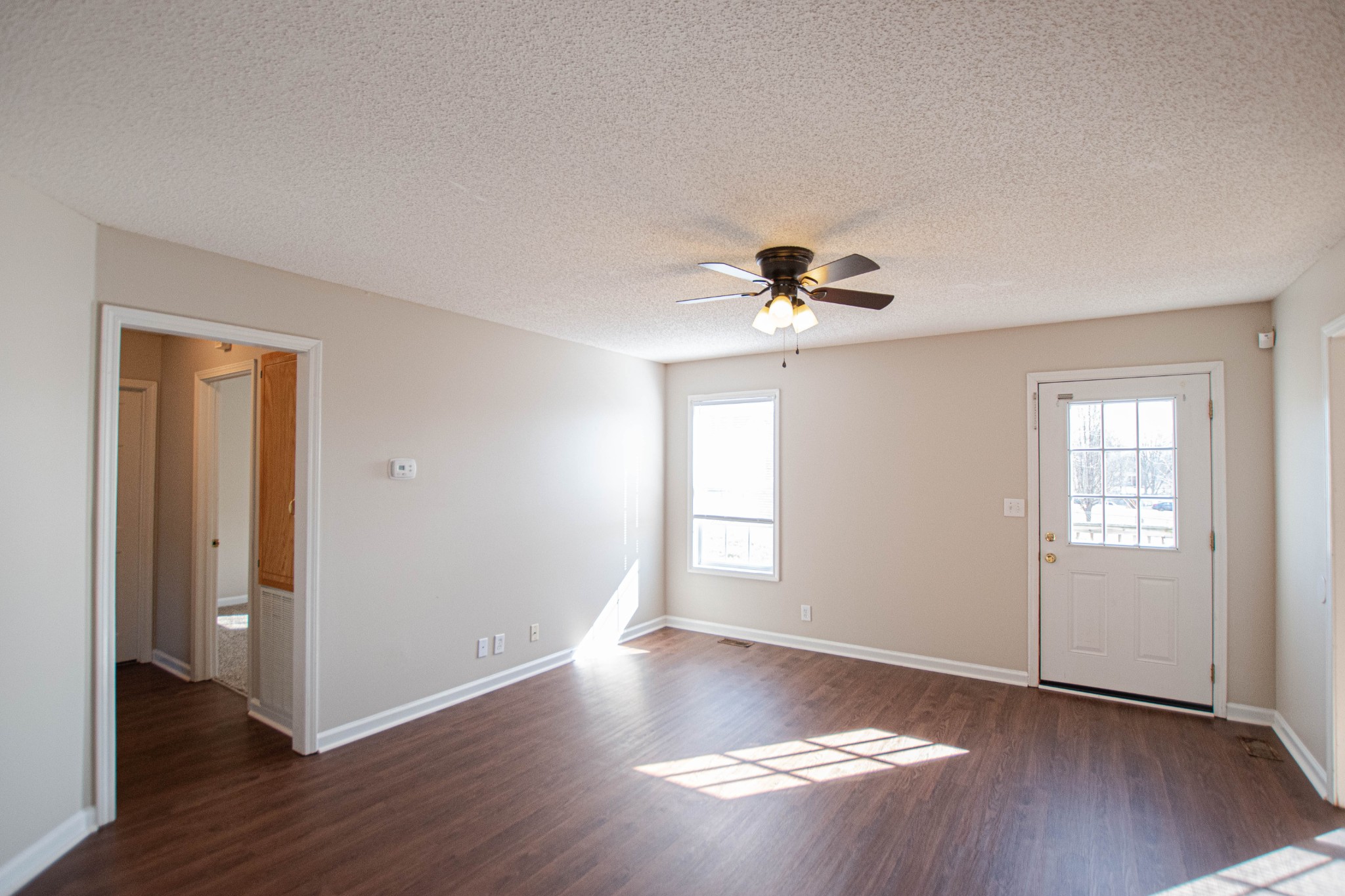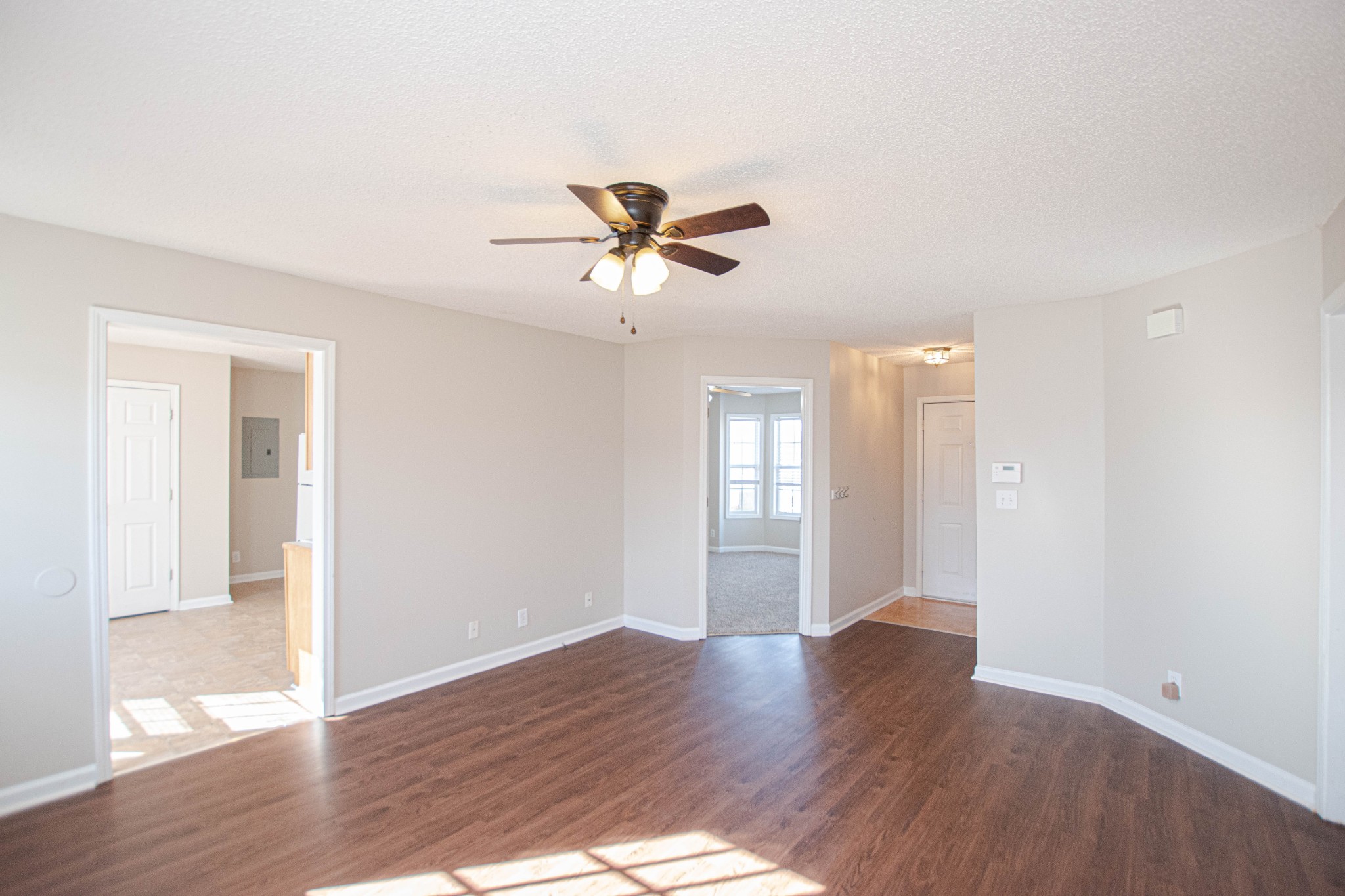 Adorable three bed, two bath home seconds from Ft. Campbell! Beautiful laminate flooring, spacious living room, large eat in kitchen with pantry, primary suite with bay window & full bath, split bedroom floor plan, pet friendly! Pet rent applicable.