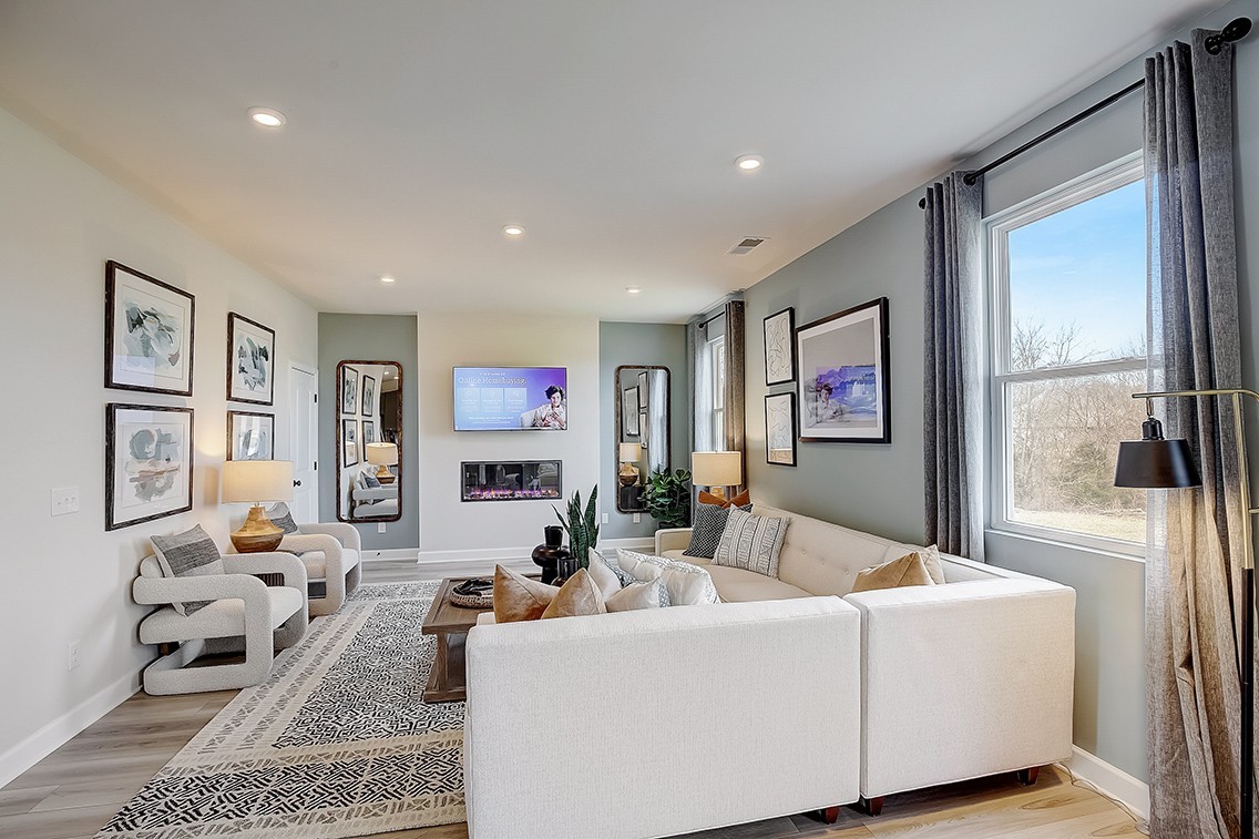 Step into this Woodruff plan at Carver Creek in Lebanon, TN—designed for how you actually live, with flexible spaces and smart flow for everyday comfort. This move-in-ready home includes all appliances, making the transition that much more effortless. The open-concept layout is perfect for entertaining, featuring an expanded kitchen with dark gray cabinets, a spacious center island, and a dining area that flows seamlessly into the great room.