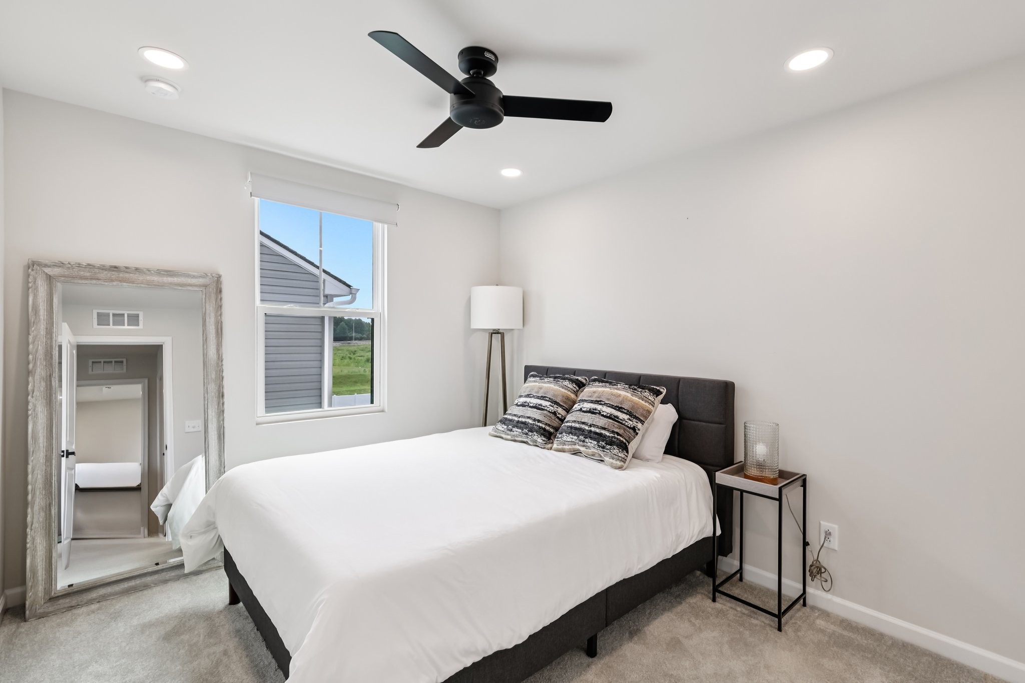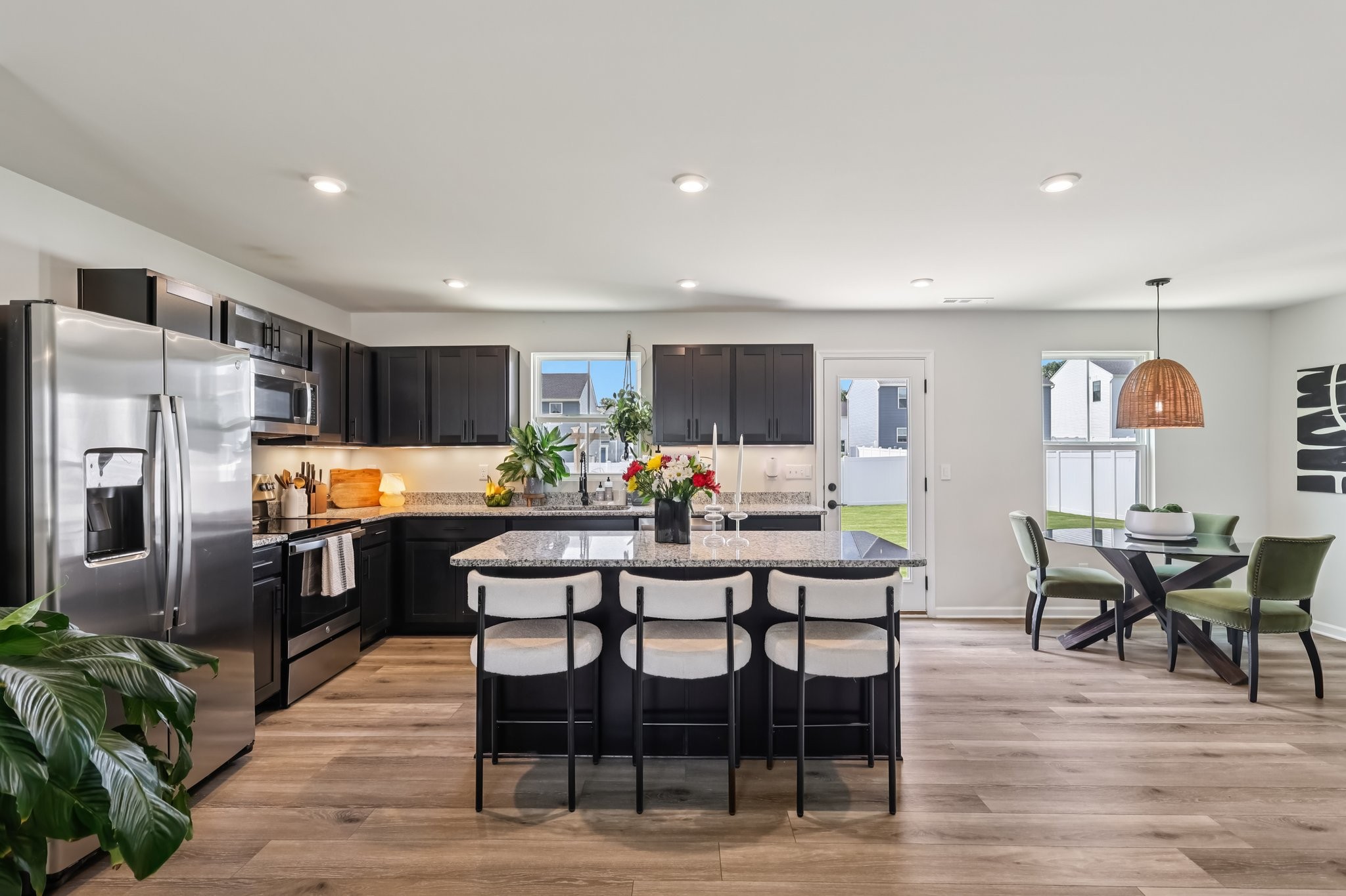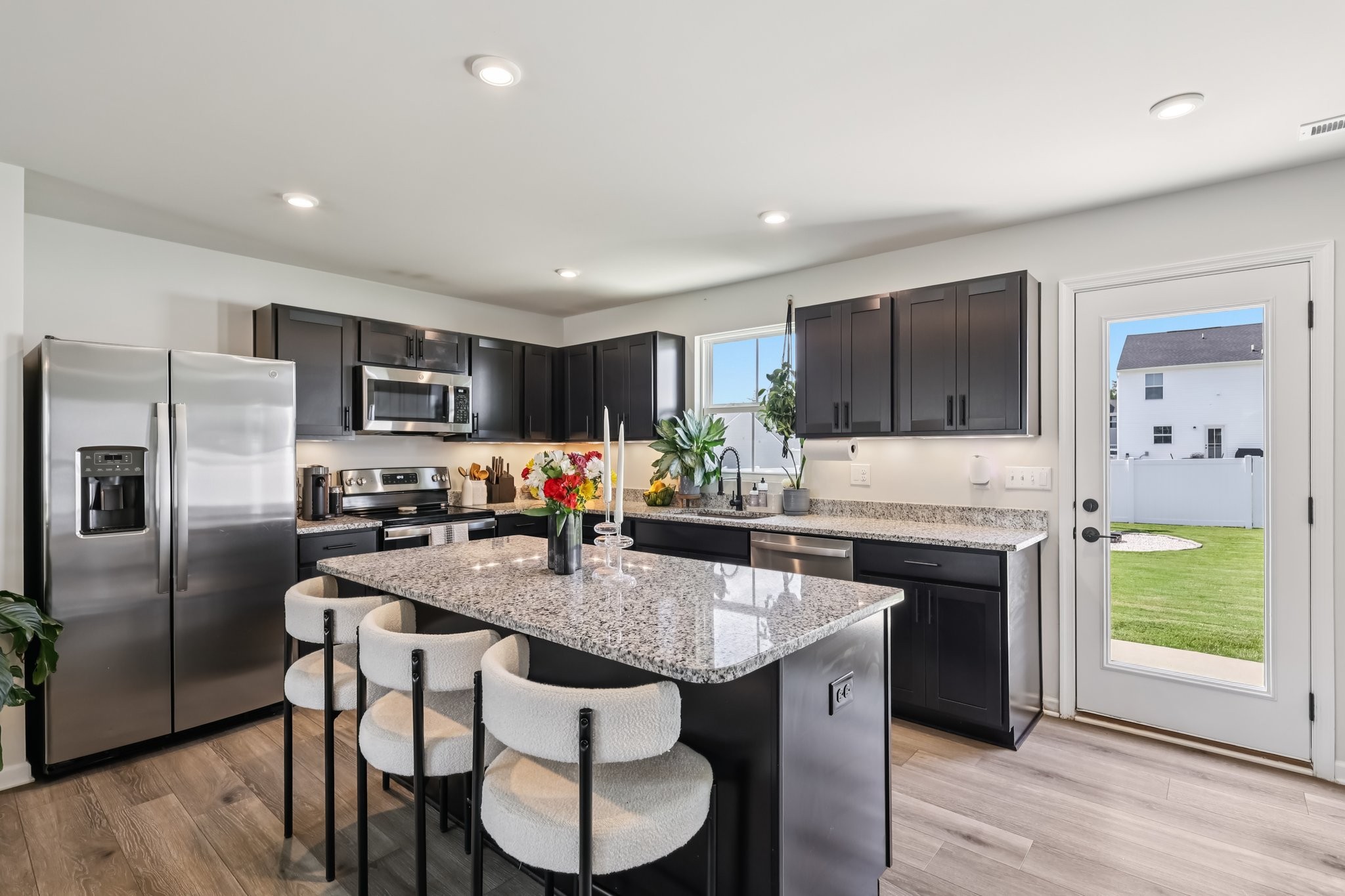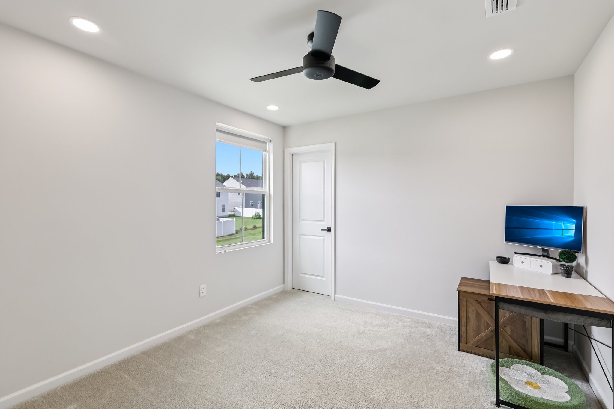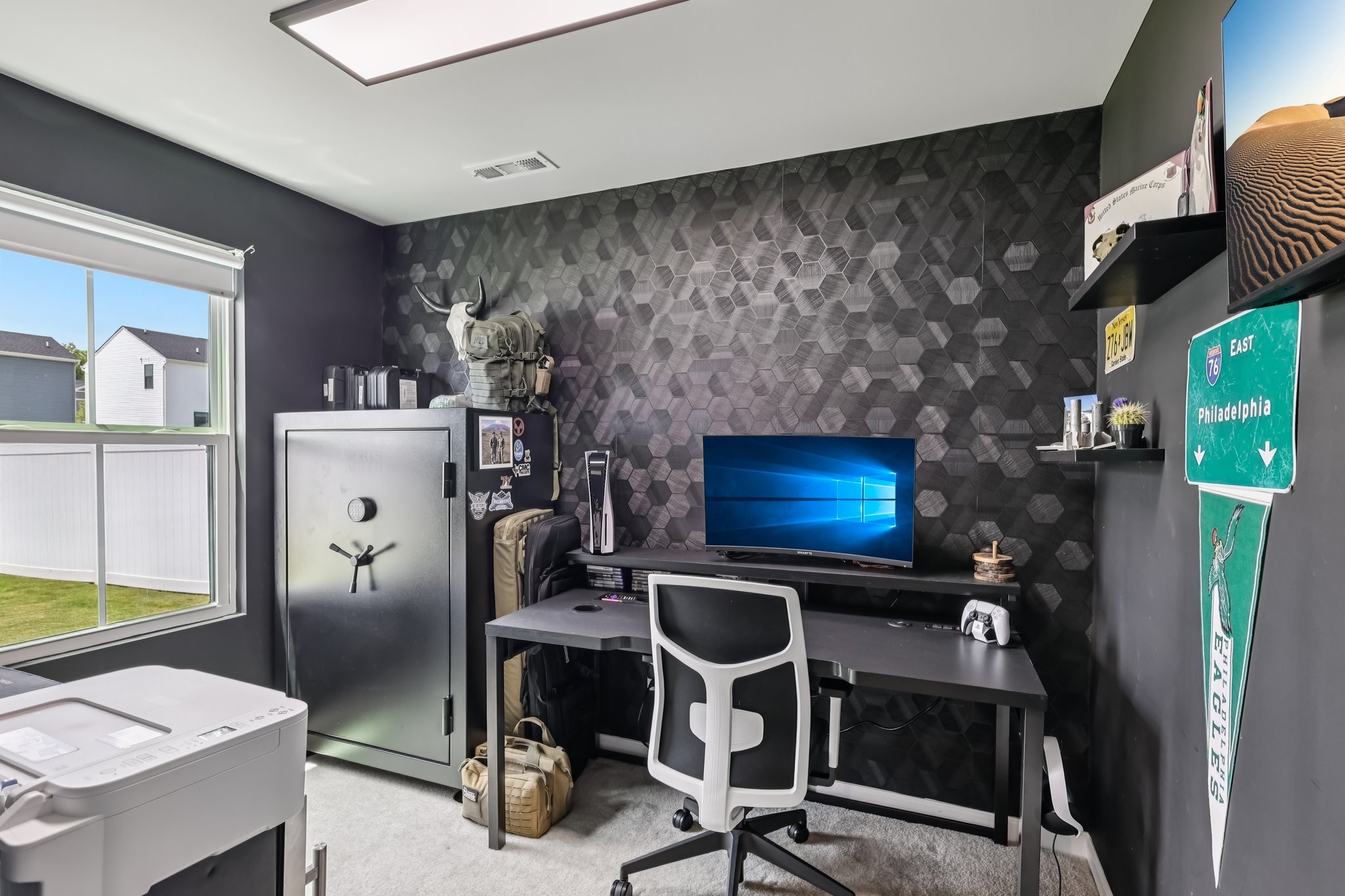 Discover modern comfort in this beautifully updated 4-bedroom, 2.5-bath home. Every detail has been thoughtfully enhanced for style, function, and ease of living. Step through a smart lock front door into a welcoming space with electric window shades, new door hardware, and a refreshed living room featuring a ceiling fan with light and TV receptacle. The upgraded kitchen boasts a new sink faucet, under-cabinet lighting, dimmable fixtures, and motion-sensor pantry lighting. The half bath features new fixtures, shelving, and stylish accents. A dedicated office includes wallpaper, shelving, electric shades, dimmable lighting, and TV receptacle. All bedrooms include electric window shades, recessed lighting with dimmers, ceiling fans, and updated hardware. The primary suite adds a TV outlet, walk-in closet with motion lighting, and upgraded bath features. The laundry and hallway offer motion lighting, and the extra bath has a new mirror and updated sink hardware. Enjoy a finished garage with epoxy floors, painted walls, and motion-sensor lighting. The backyard is perfect for entertaining, with a firepit, swings, extra outlet, flood lighting, irrigation (front and back), and a fenced yard. Bonus features include a porch light with timer, updated fixtures throughout, smart energy-saving additions, and a move-in-ready feel. This home is the perfect mix of comfort, style, and functionality, schedule your showing today!