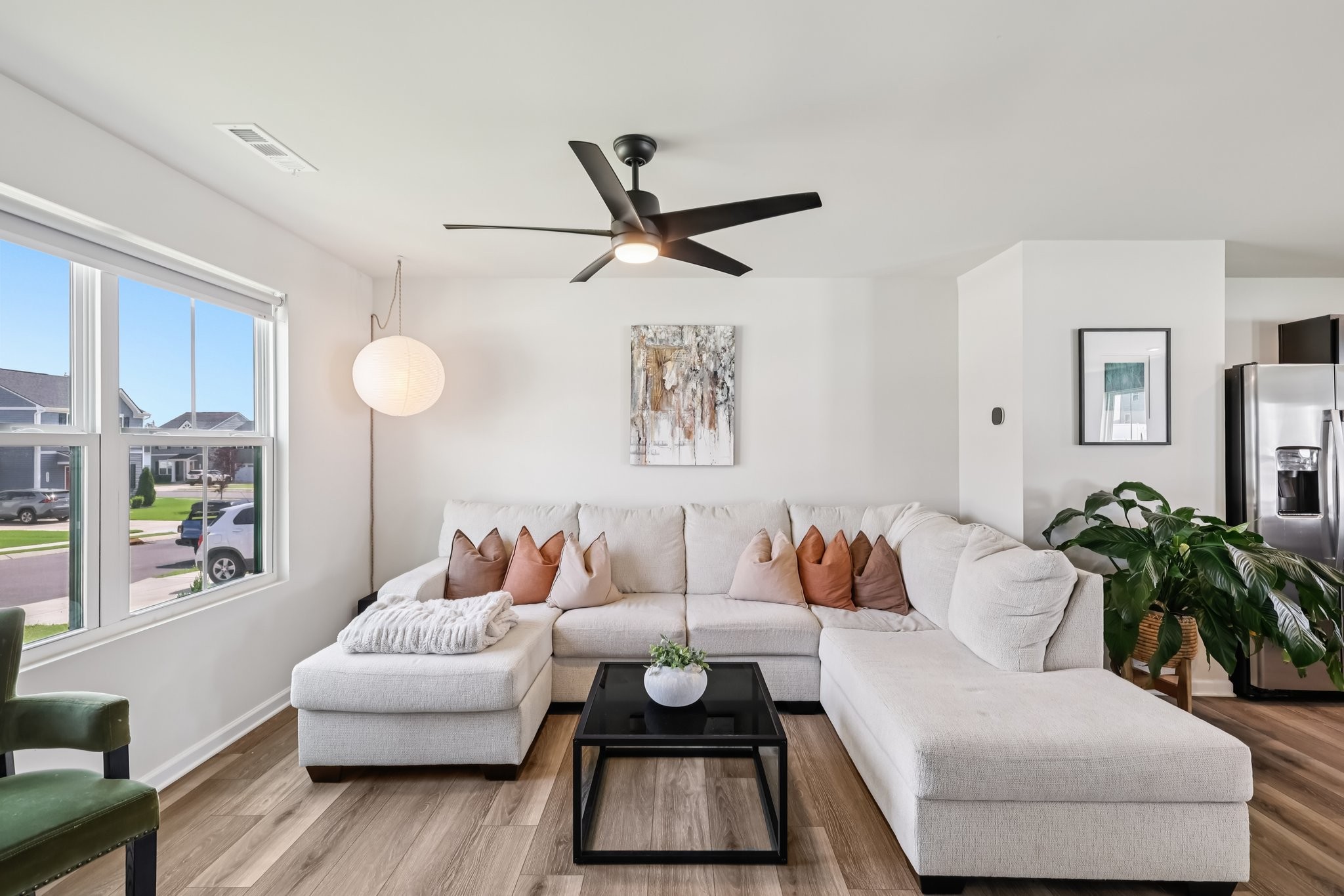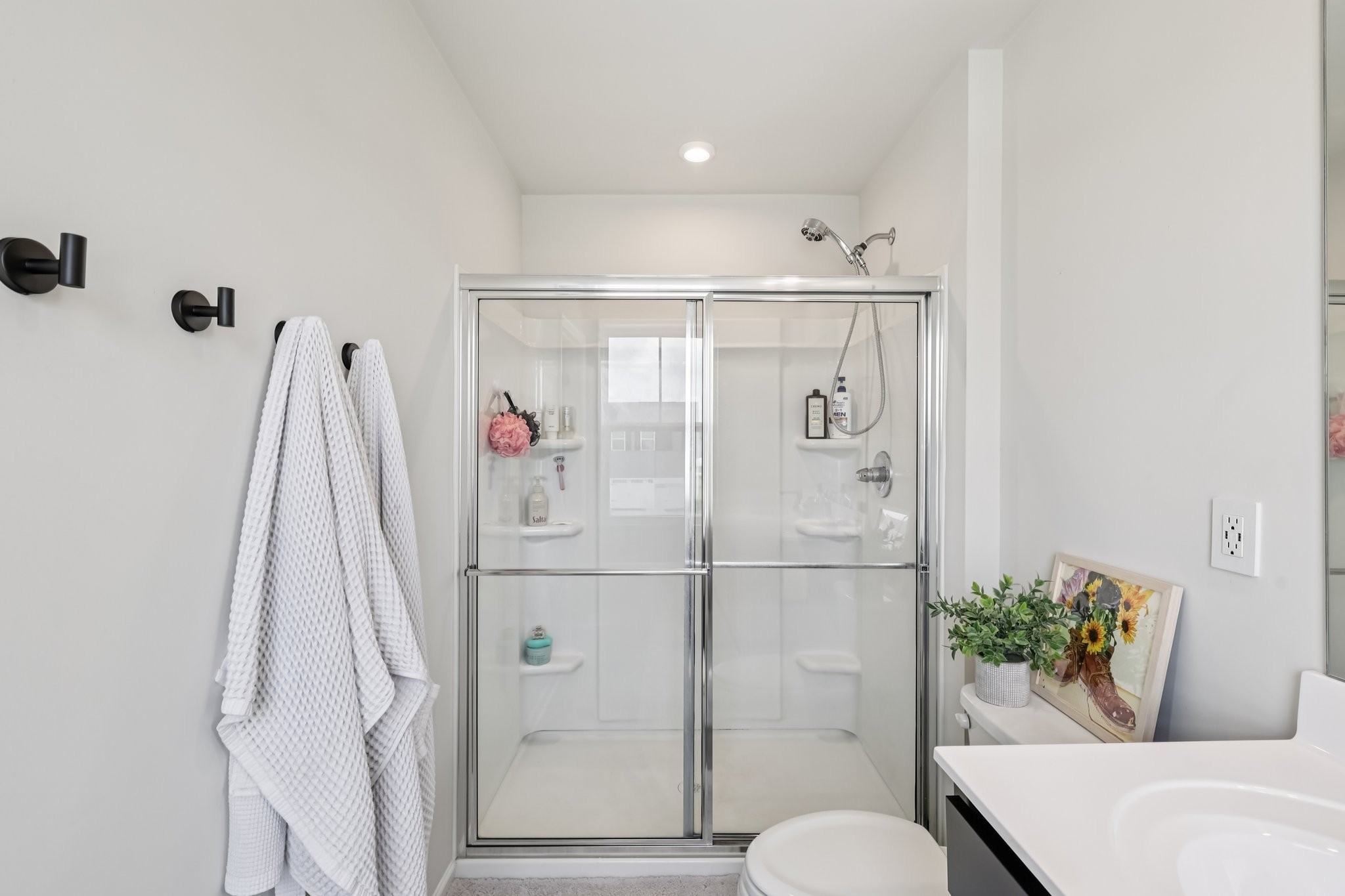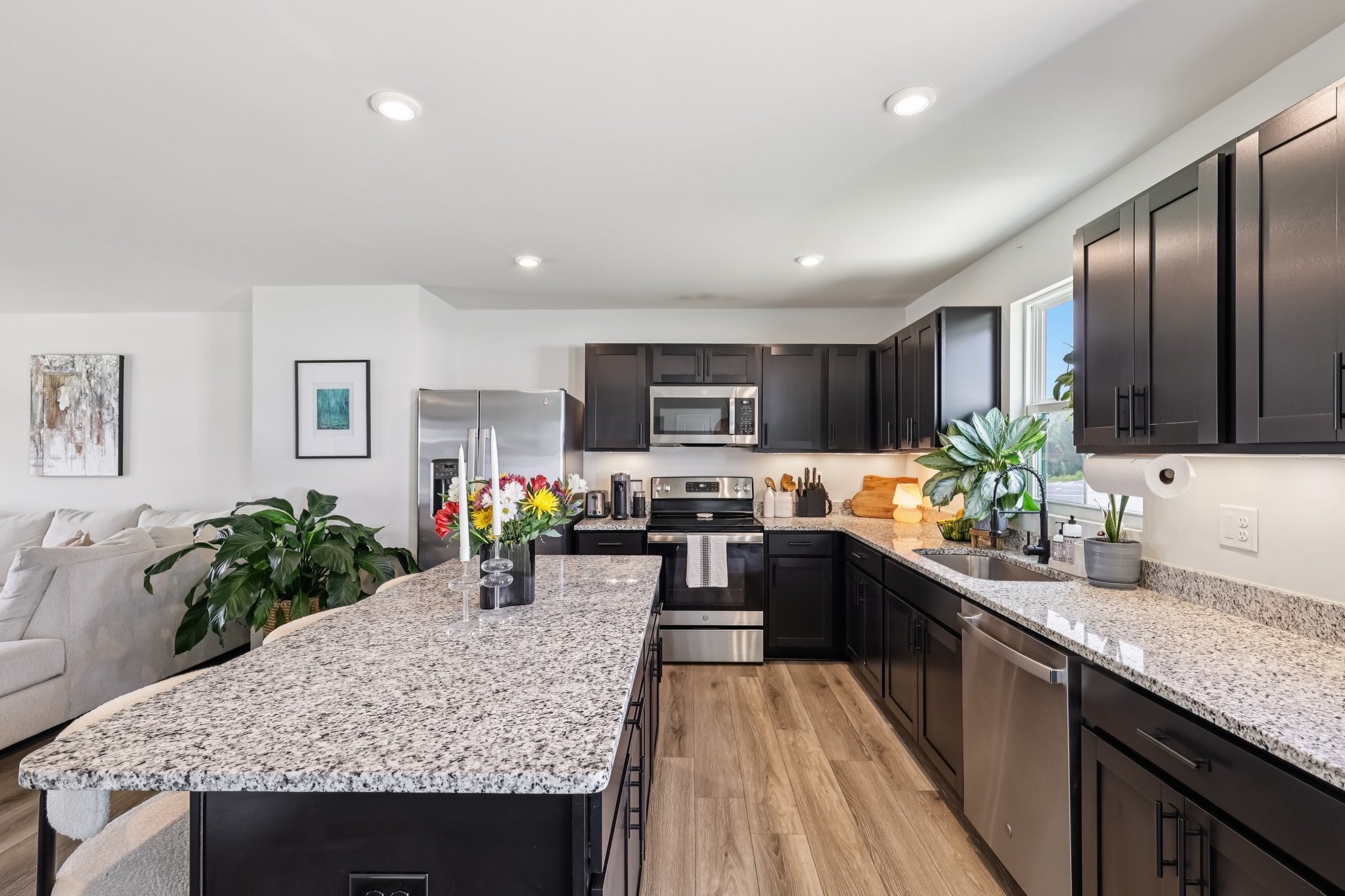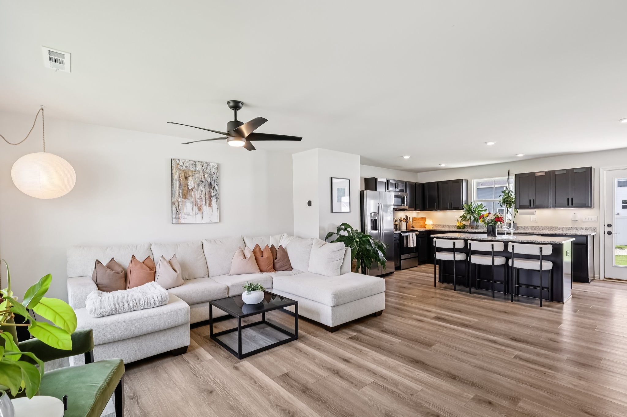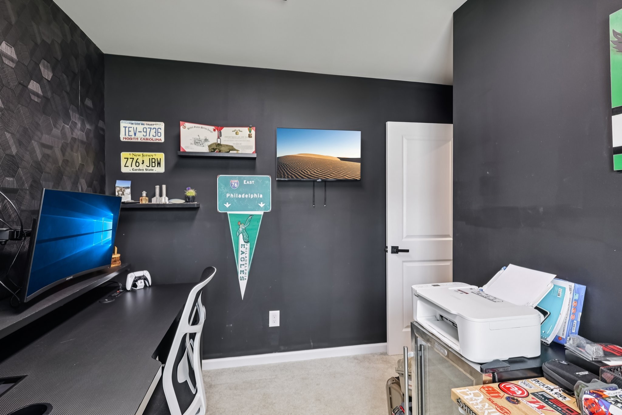 Discover modern comfort in this beautifully updated 4-bedroom, 2.5-bath home. Every detail has been thoughtfully enhanced for style, function, and ease of living. Step through a smart lock front door into a welcoming space with electric window shades, new door hardware, and a refreshed living room featuring a ceiling fan with light and TV receptacle. The upgraded kitchen boasts a new sink faucet, under-cabinet lighting, dimmable fixtures, and motion-sensor pantry lighting. The half bath features new fixtures, shelving, and stylish accents. A dedicated office includes wallpaper, shelving, electric shades, dimmable lighting, and TV receptacle. All bedrooms include electric window shades, recessed lighting with dimmers, ceiling fans, and updated hardware. The primary suite adds a TV outlet, walk-in closet with motion lighting, and upgraded bath features. The laundry and hallway offer motion lighting, and the extra bath has a new mirror and updated sink hardware. Enjoy a finished garage with epoxy floors, painted walls, and motion-sensor lighting. The backyard is perfect for entertaining, with a firepit, swings, extra outlet, flood lighting, irrigation (front and back), and a fenced yard. Bonus features include a porch light with timer, updated fixtures throughout, smart energy-saving additions, and a move-in-ready feel. This home is the perfect mix of comfort, style, and functionality, schedule your showing today!