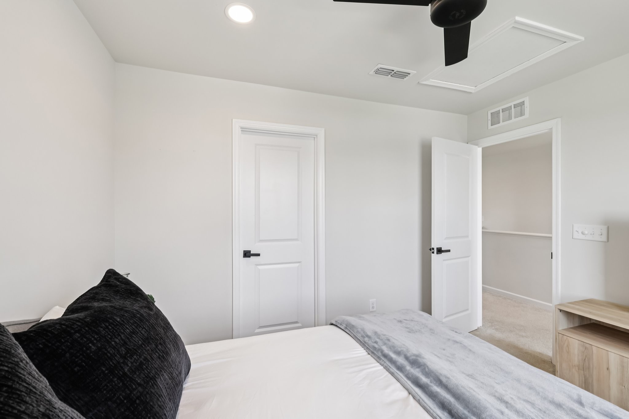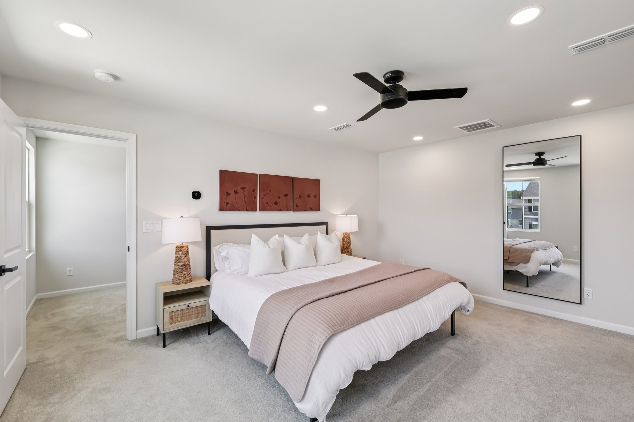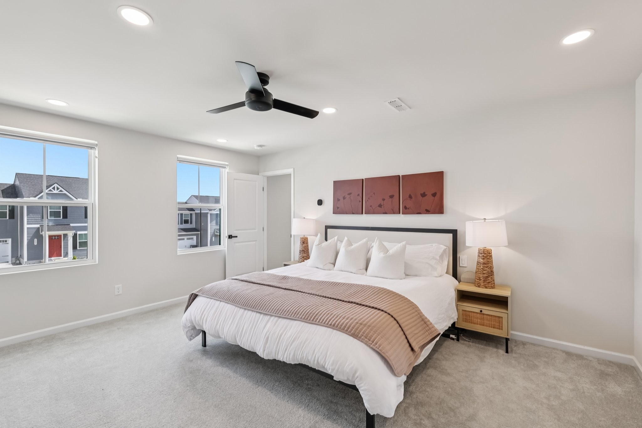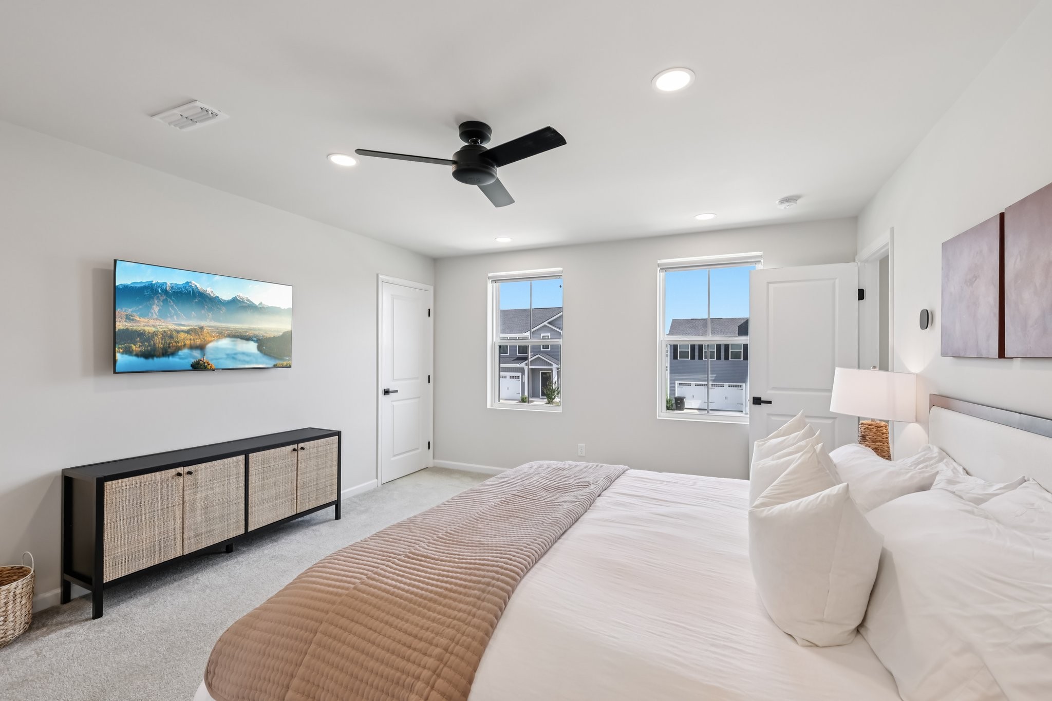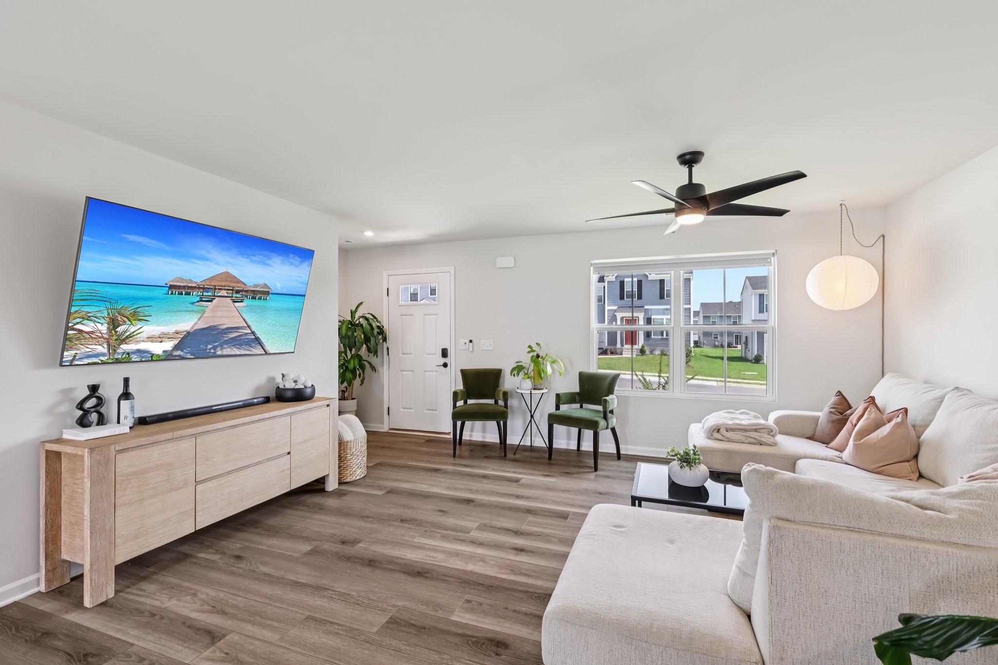 Discover modern comfort in this beautifully updated 4-bedroom, 2.5-bath home. Every detail has been thoughtfully enhanced for style, function, and ease of living. Step through a smart lock front door into a welcoming space with electric window shades, new door hardware, and a refreshed living room featuring a ceiling fan with light and TV receptacle. The upgraded kitchen boasts a new sink faucet, under-cabinet lighting, dimmable fixtures, and motion-sensor pantry lighting. The half bath features new fixtures, shelving, and stylish accents. A dedicated office includes wallpaper, shelving, electric shades, dimmable lighting, and TV receptacle. All bedrooms include electric window shades, recessed lighting with dimmers, ceiling fans, and updated hardware. The primary suite adds a TV outlet, walk-in closet with motion lighting, and upgraded bath features. The laundry and hallway offer motion lighting, and the extra bath has a new mirror and updated sink hardware. Enjoy a finished garage with epoxy floors, painted walls, and motion-sensor lighting. The backyard is perfect for entertaining, with a firepit, swings, extra outlet, flood lighting, irrigation (front and back), and a fenced yard. Bonus features include a porch light with timer, updated fixtures throughout, smart energy-saving additions, and a move-in-ready feel. This home is the perfect mix of comfort, style, and functionality, schedule your showing today!