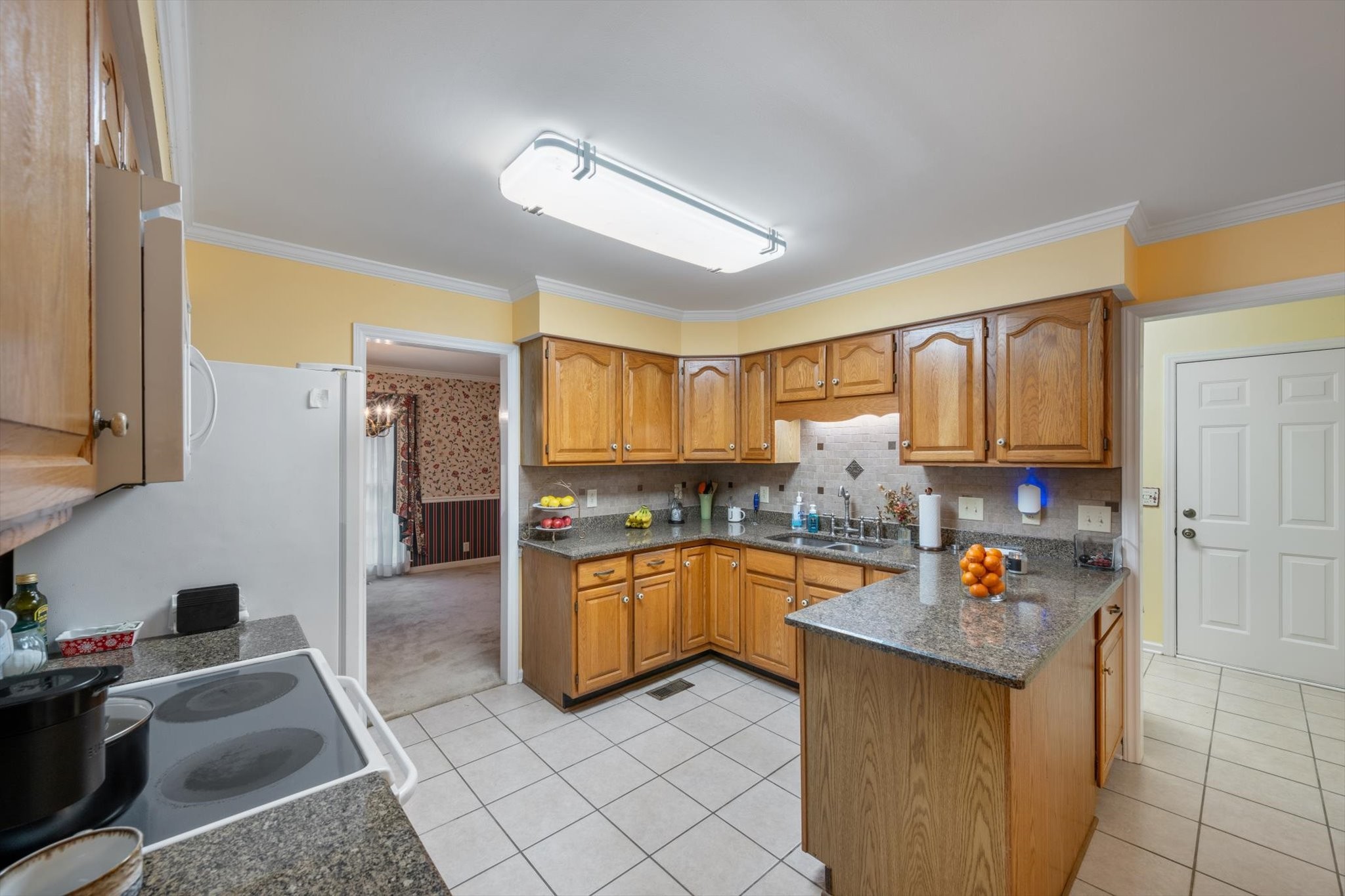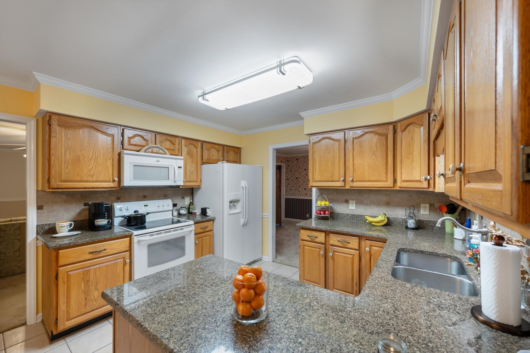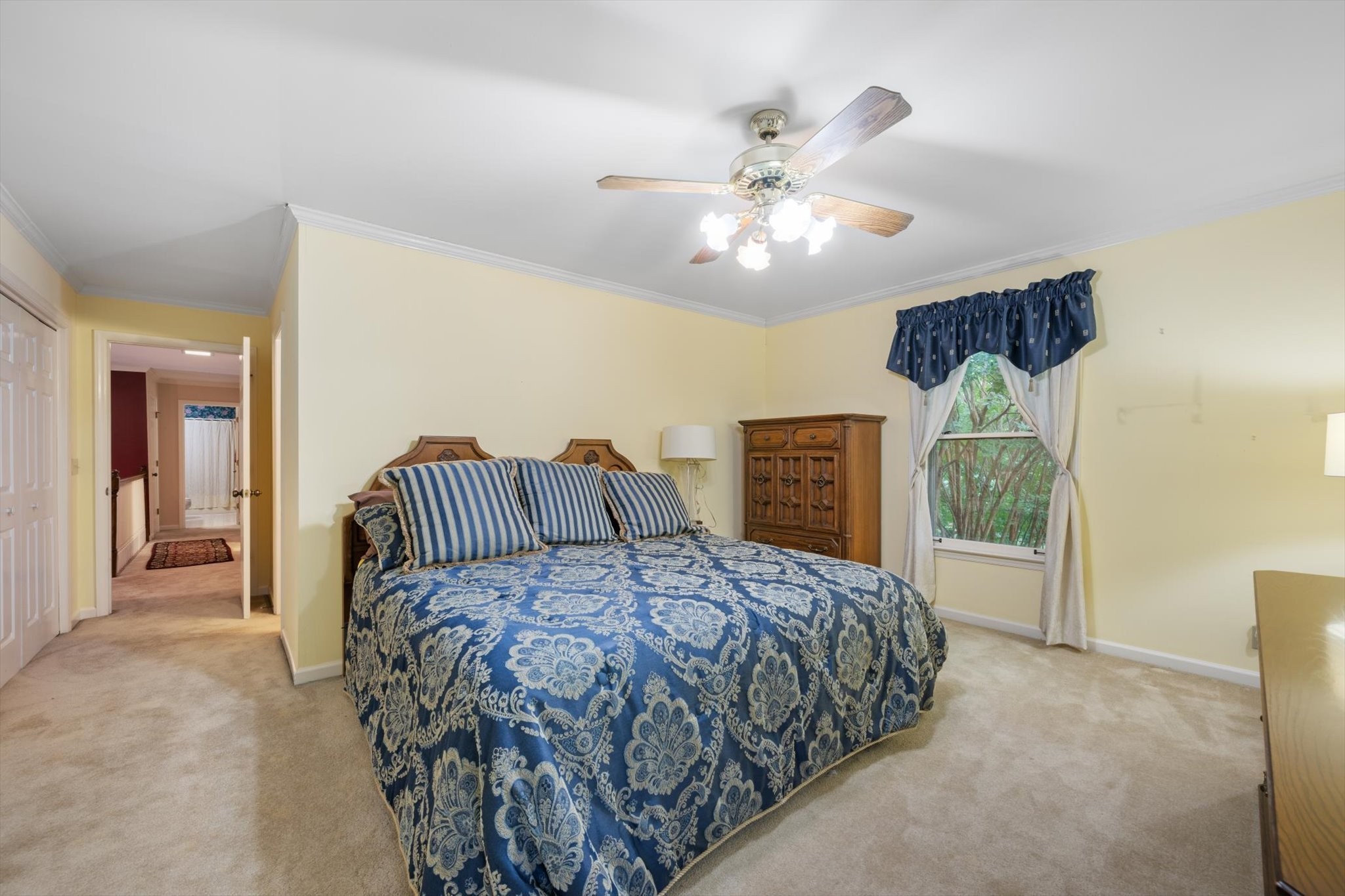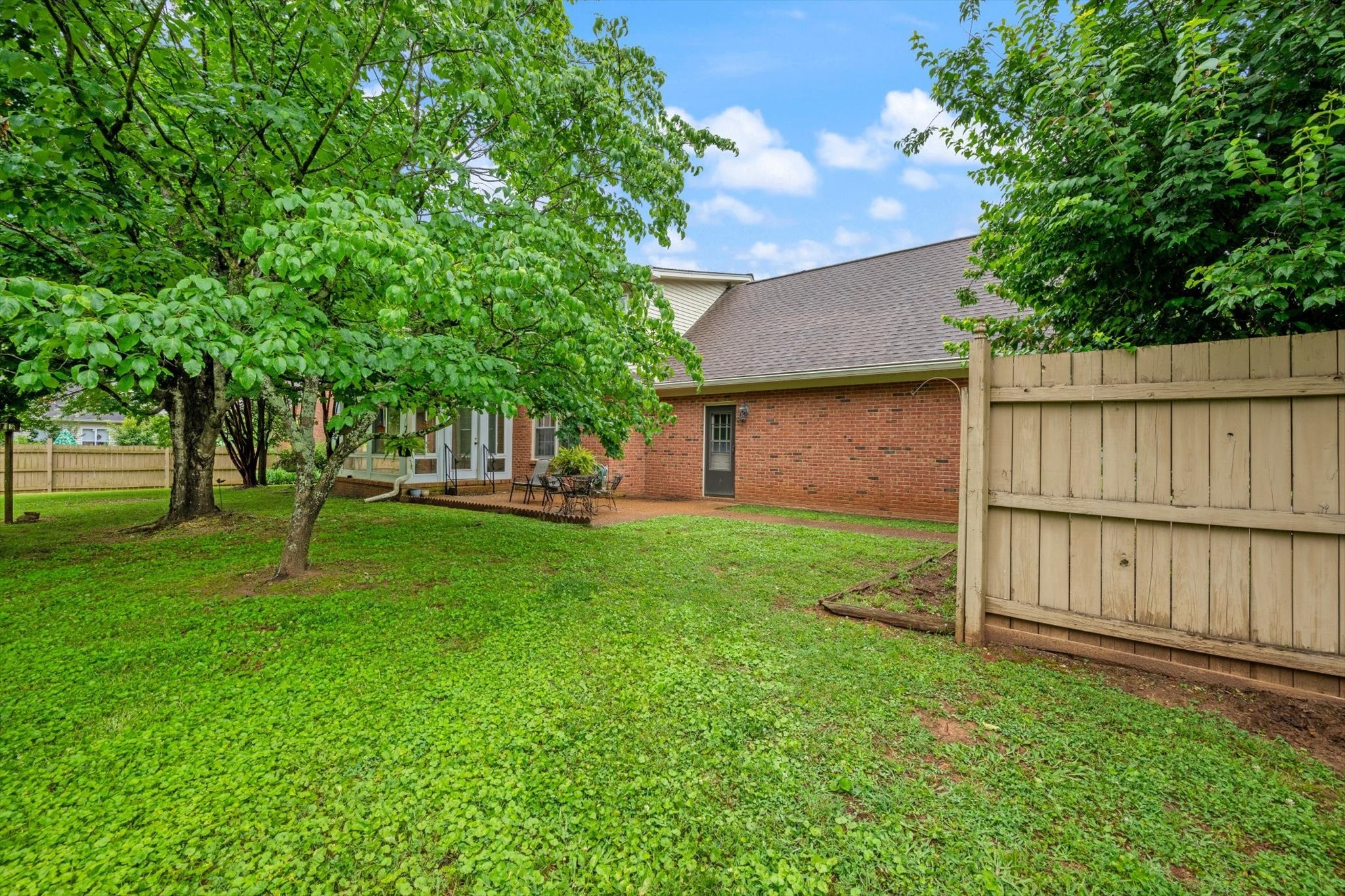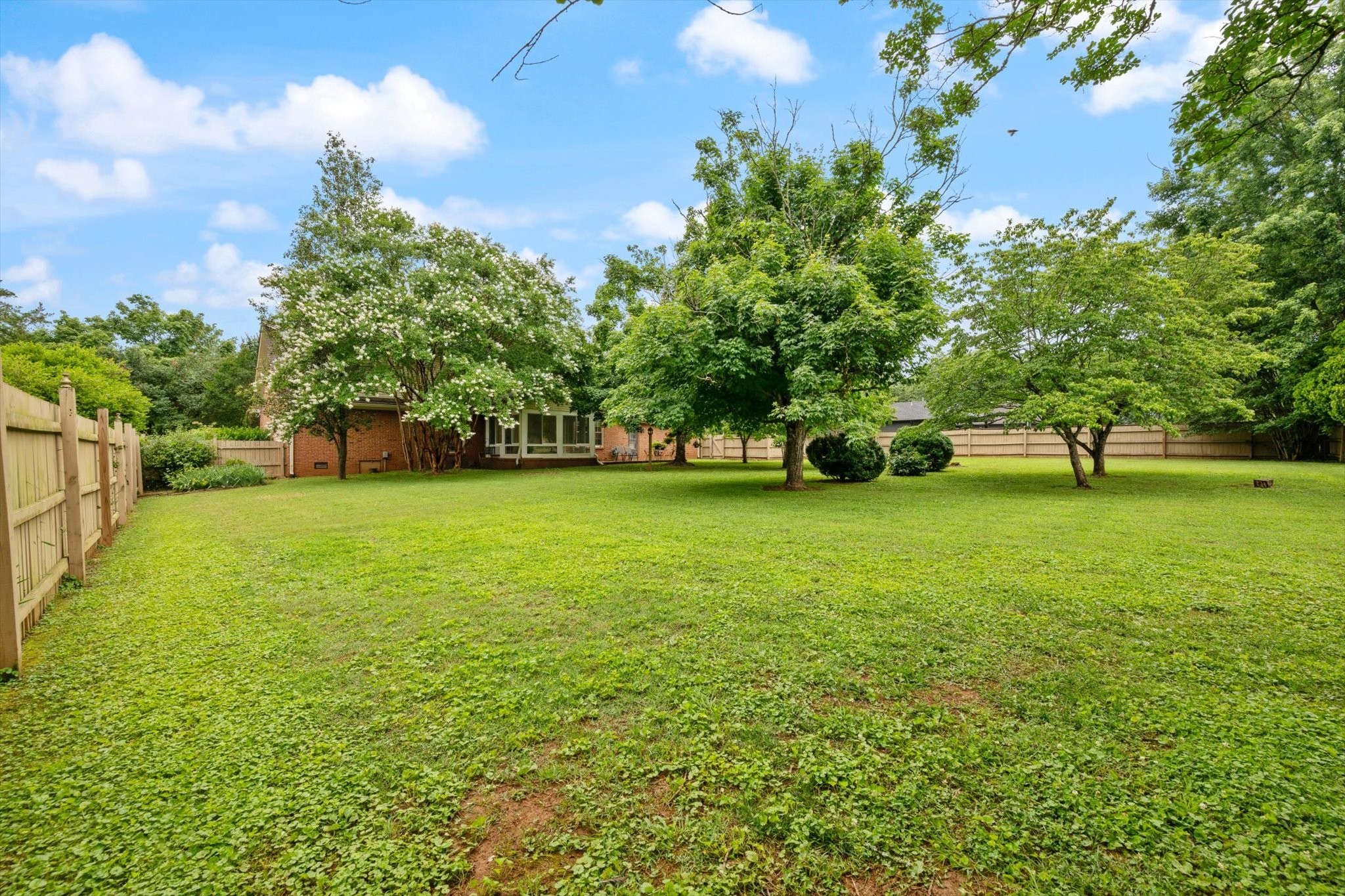 Step outside to a backyard that feels like a private oasis, with mature shade trees creating a peaceful, park-like setting. The side-entry garage and circular front drive provide ample parking and charming curb appeal.