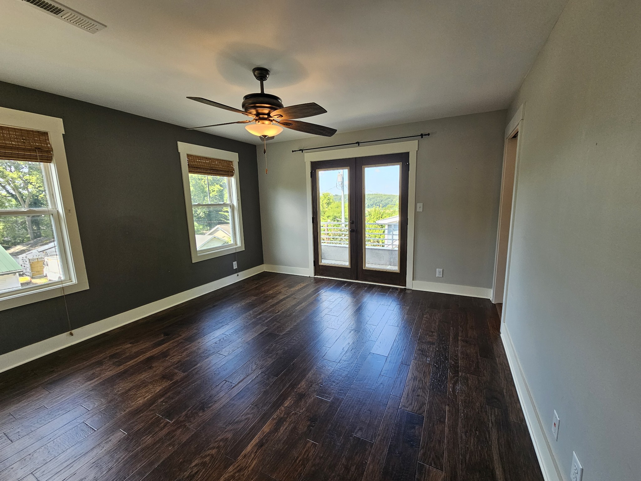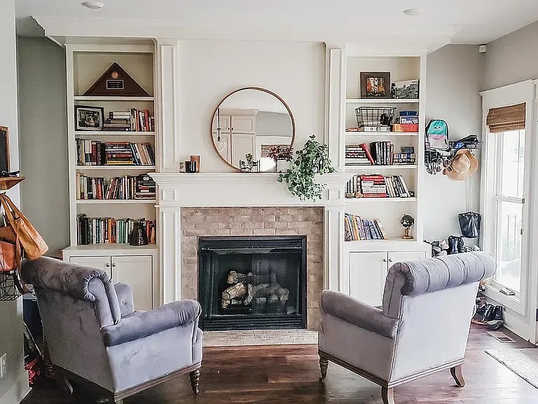 The luxurious primary suite had built-in closets, a claw-foot tub, an oversized shower, and a lovely balcony overlooking the Cumberland River. There are two additional light-filled bedrooms with generous closet space. Custom built-ins throughout: office nook, library/media center, and even a whimsical "Harry Potter" secret bookcase room tucked under the stairs. Abundant natural light gives the home a bright, airy ambiance.