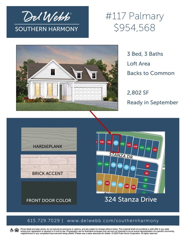 The PALMARY plan features an open-concept design with 9ft ceilings. You'll love the 2 story home with tons of room for relaxing & entertaining at 2,802 SqFt. Gourmet Kitchen with 36" gas cooktop and wood hood, vented to outside, Colada Cabinets with gold hardware and Et. Noir Quartz. Flex Rm with lots of natural light would make great home office or reading room! The sunroom offers 111 SqFt of space that can be used for morning or reading room. Fireplace in the Gathering Room adds a warm touch. The Owner’s Bathroom has the upgraded Bath #6 walk-in shower. The covered patio overlooks the backyard and no homes behind. Walking distance to all the amenities, or a short golf cart ride. Price includes base, lot premium and structural and design upgrades. Home will be ready in September.