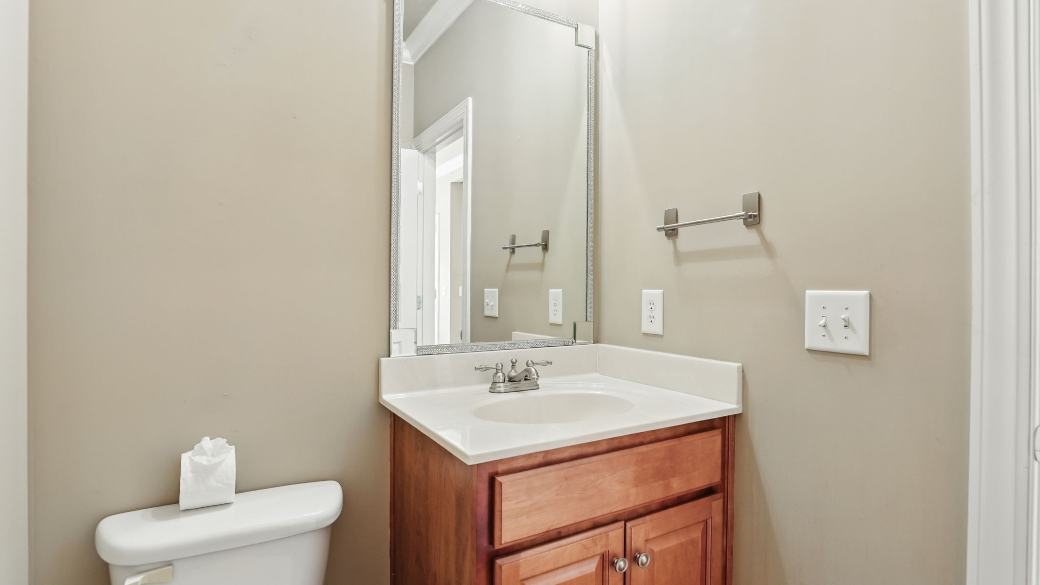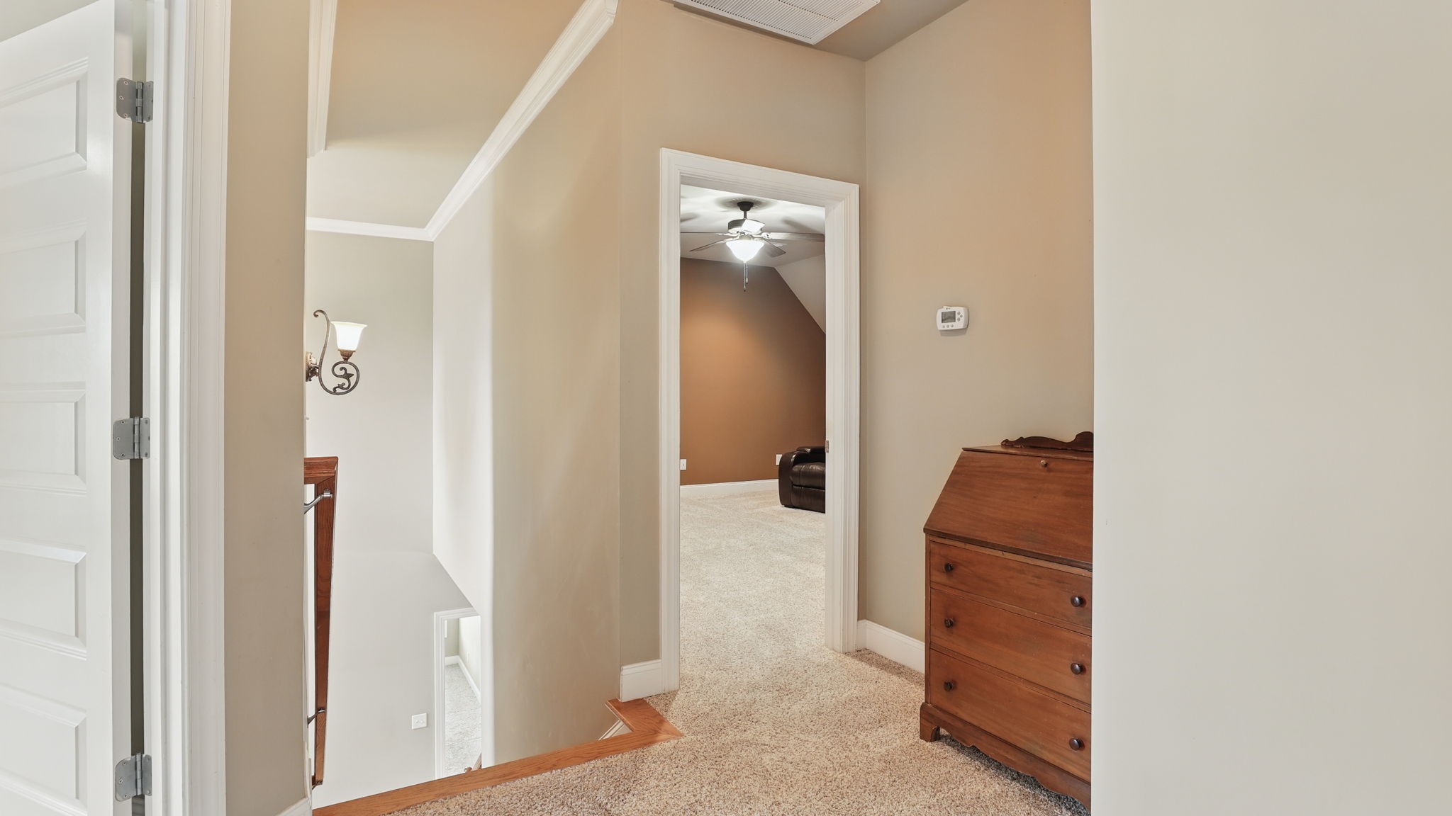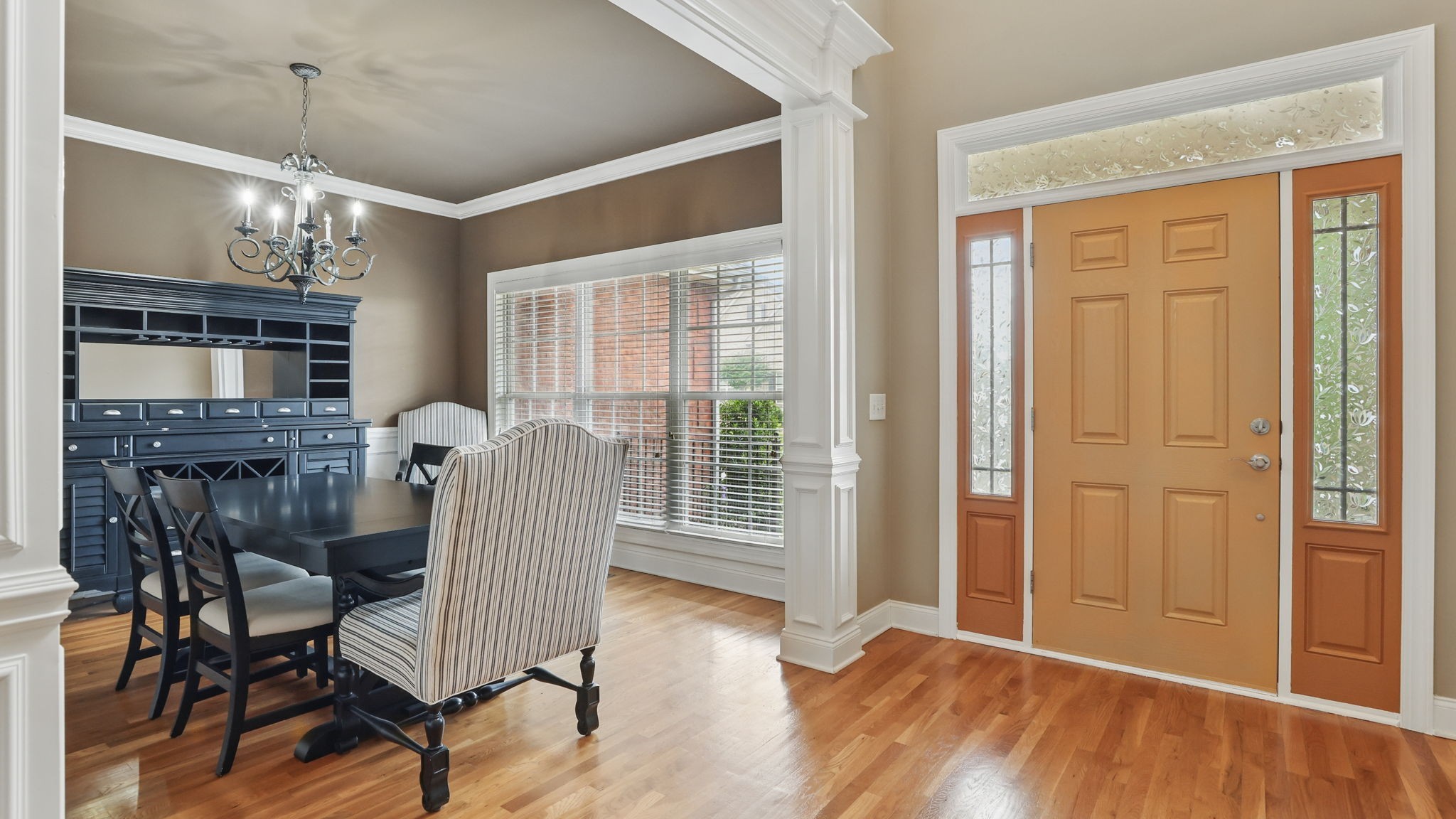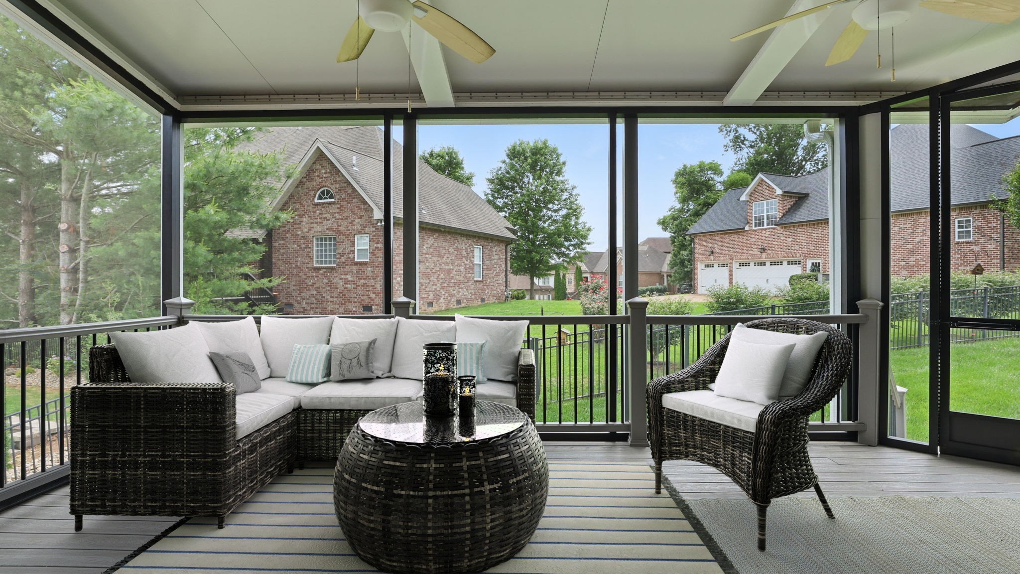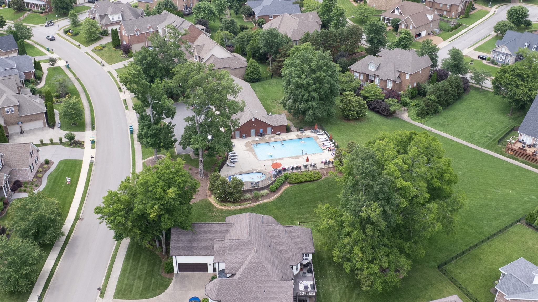 Just south of Franklin in Williamson County, this entertainer's dream features an open kitchen floor plan that flows into the cozy living room with a fireplace, leading to the back screened-in deck or the formal dining room. Decorative columns, crown molding, wainscoting, wood floors, and tray ceilings add a touch of elegance throughout. The second story includes three bedrooms, two full bathrooms, and a bonus media room. Appreciate the all-brick exterior, set above the road for privacy, with a lush green landscape and a fenced-in backyard. Enjoy the sunrise from the front porch with coffee and the sunset from the screened-in sunroom deck with a glass of wine. The neighborhood is peaceful, walkable, and features a clubhouse with a pool.