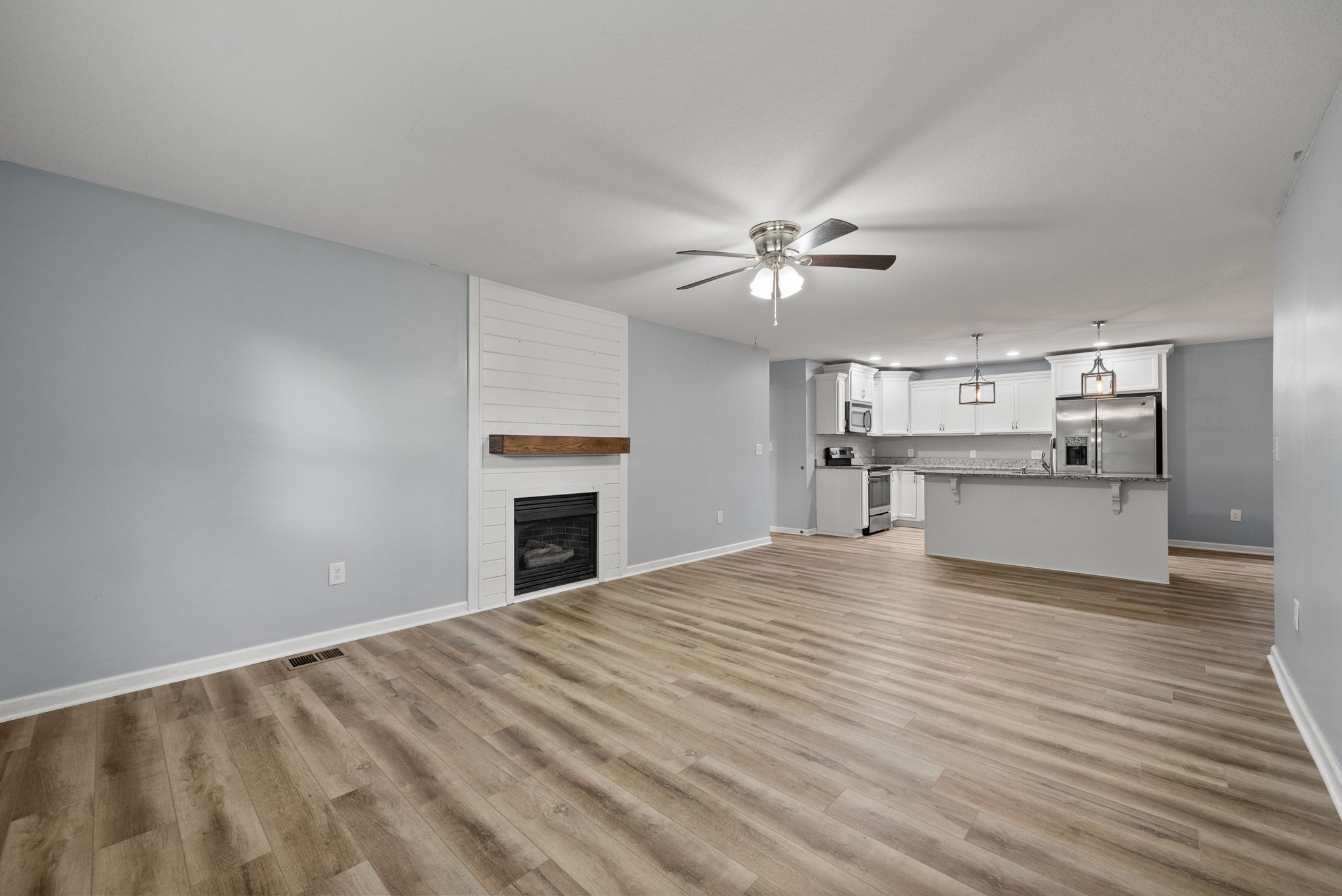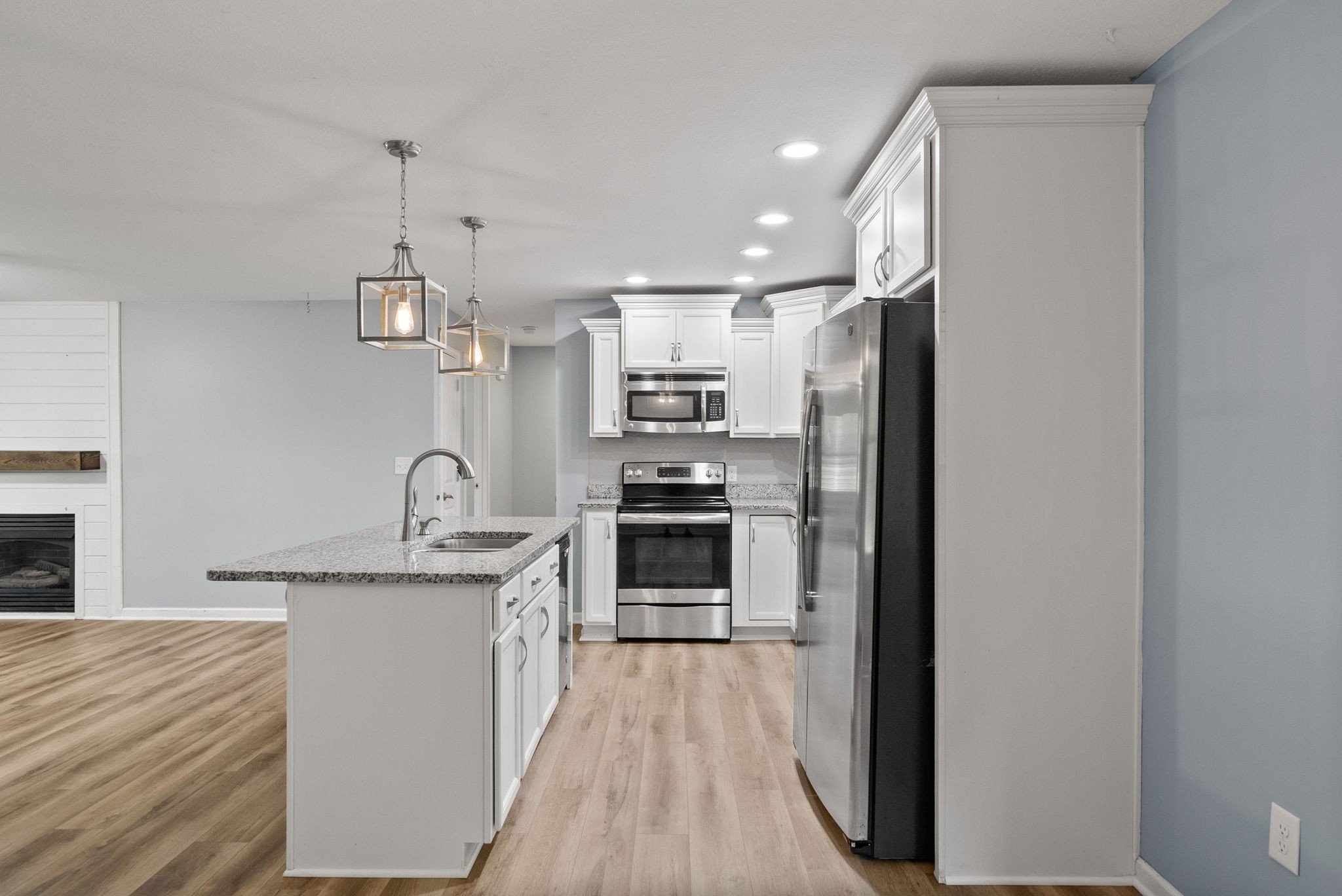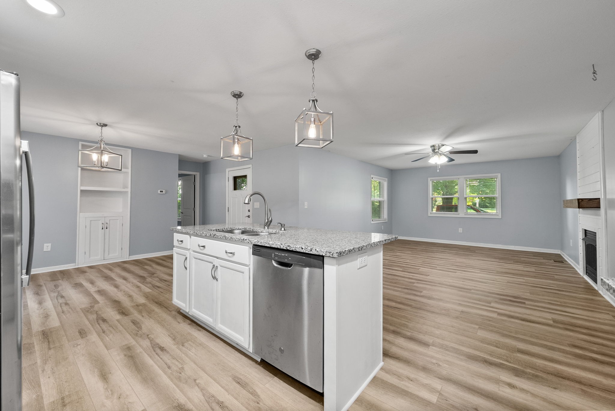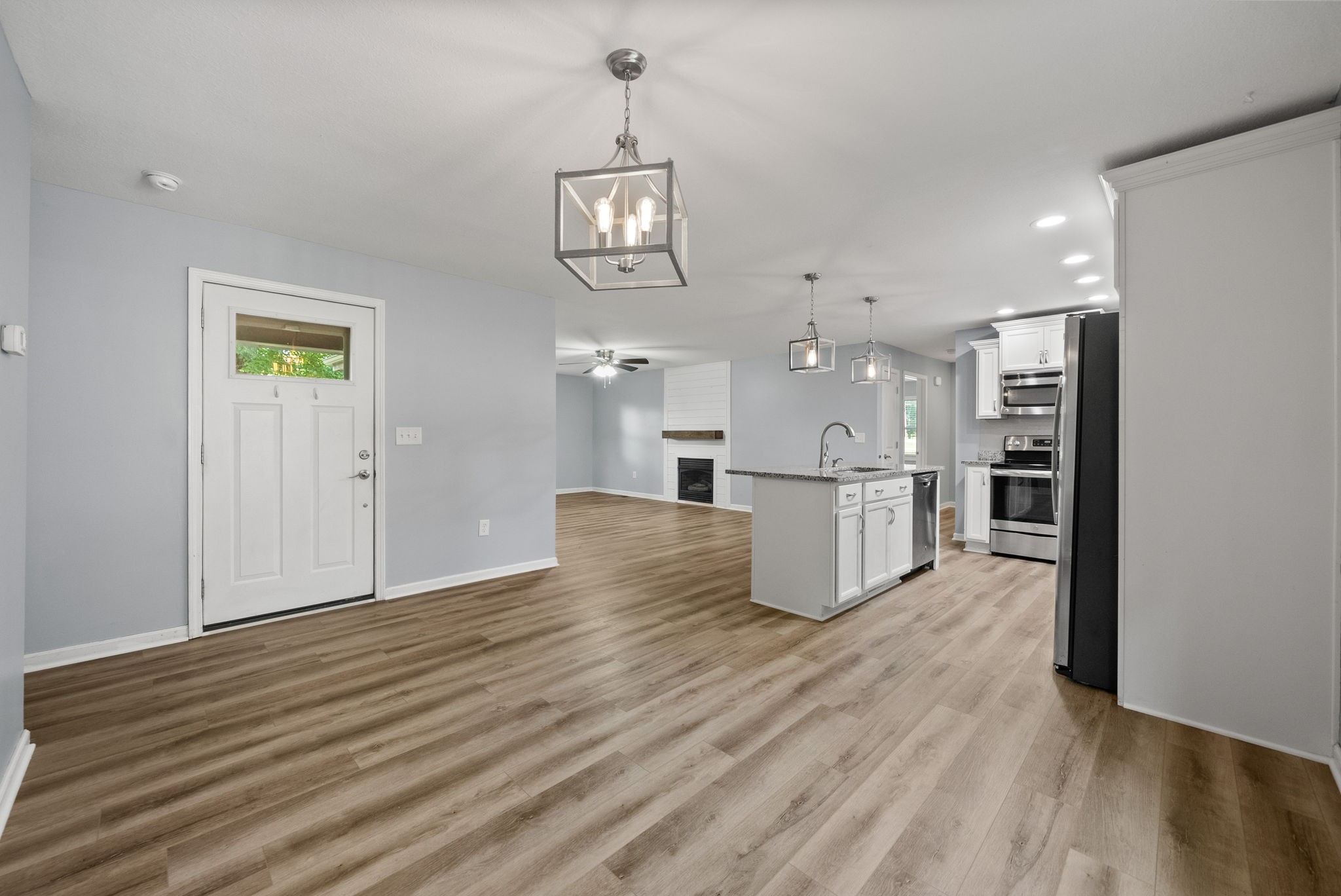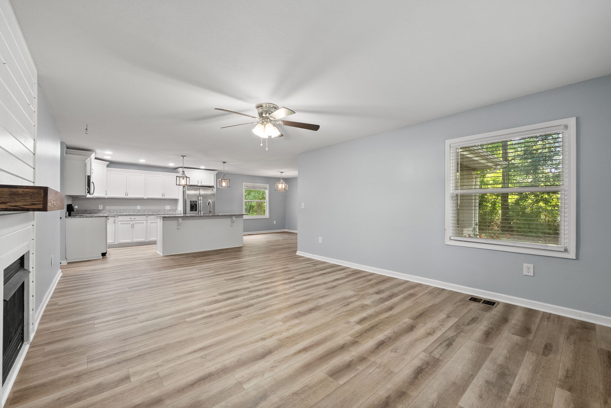 Step inside to a warm, welcoming layout where natural light filters through each room and hardwood floors add character throughout. The living area is perfect for gathering around the fireplace on cooler nights, while the oversized kitchen is designed for real life—morning coffee, family dinners, and weekend baking projects all have a place here. A dedicated rec room offers a quiet spot for hobbies, a home office, or simply relaxing with a good book.