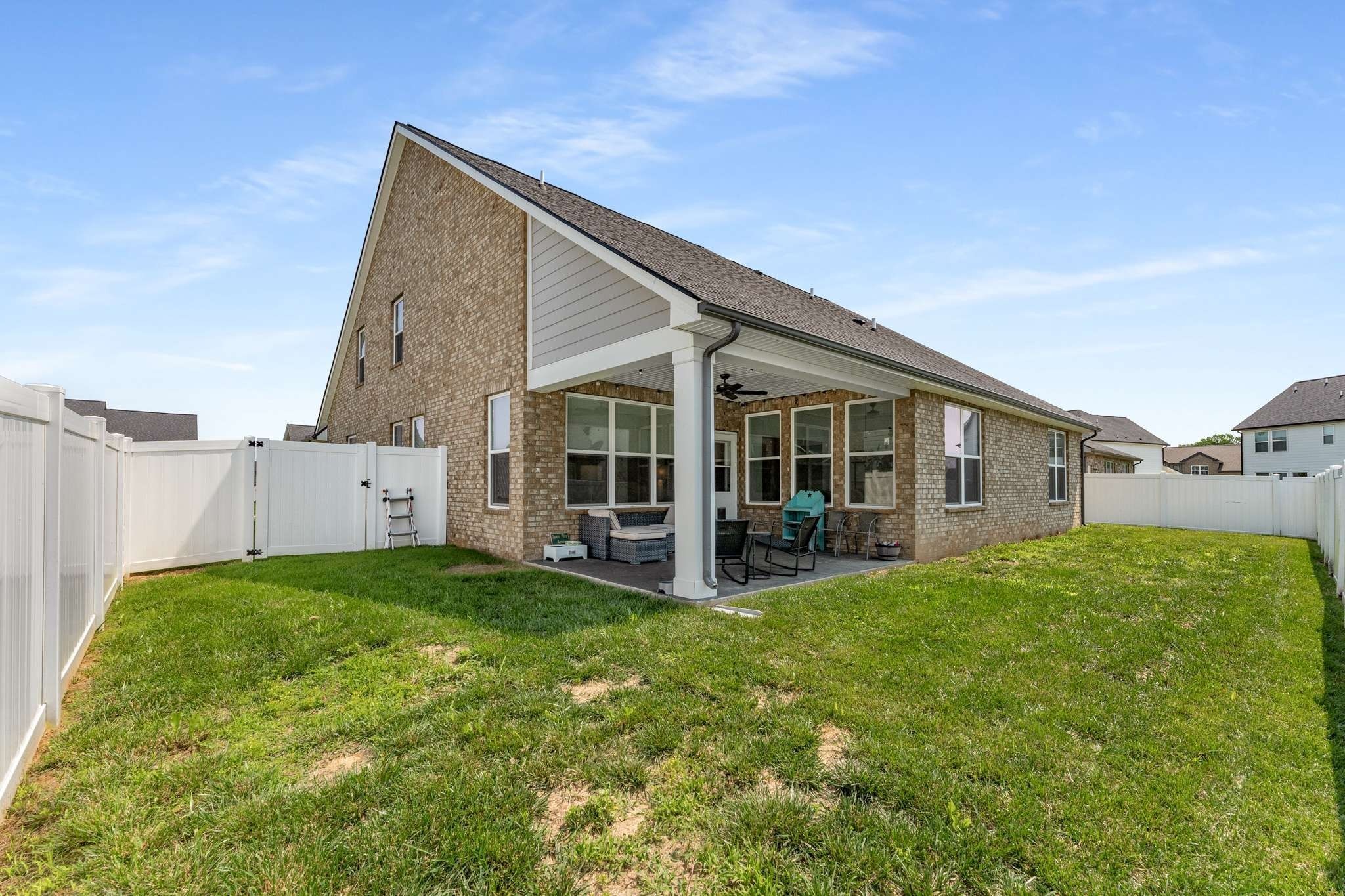 This spacious 3-bedroom, 2-bath home features 2,628 sq. ft. of comfortable living space, with all bedrooms conveniently located on the main level. Upstairs, a generous bonus room offers endless possibilities—ideal for a game room, home theater, or guest retreat. The open-concept kitchen flows seamlessly into the living and dining areas, enhanced by vaulted ceilings that create a bright, airy atmosphere perfect for everyday living and entertaining. A dedicated home office with elegant glass French doors provides both privacy and style. Step outside to enjoy the covered patio, a perfect spot for relaxing or hosting friends and family. Nestled in a vibrant, desirable community featuring sidewalks, a neighborhood pool, and beautifully maintained common areas, this home offers the perfect blend of comfort, style, and convenience. This home is in an ideal location that offers easy access to local schools, shopping, and dining options!